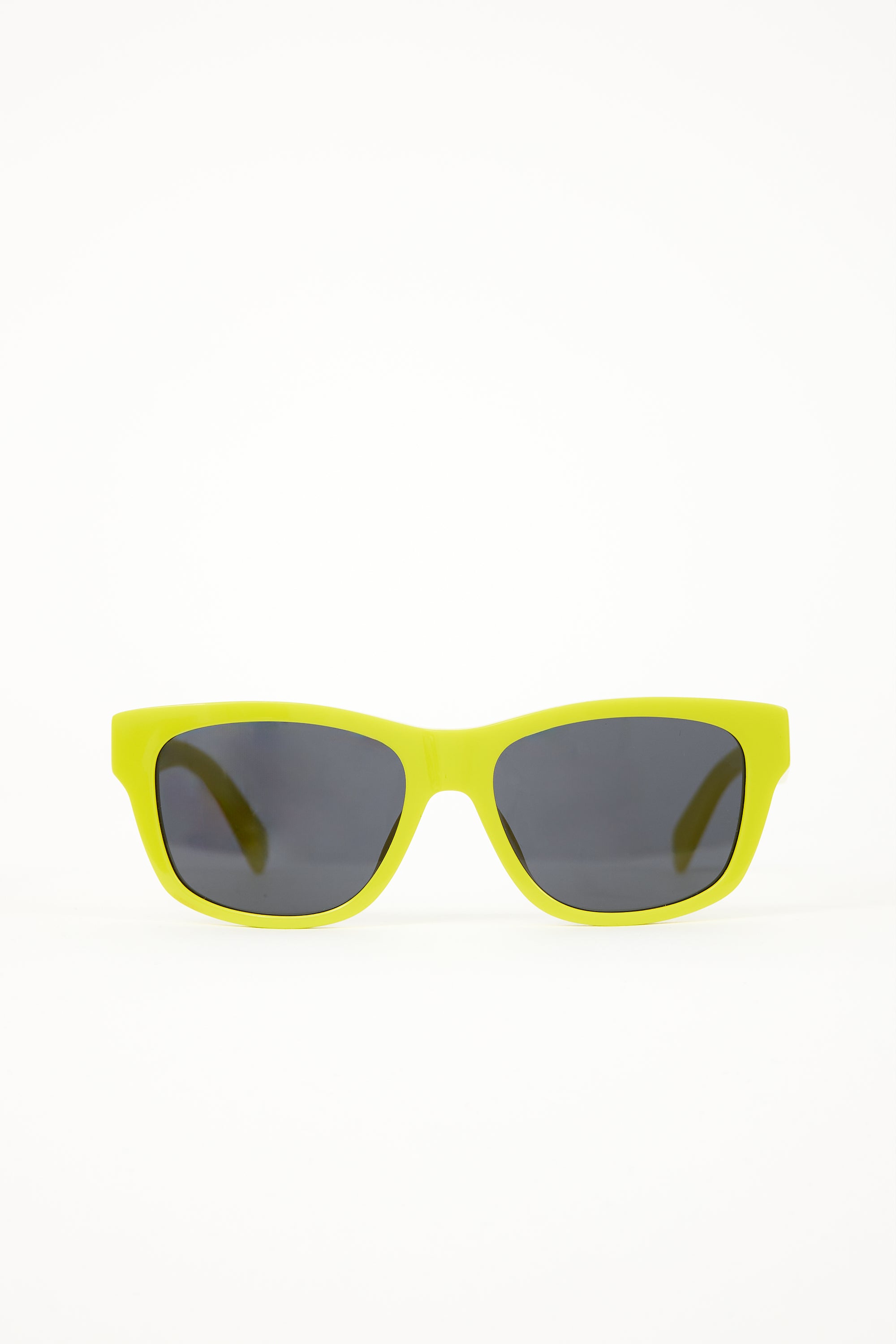 Pre-owned Celine CL40249U sunglasses featuring grey tinted lenses, green acetate square frame, and with printed logo at temples. Comes with original box, crossbody pouch, wipe cloth, and care guide.