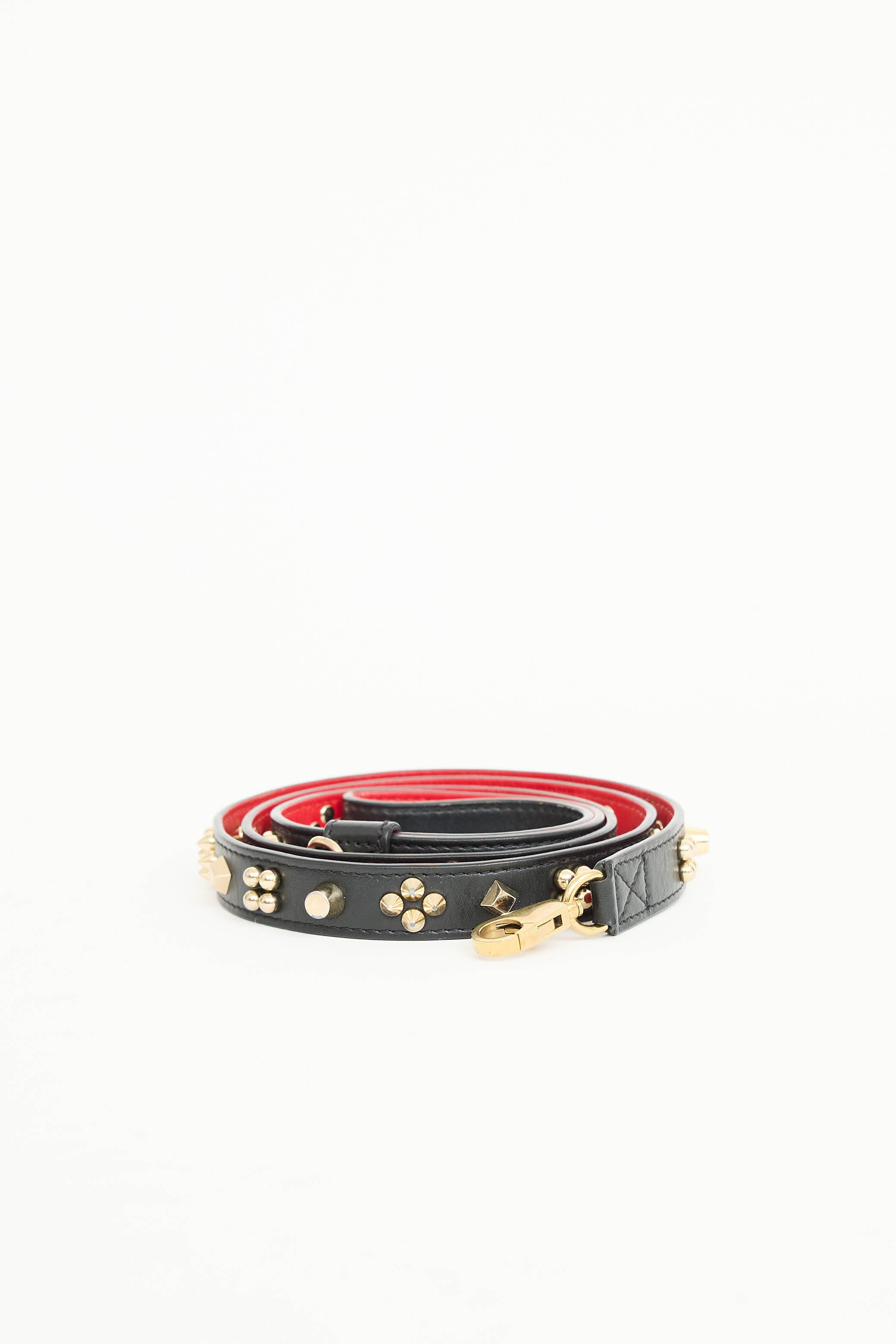 Pre-owned Christian Louboutin black and red small Loubileash dog collar and leash featuring buckle collar and silver tone embellishments throughout.