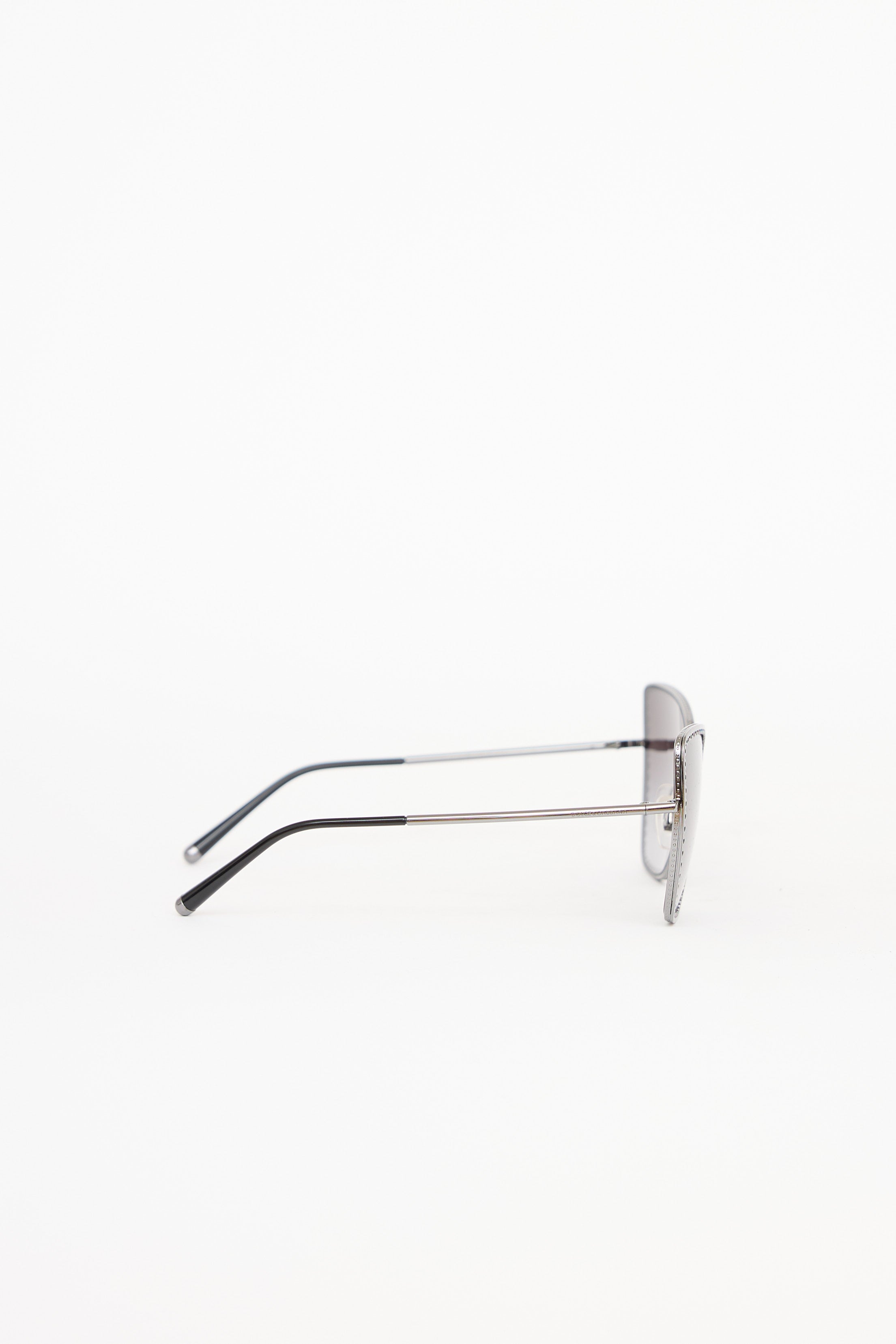 Pre-owned Dolce & Gabbana black DG 2212 sunglasses featuring a cat eye frame, tinted reflective lenses, adjustable nose pads, and engraved logo at temples.