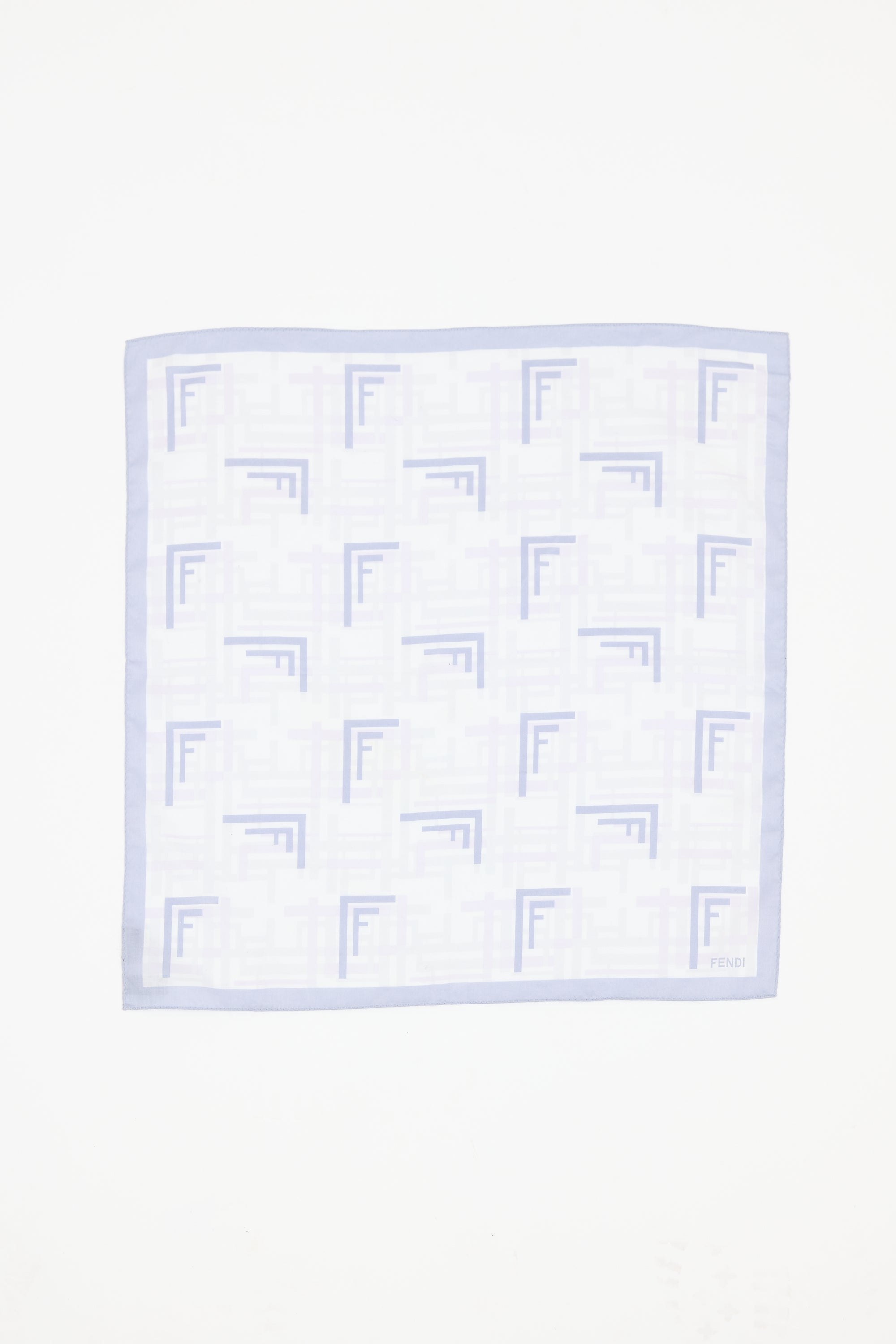 Pre-owned Fendi purple and grey handkerchief featuring monogram print, wordmark logo at bottom right corner, and hand rolled edges.