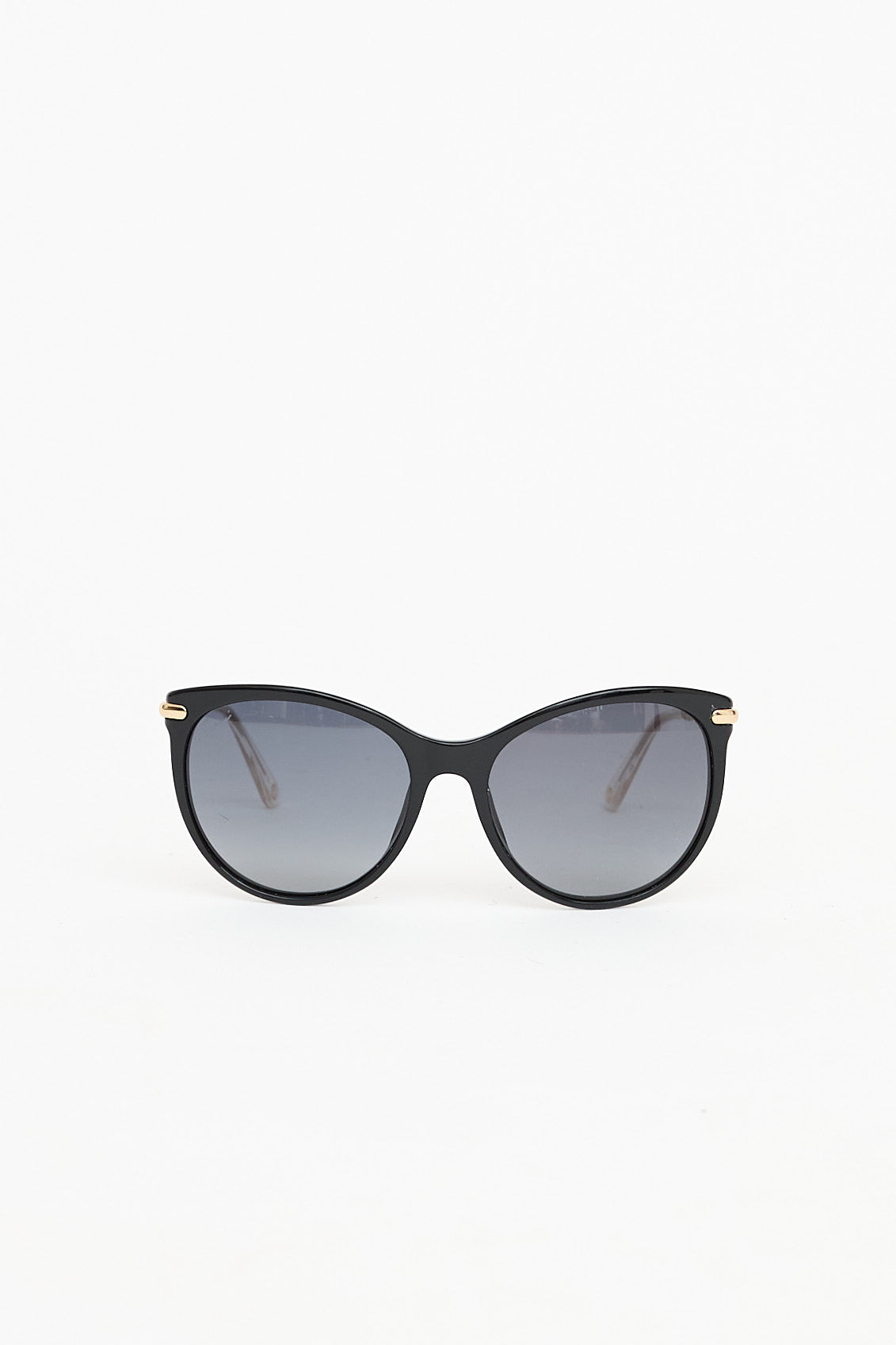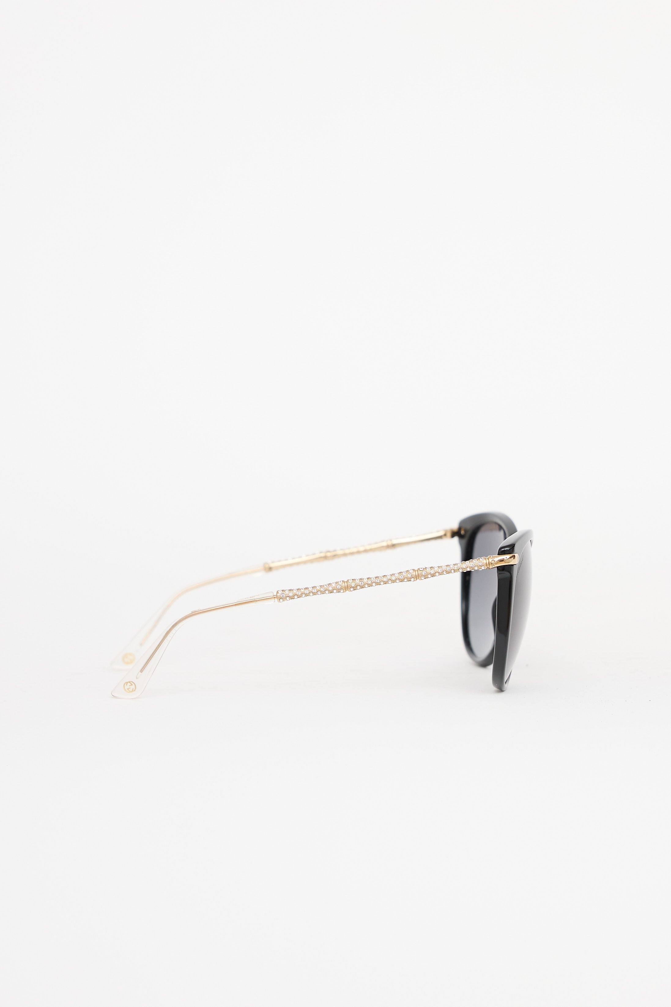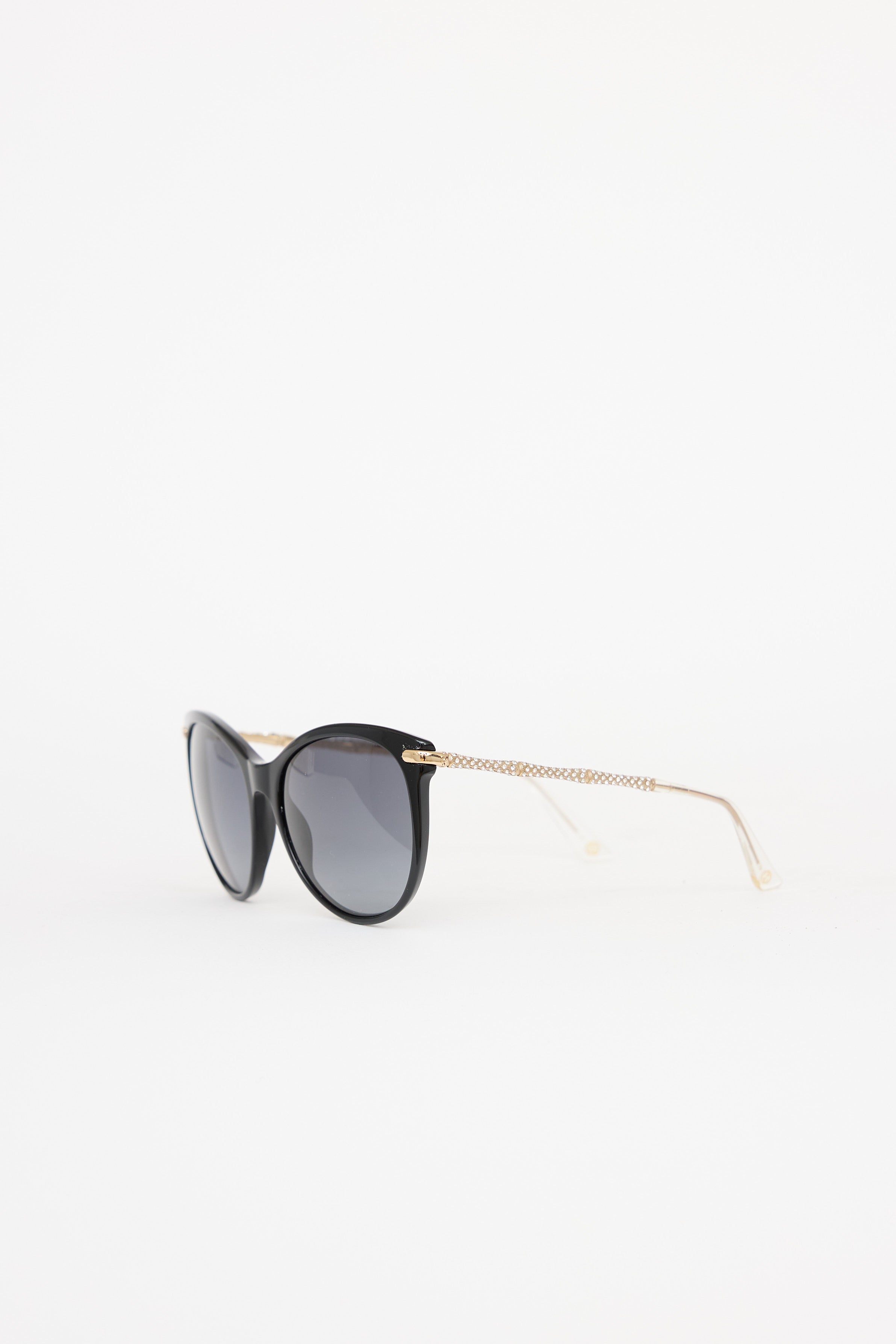 Pre-owned Gucci black and gold 3771/N/S sunglasses featuring round frames, black tinted lenses, and crystal embellished arms.