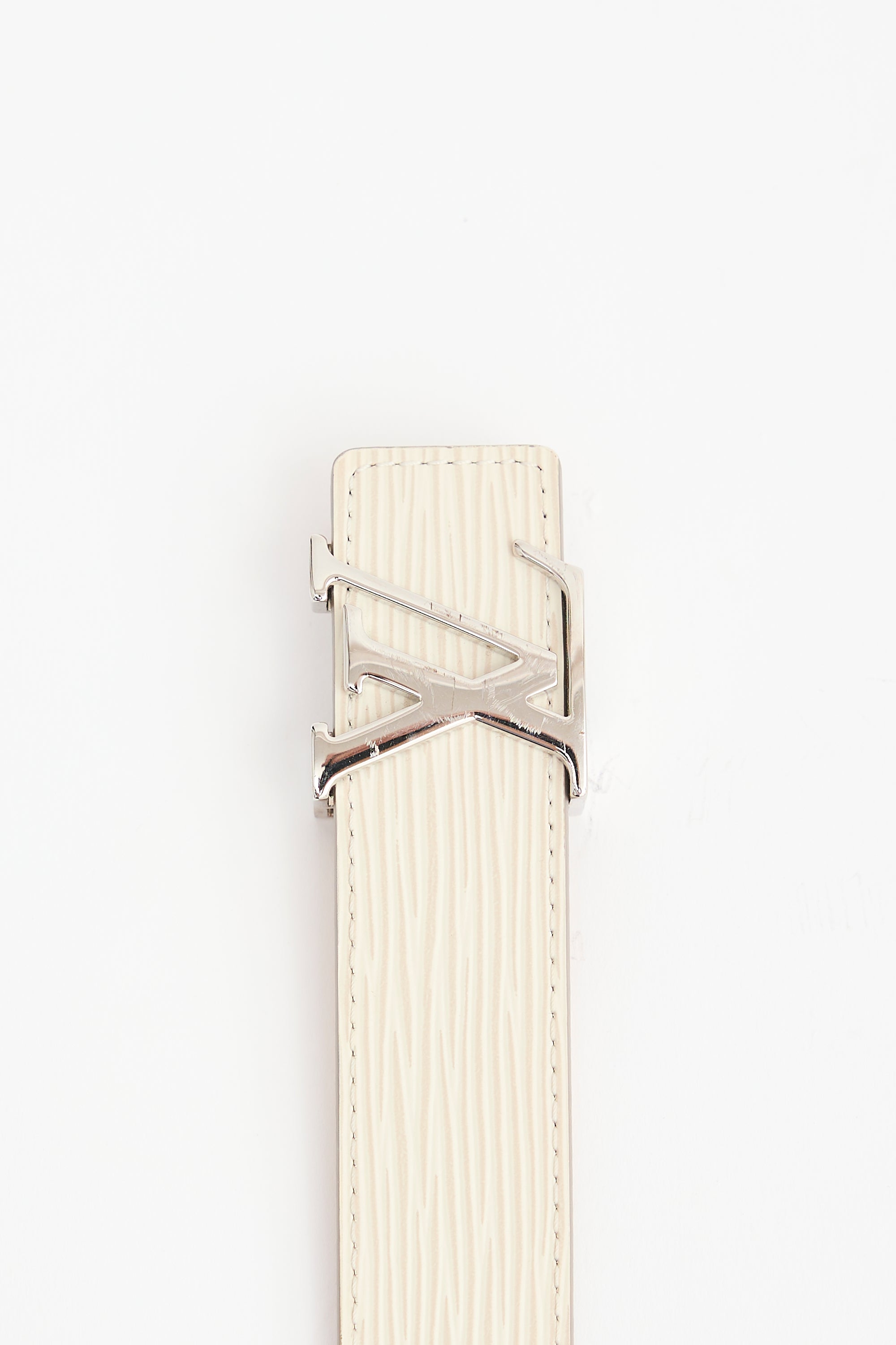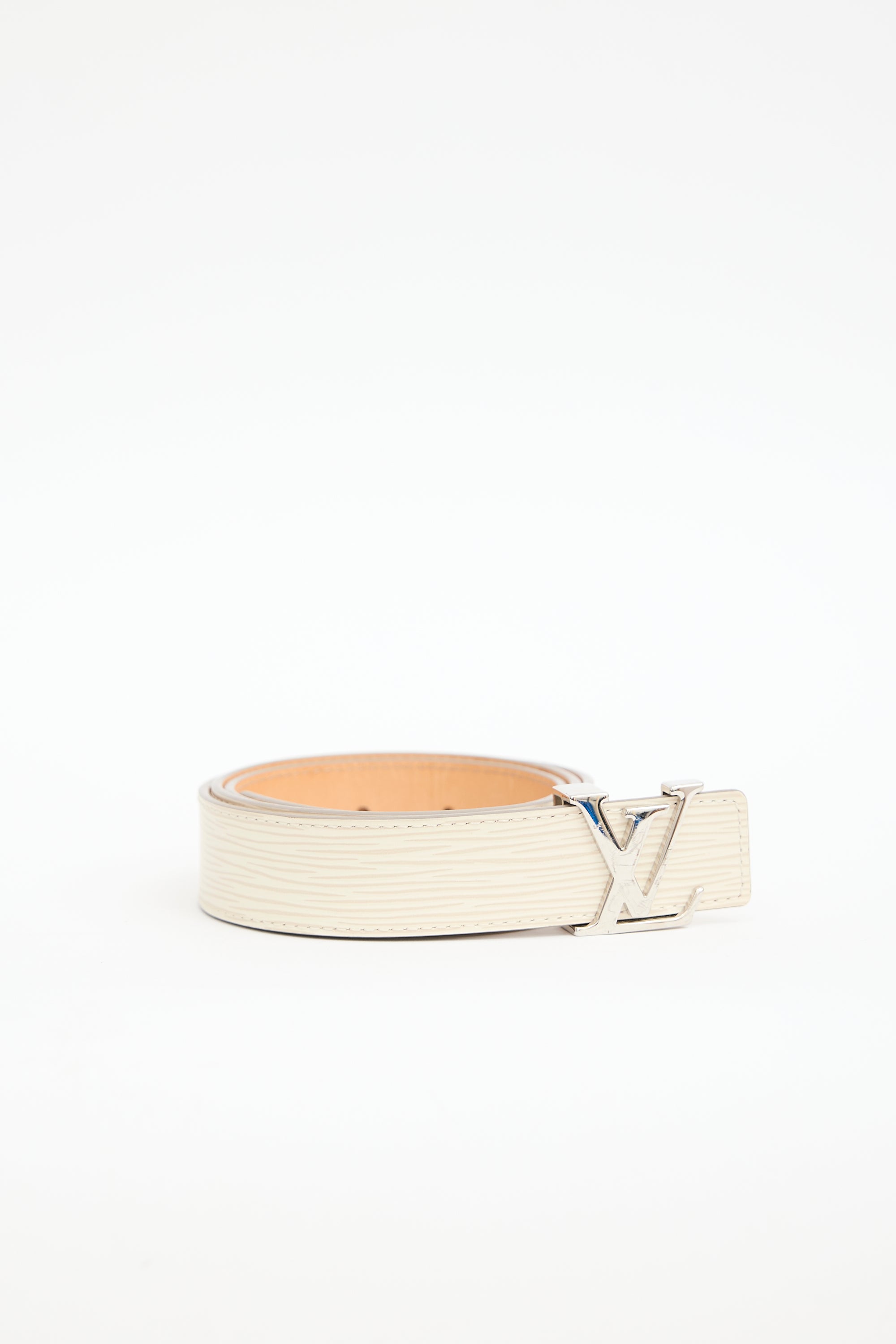 Pre-owned Louis Vuitton cream Epi leather belt featuring stamped logo at reverse, silver tone LV buckle, and push pin closure.
