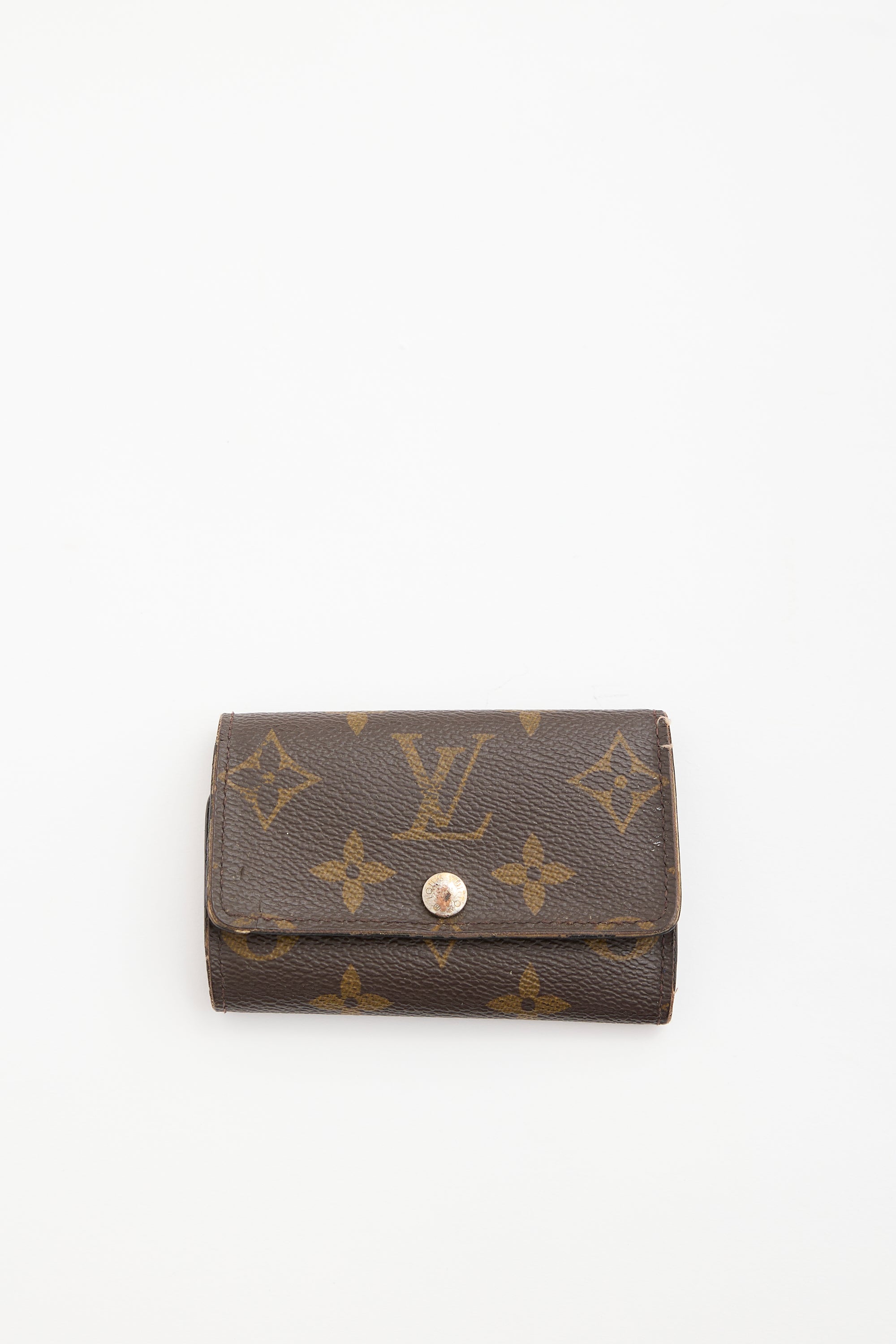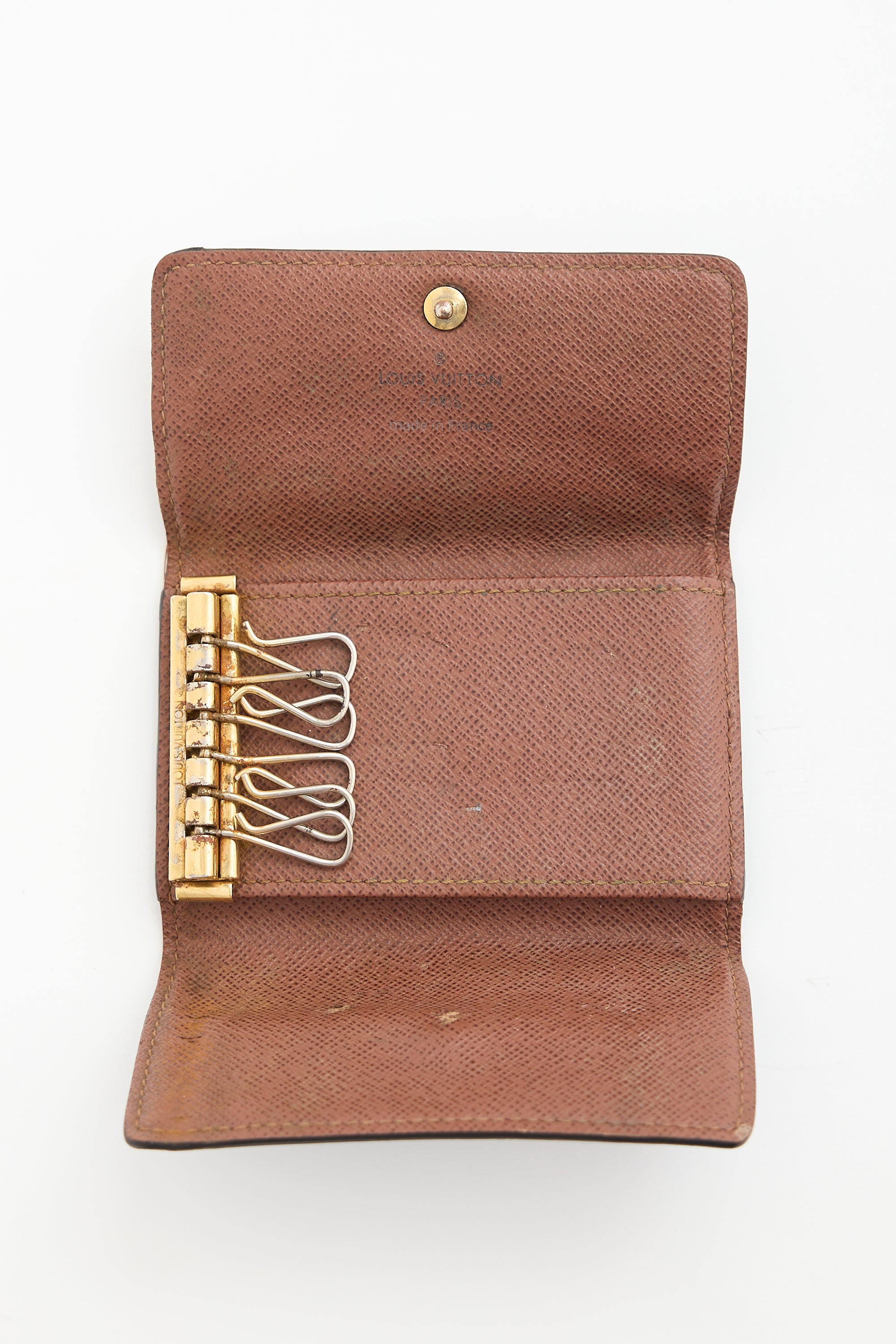 Pre-owned Louis Vuitton brown key holder wallet featuring signature monogram coated canvas, gold tone hardware, snap button closure, and six hooks at interior.