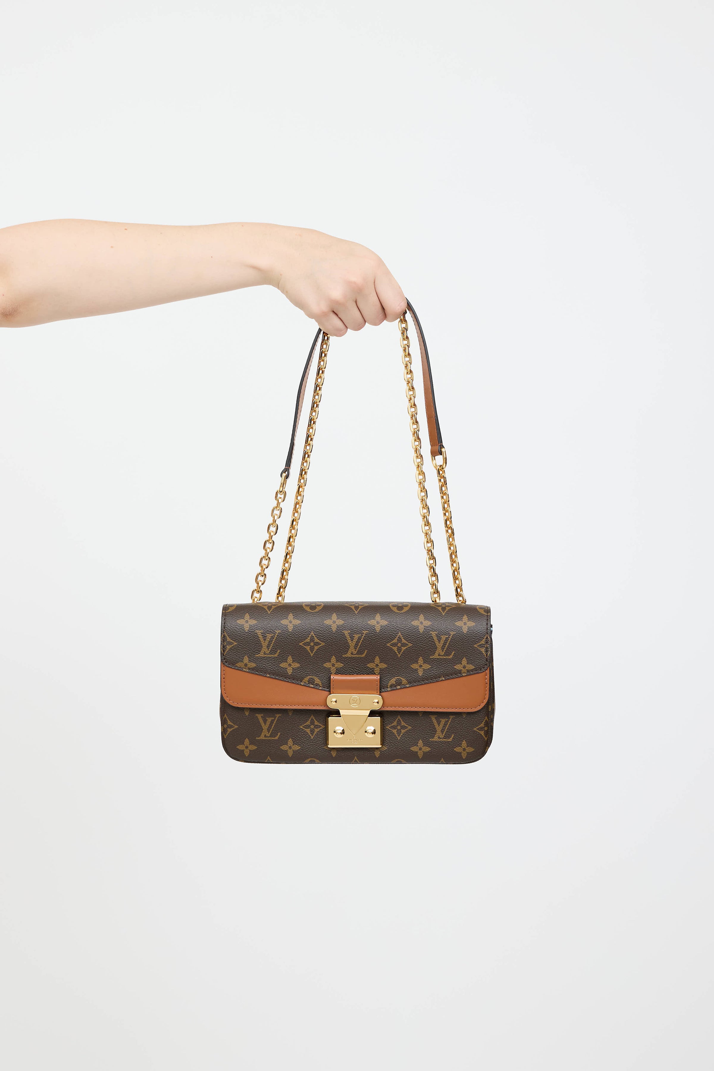 Pre-owned Louis Vuitton monogram Marceau bag featuring monogram coated canvas, gold tone hardware, sliding chain-link leather shoulder strap, S-lock closure, top flap, one main compartment, one zip pocket and one slip pocket. Microchipped.