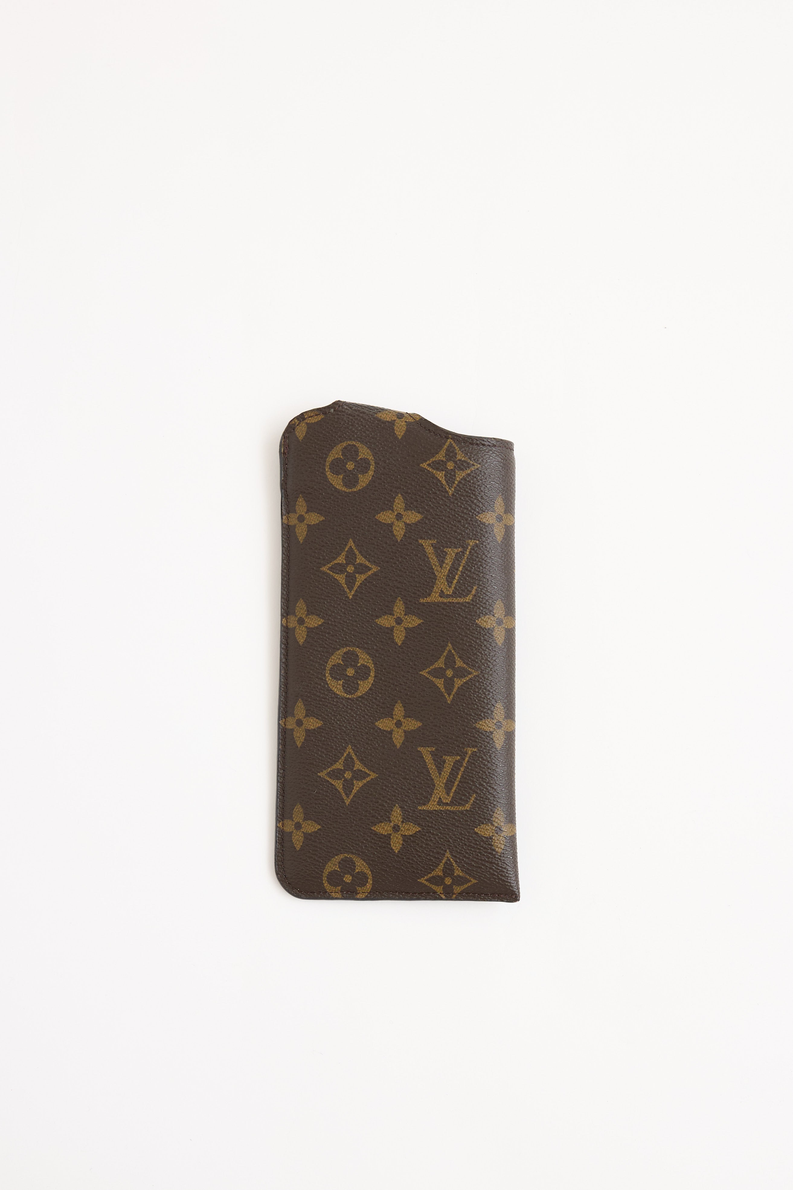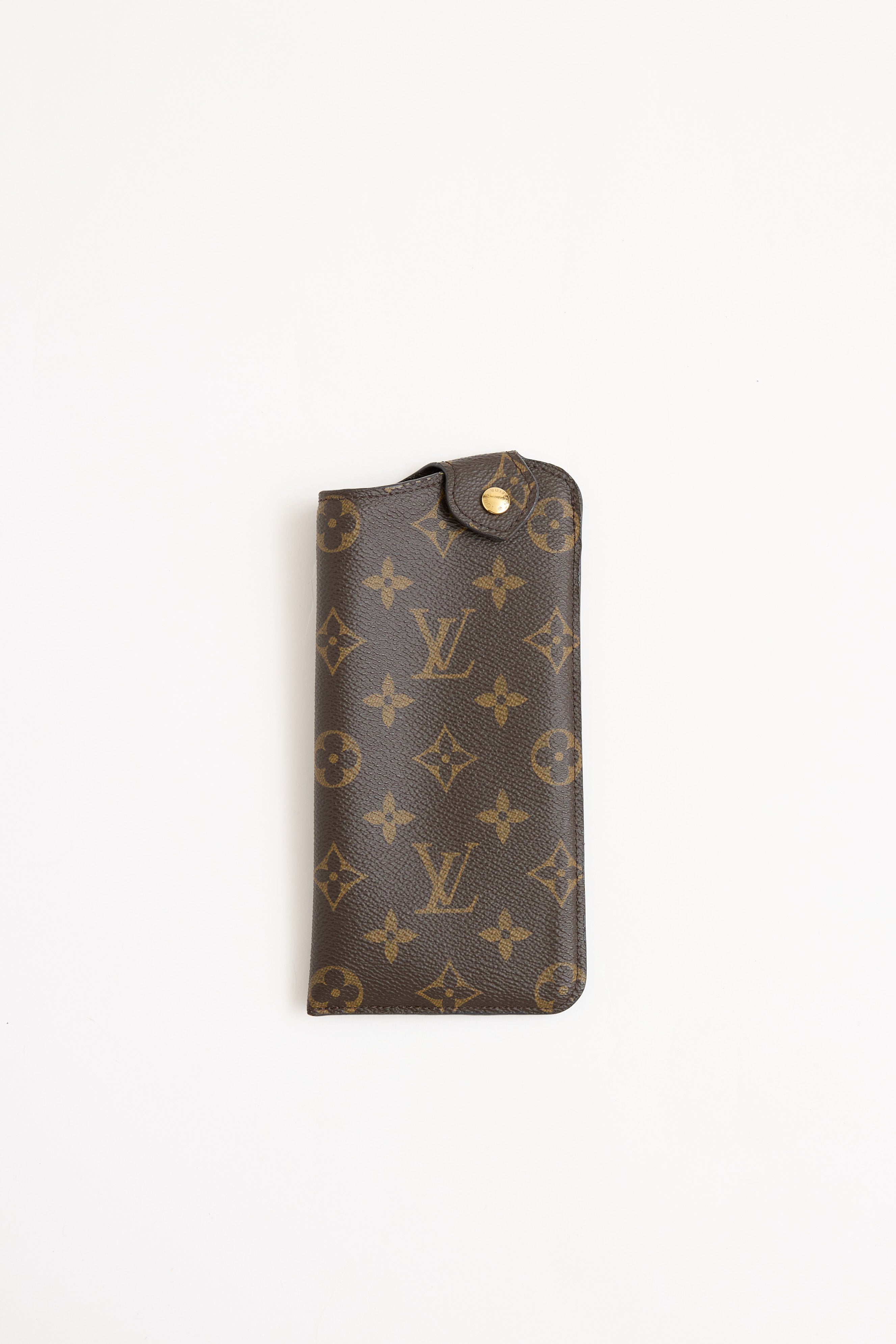 Pre-owned Louis Vuitton brown sunglass case featuring signature monogram and snap button closure.