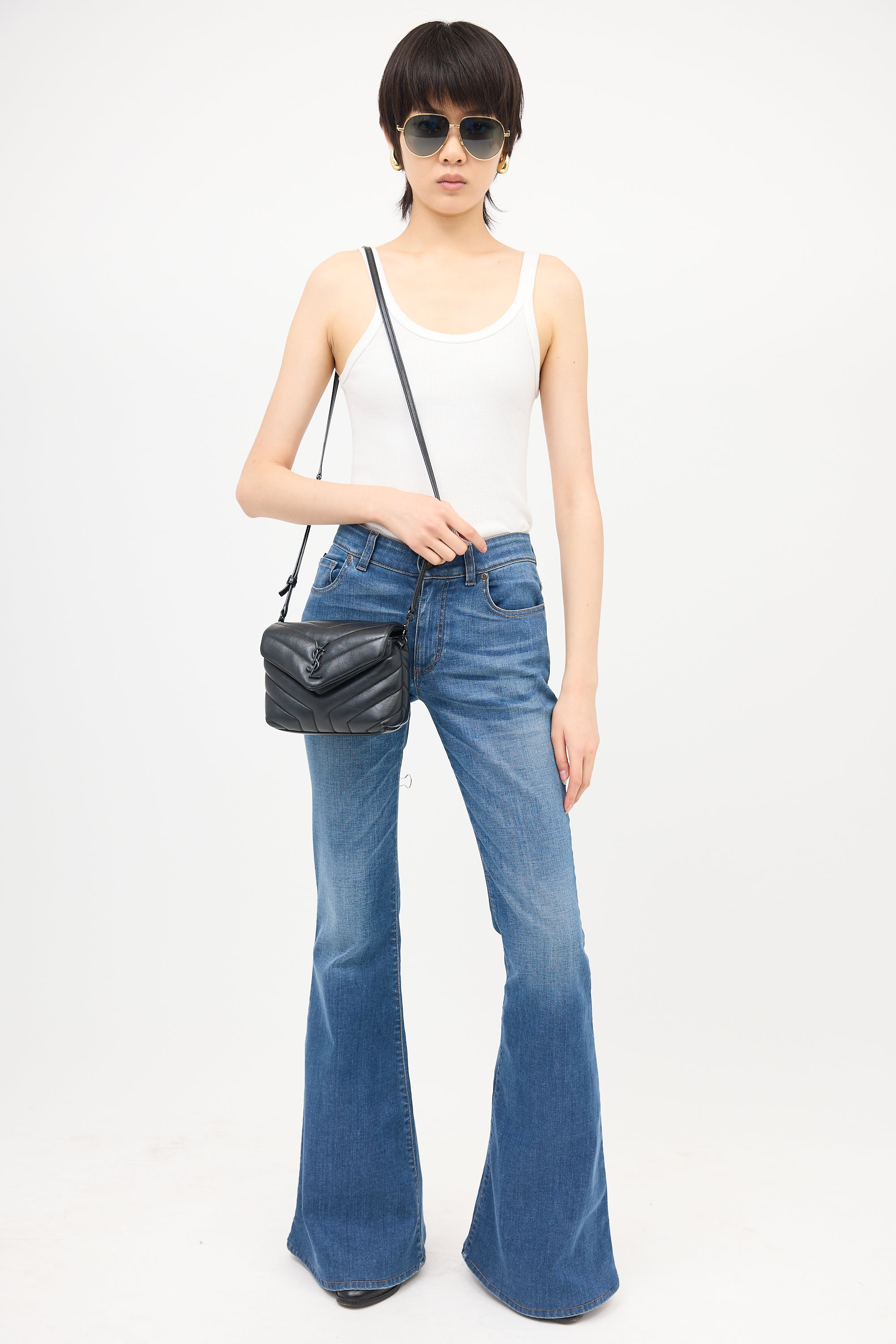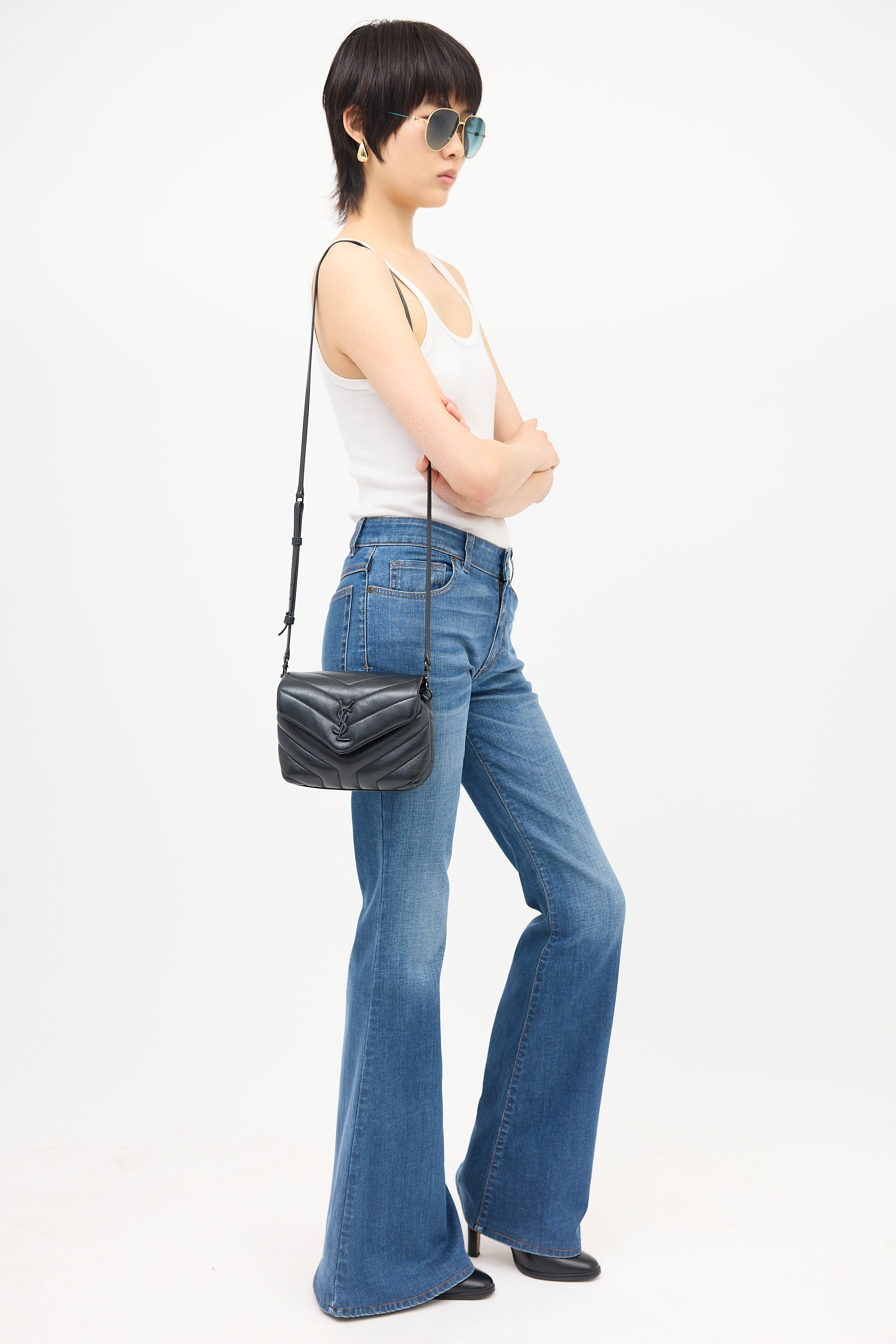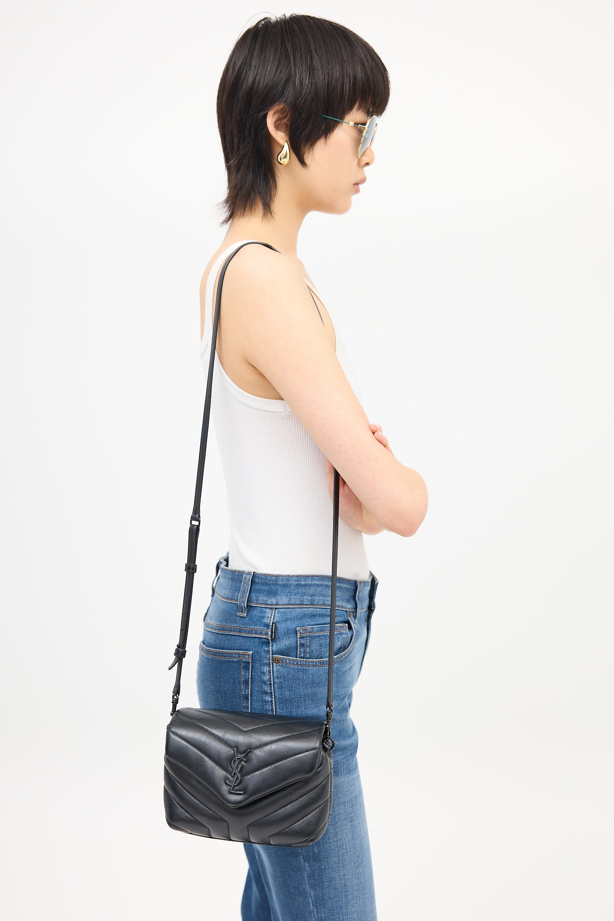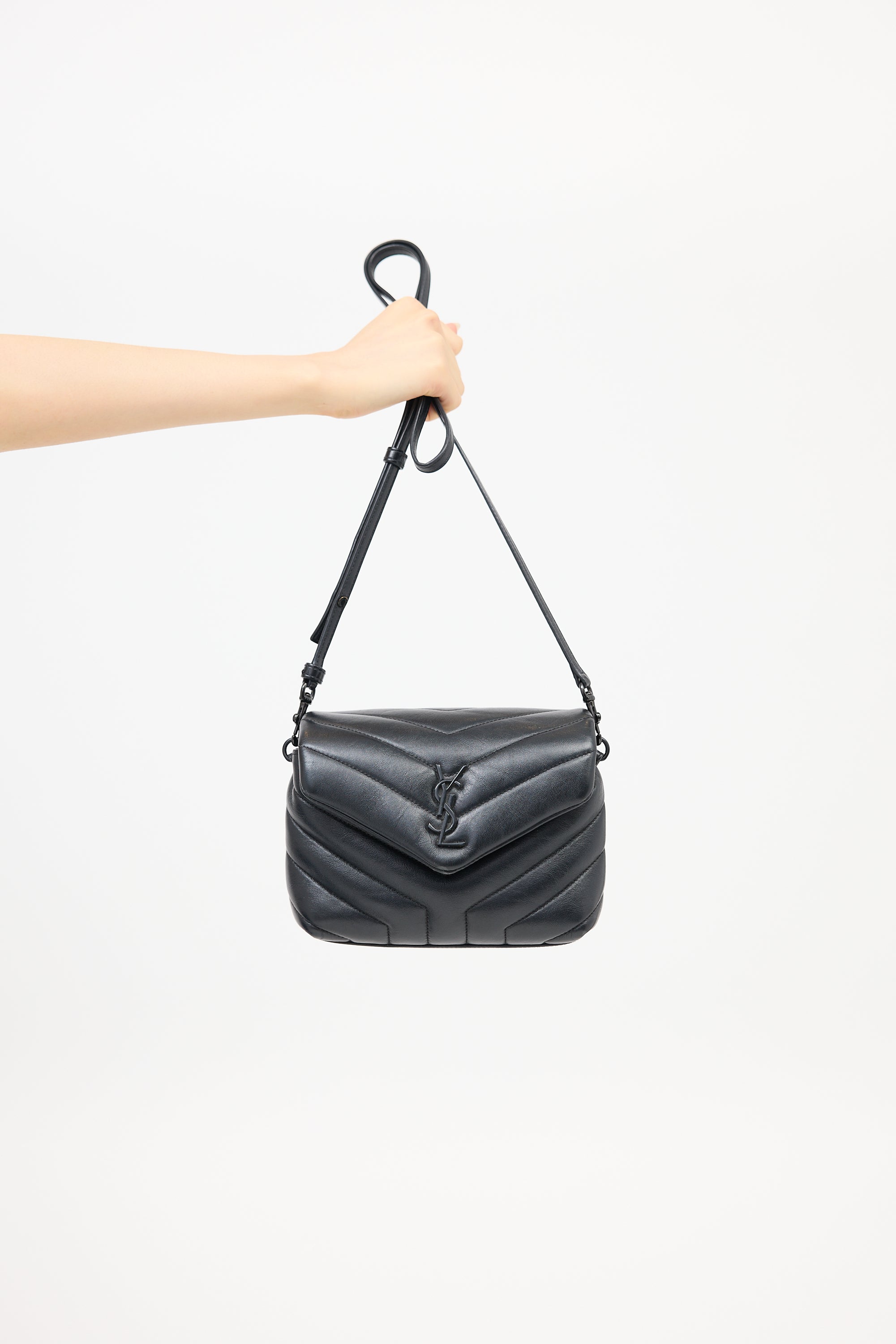 Pre-owned Saint Laurent 2018 black toy Loulou Puffer bag featuring a quilted leather body, black tonal hardware, Cassandre logo at face, magnetic top flap closure, detachable and adjustable shoulder strap, two main compartments with one slip pocket partition, one interior zip pocket, and four card slots. Comes with original dust bag.