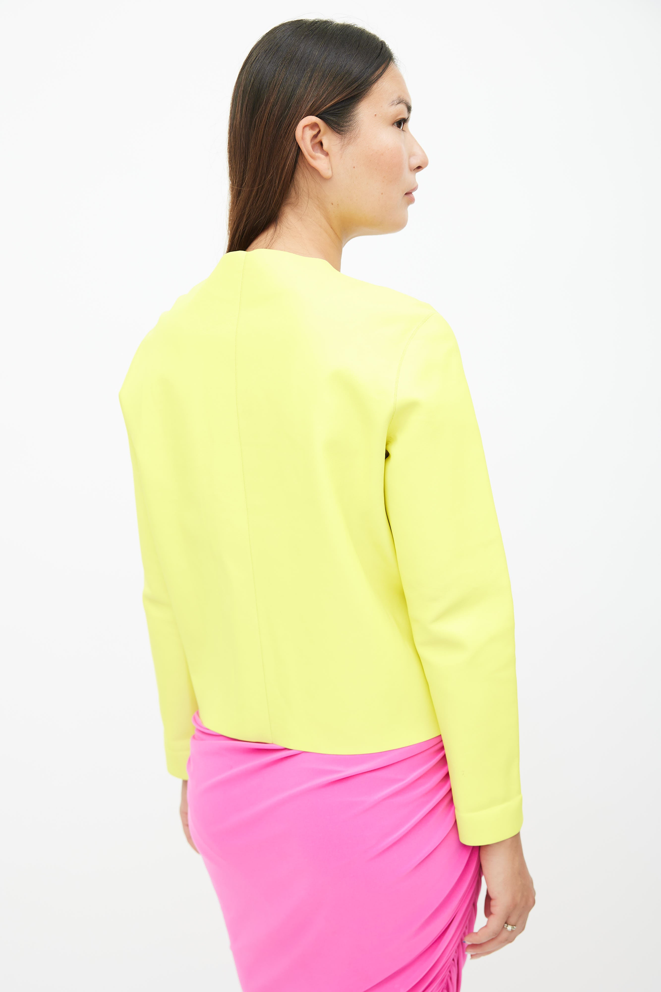 Neon Yellow Leather Full Zip Jacket IT 38 Size Guide