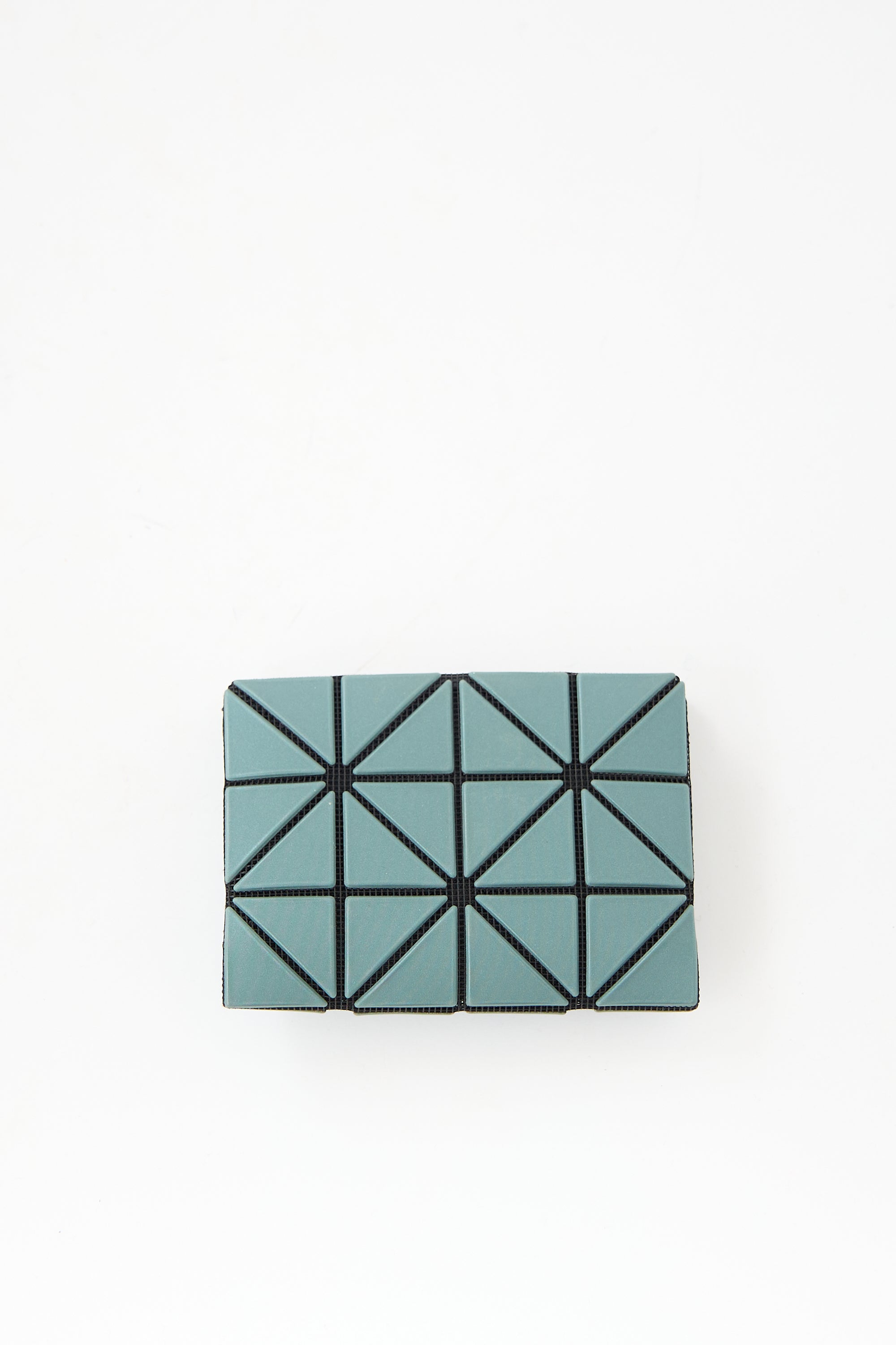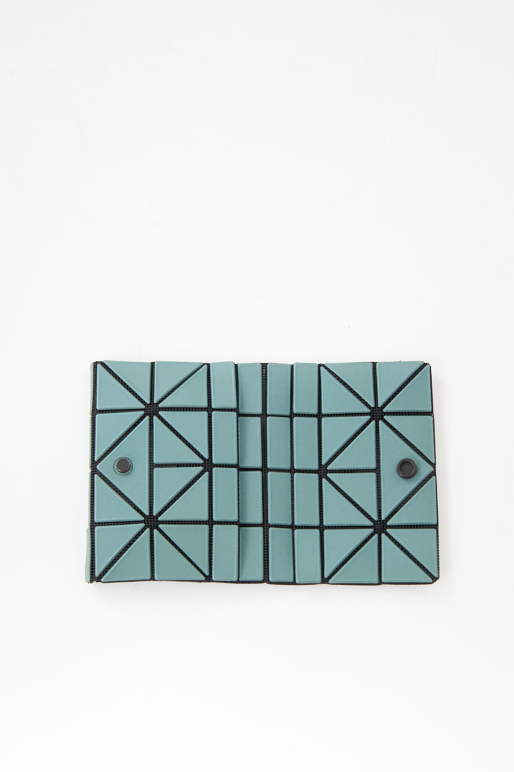 Pre-owned Bao Bao Issey Miyake blue and black bifold Card Wallet featuring signature triangular vinyl appliqués throughout body, front flap pocket with snap closure, and interior with snap closure and two lined card slots.