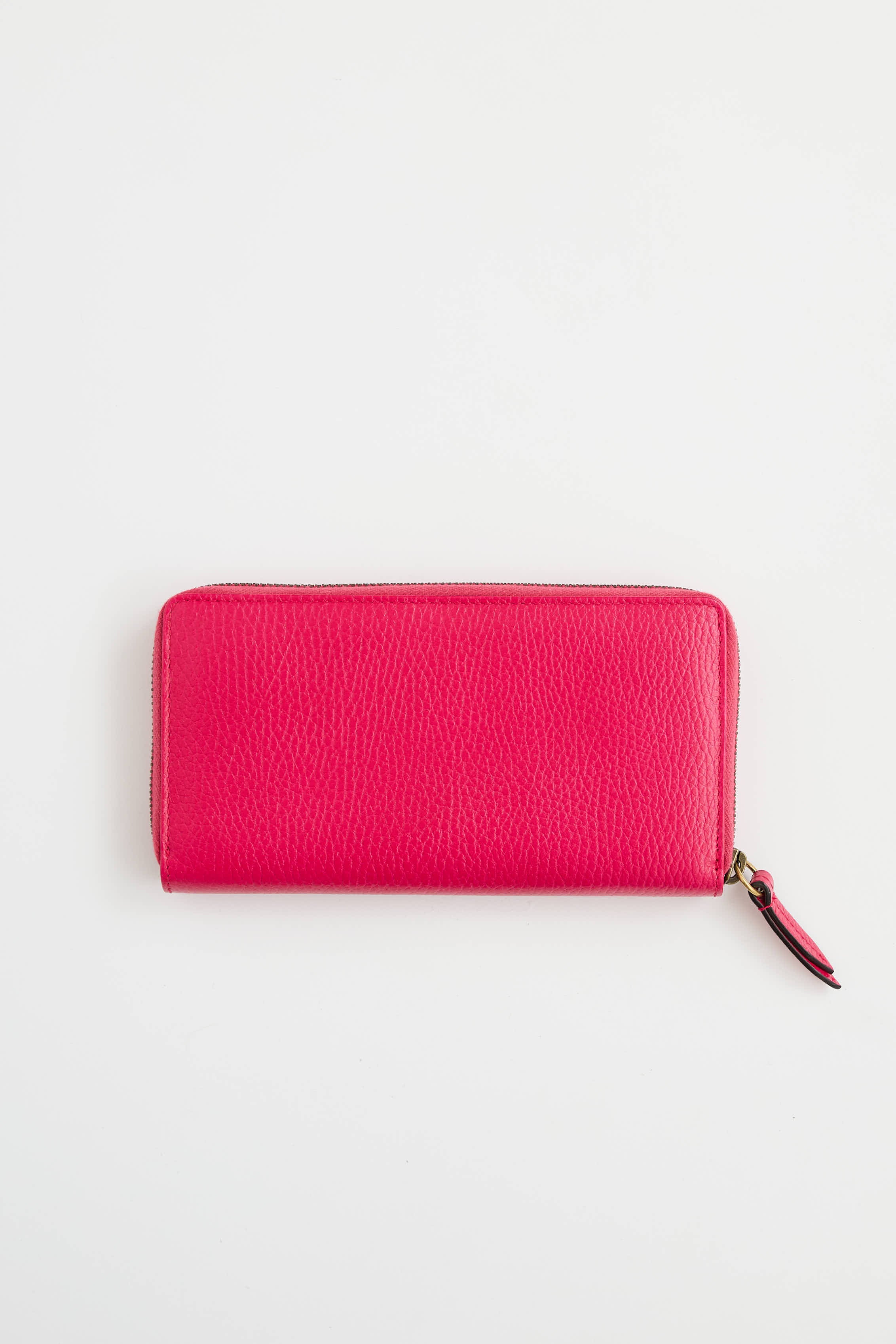 Pre-owned Gucci pink Marmont GG Butterfly wallet featuring gold tone GG logo and jewelled butterfly hardware at front, three interior slip pockets, twelve card slots, zip pocket at centre and gold tone GG logo at outer.