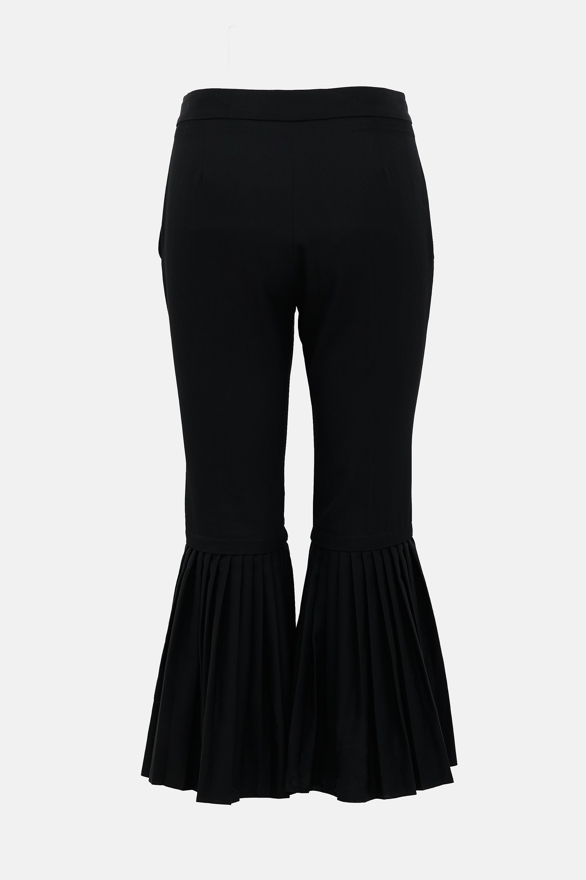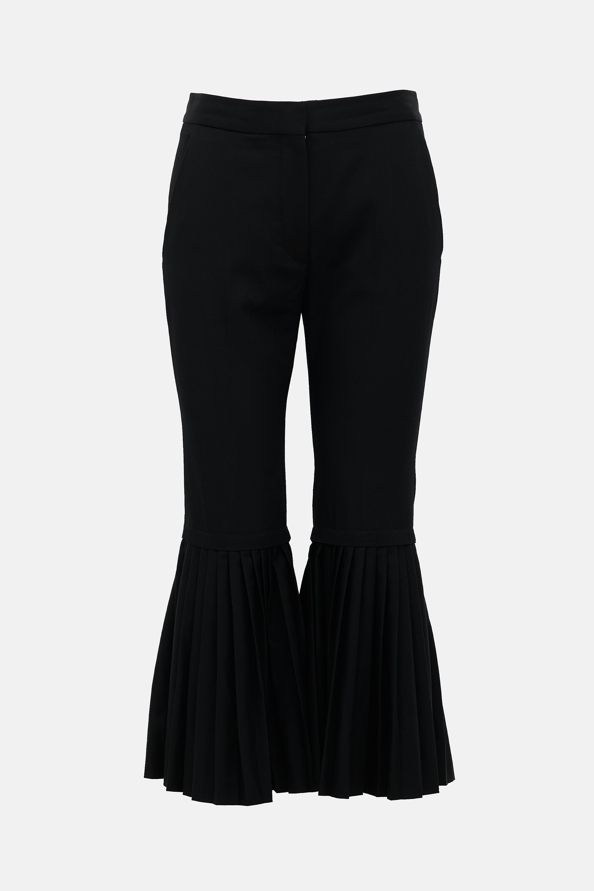 Pre-owned Stella McCartney black wool pants featuring a mid rise, zip fly with hook and eye fastening, two pocket styling, cropped flared leg, and pleated hems.