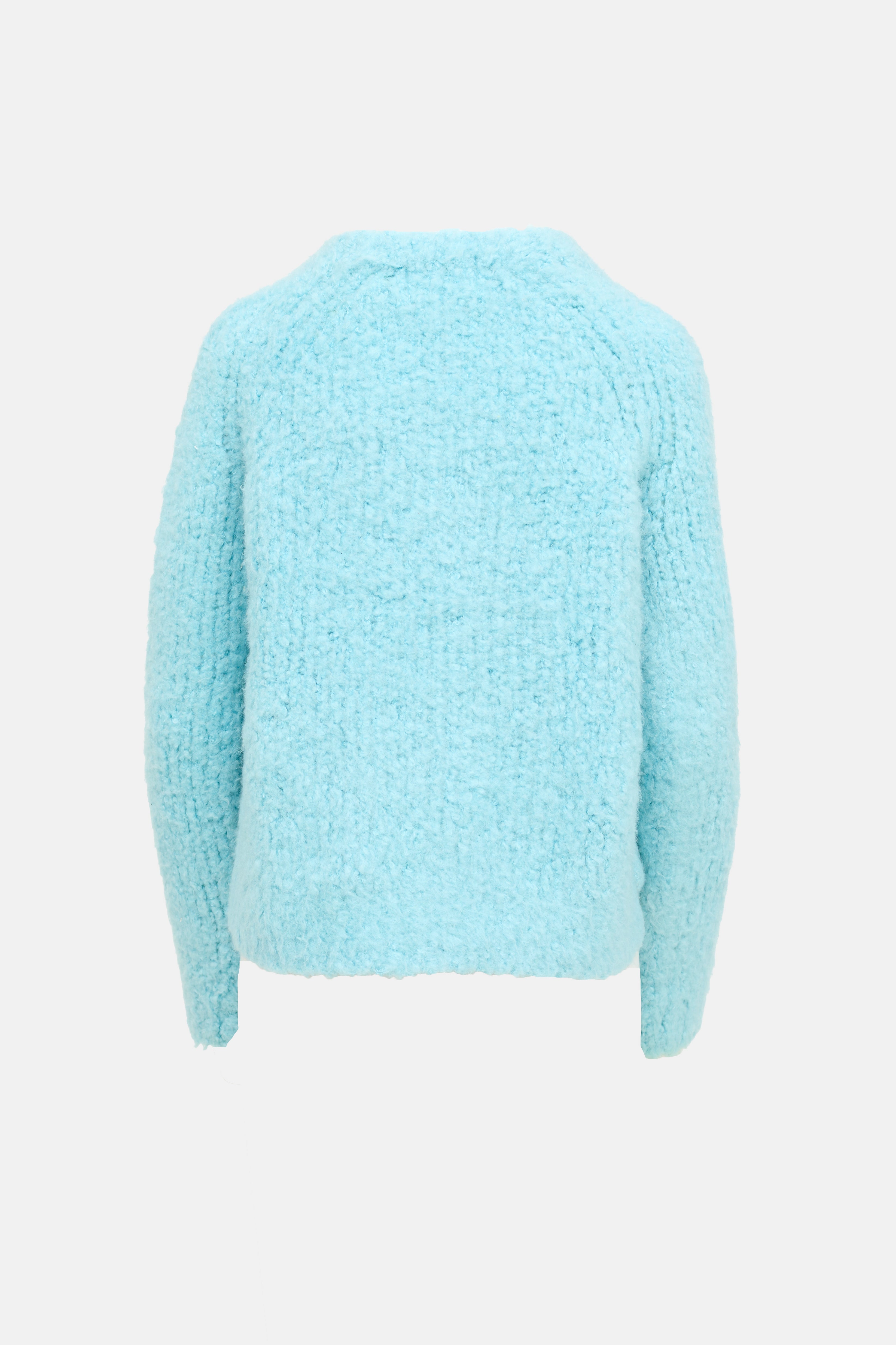 Pre-owned Maison Margiela blue knit boucle sweater featuring a crew neckline, long sleeves, slits at sides, and ribbed hem.