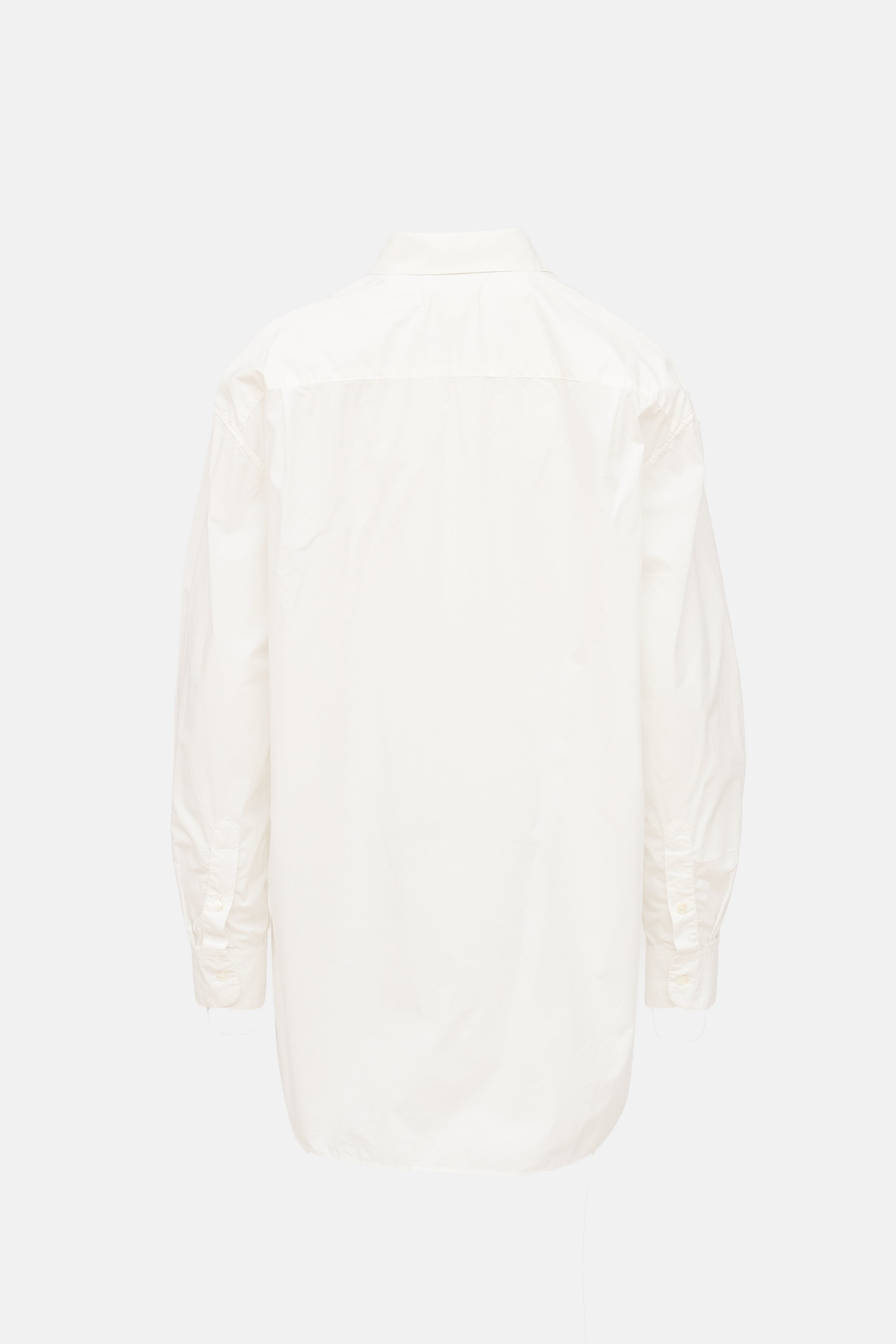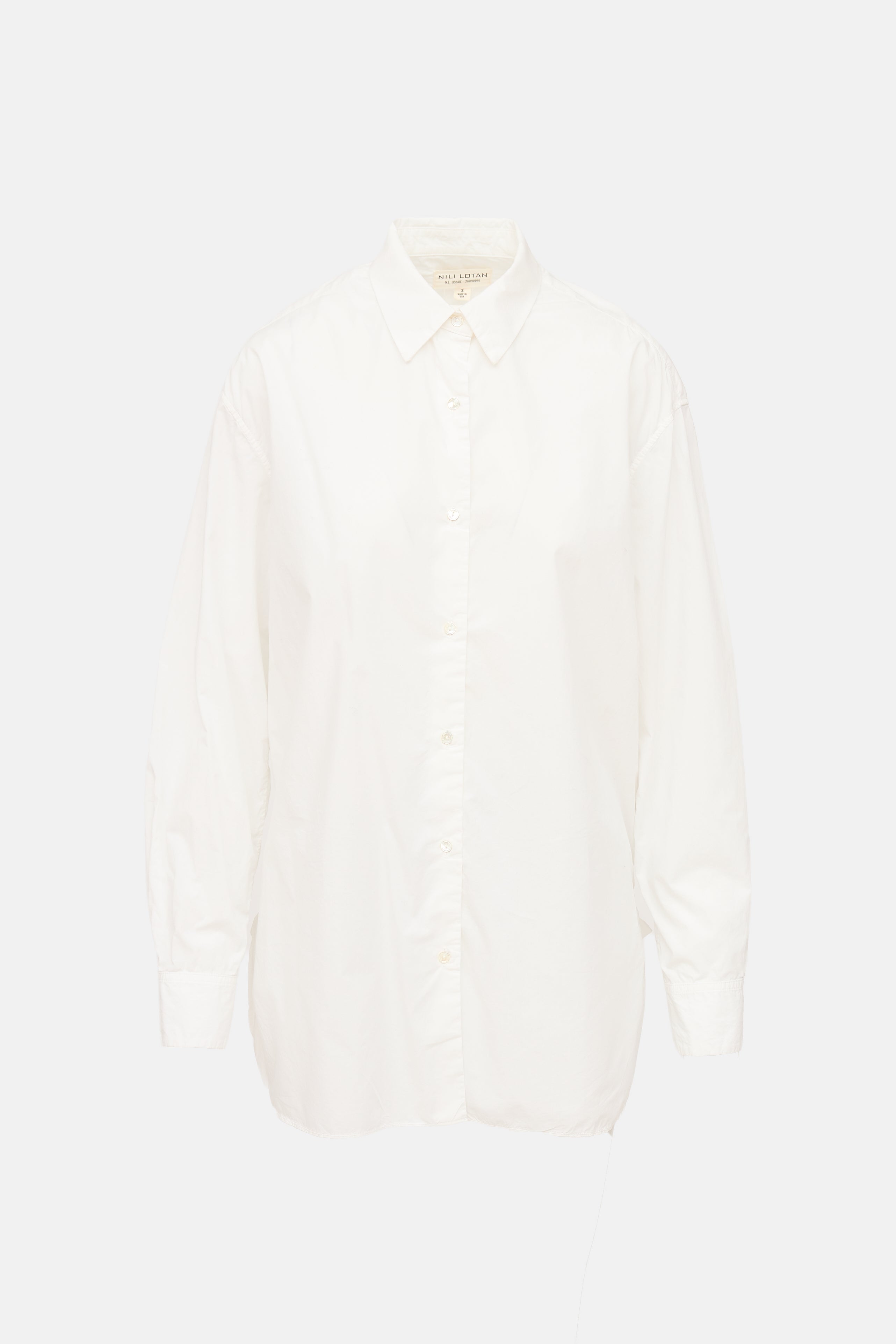 Pre-owned Nili Lotan white button up top featuring pointed collar, pleated and buttoned cuffs, slits at hemline, and button up closure.