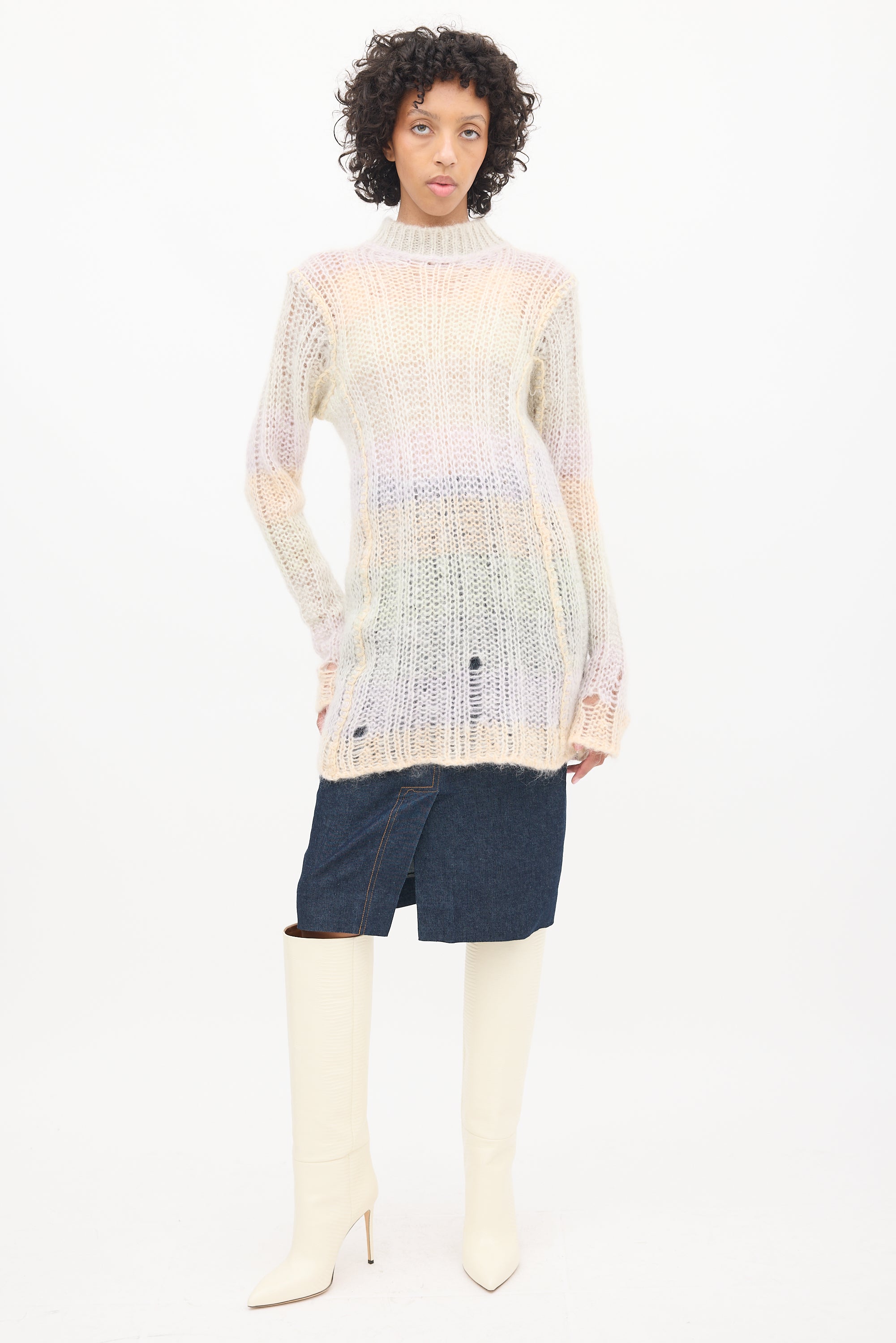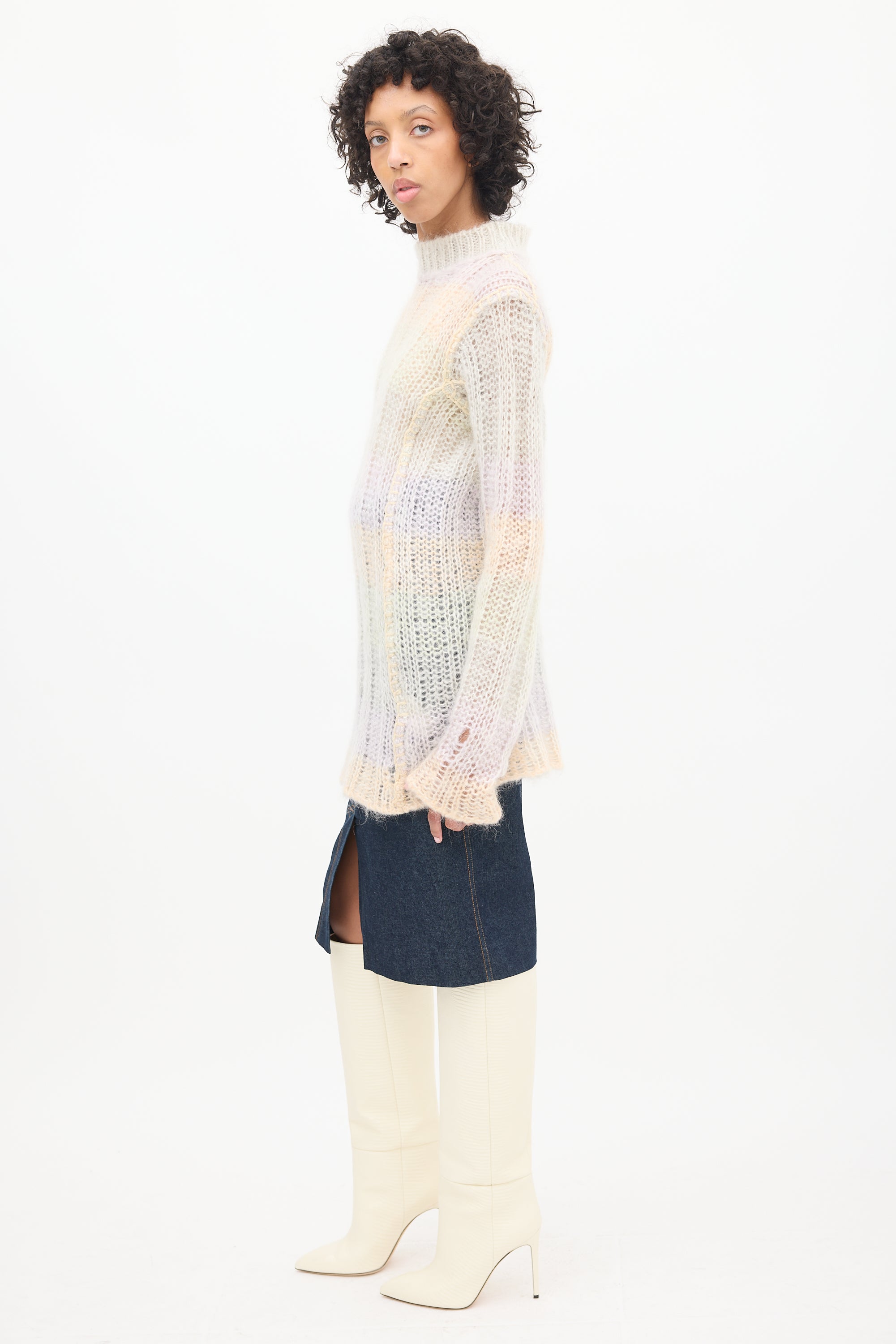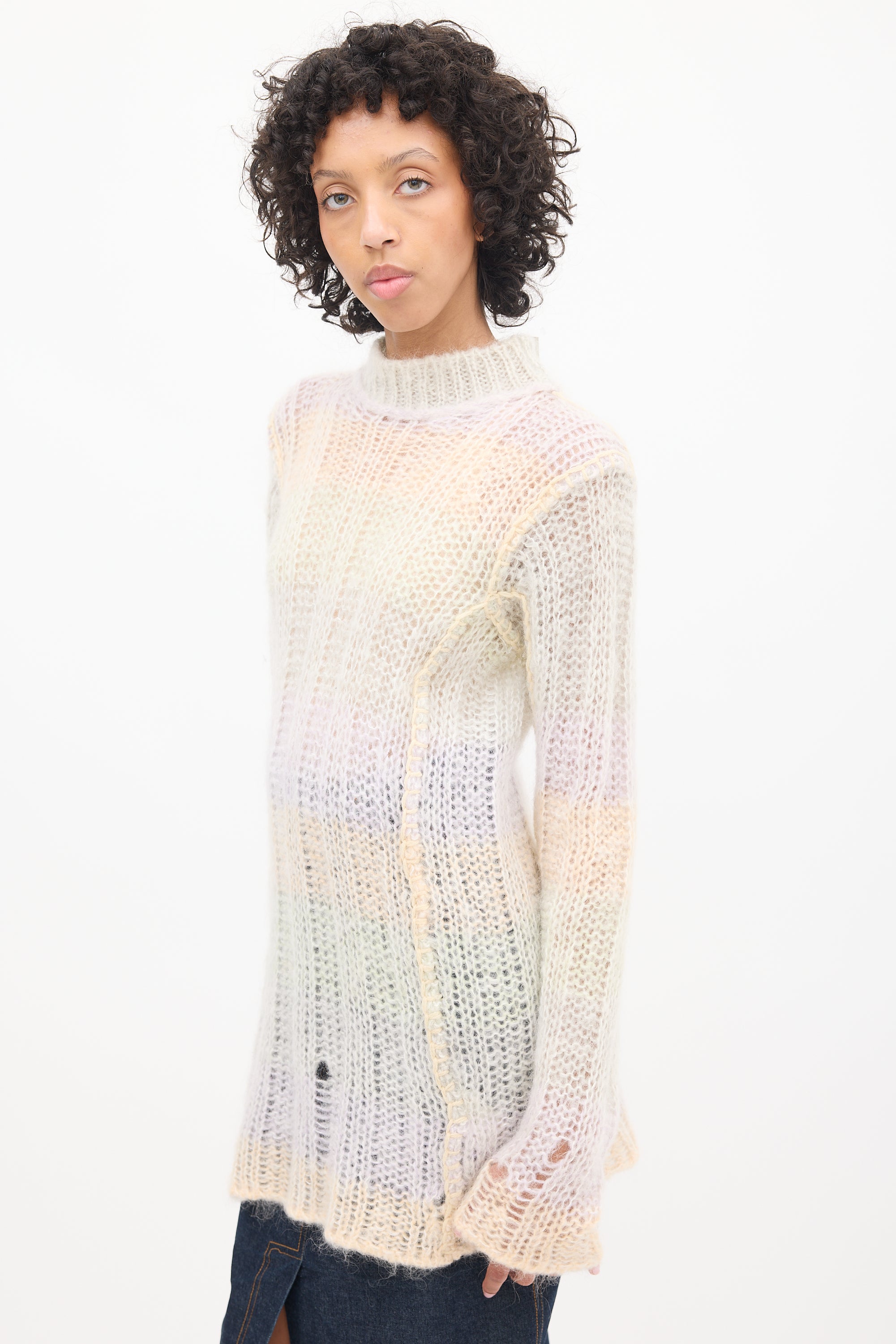 Multicolour Mohair Striped Mock Neck Sweater X-Small Size Guide