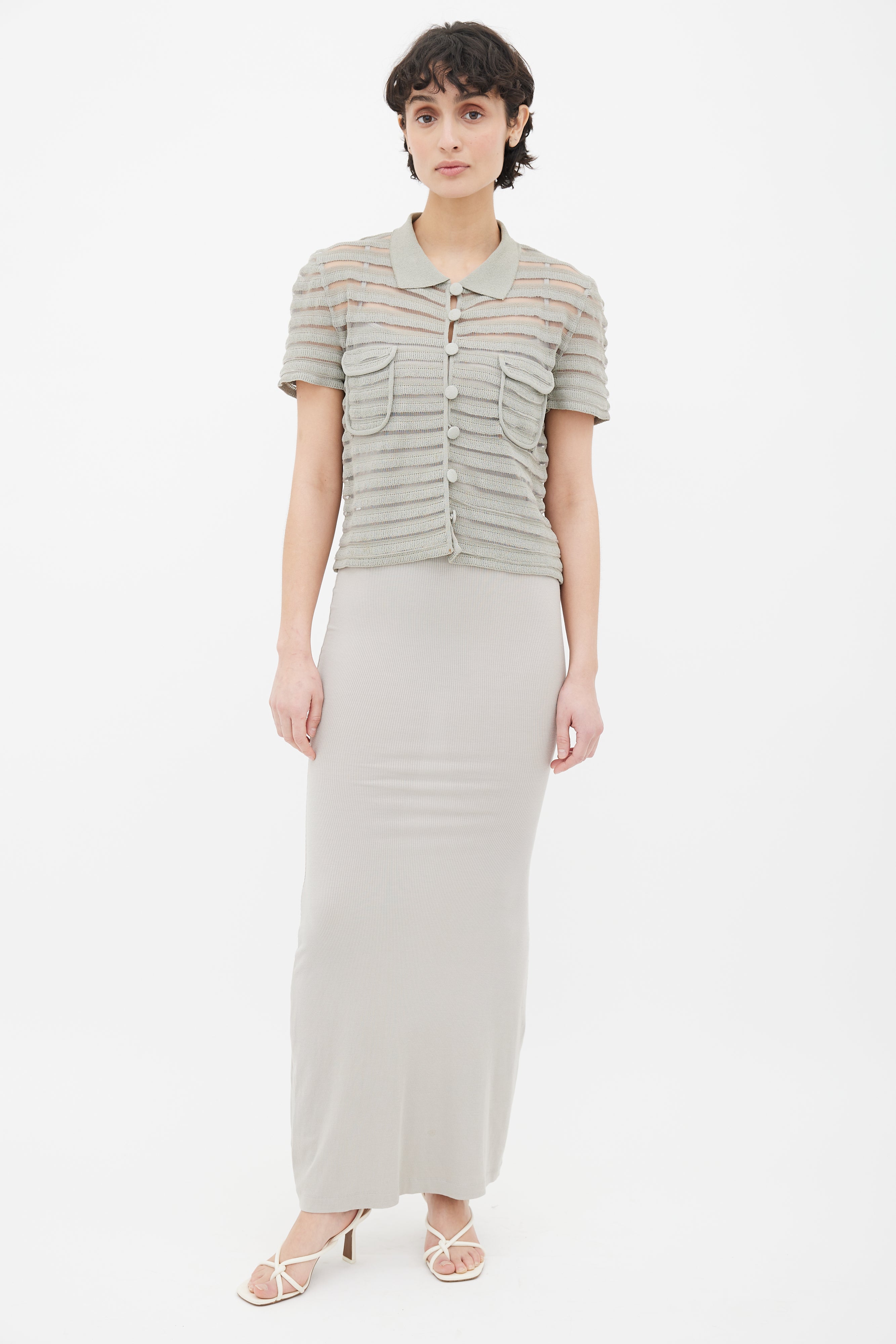 Greige Semi Sheer Striped Knit Shirt Large Size Guide