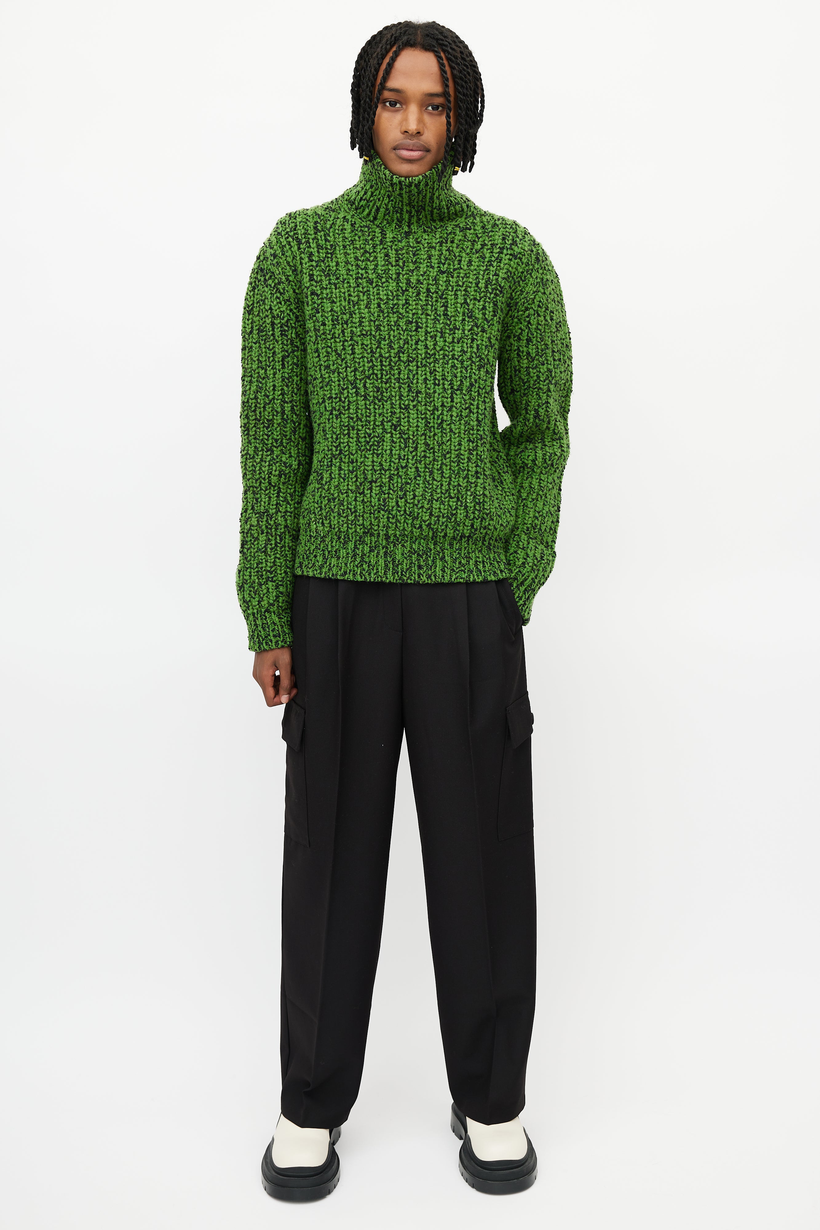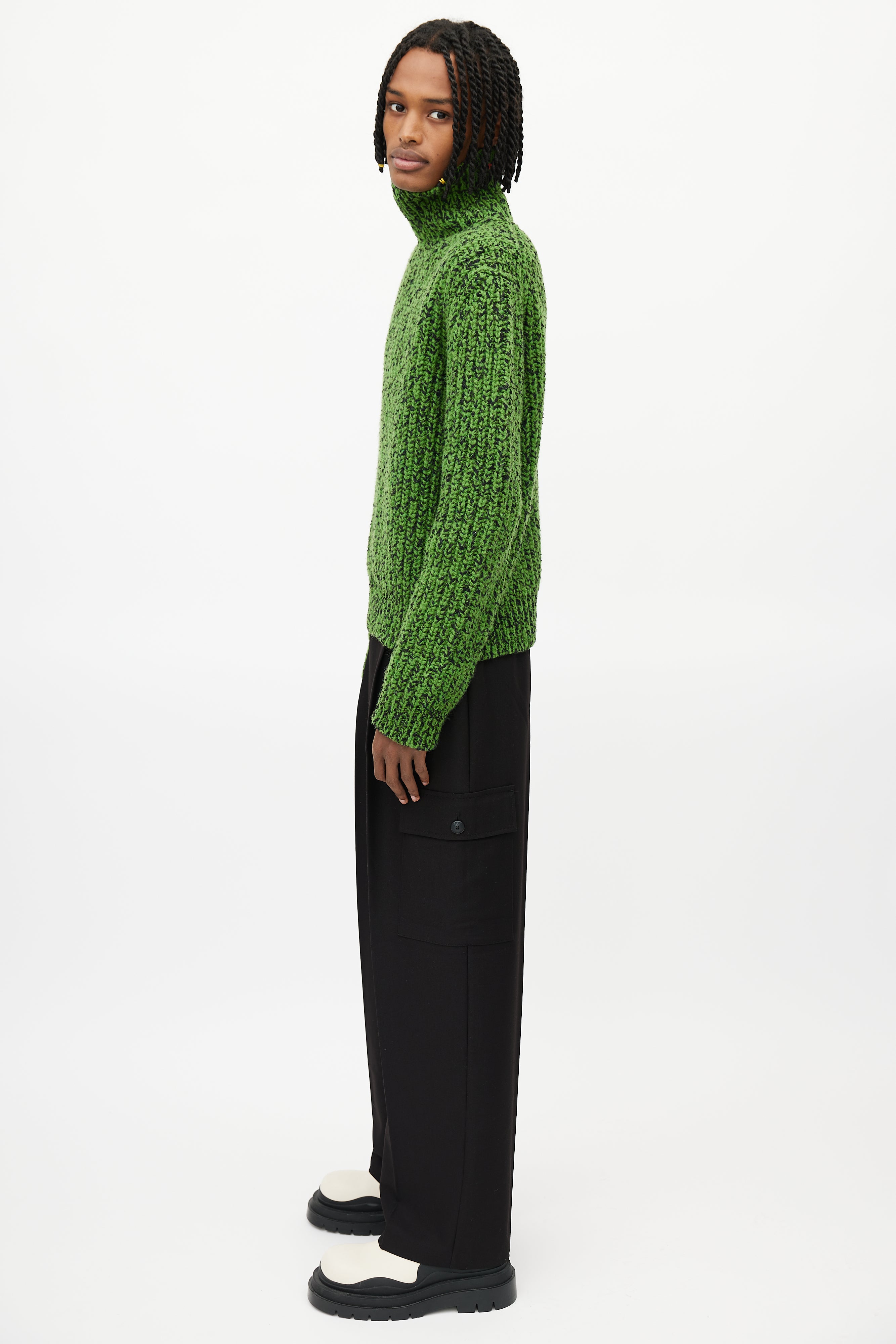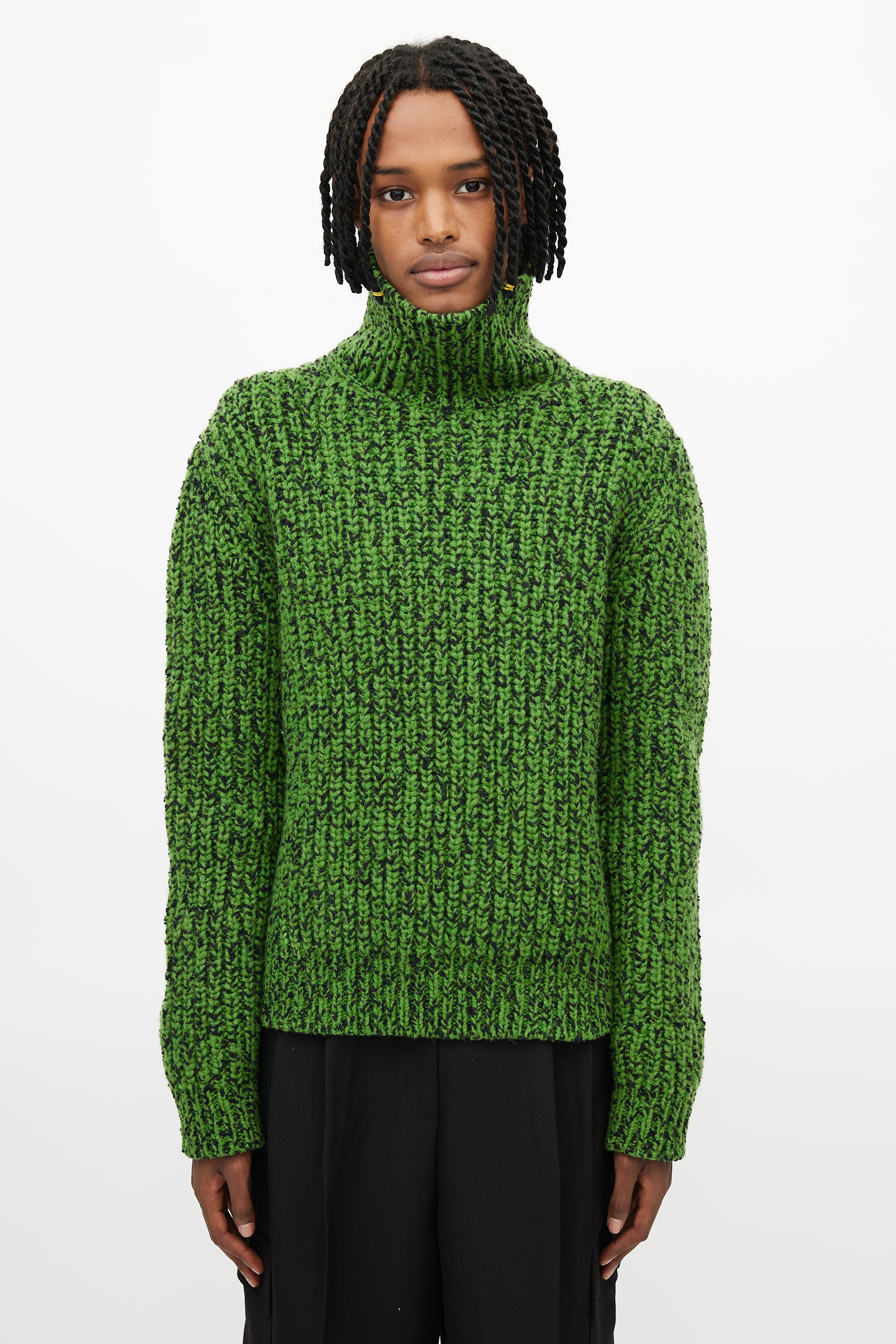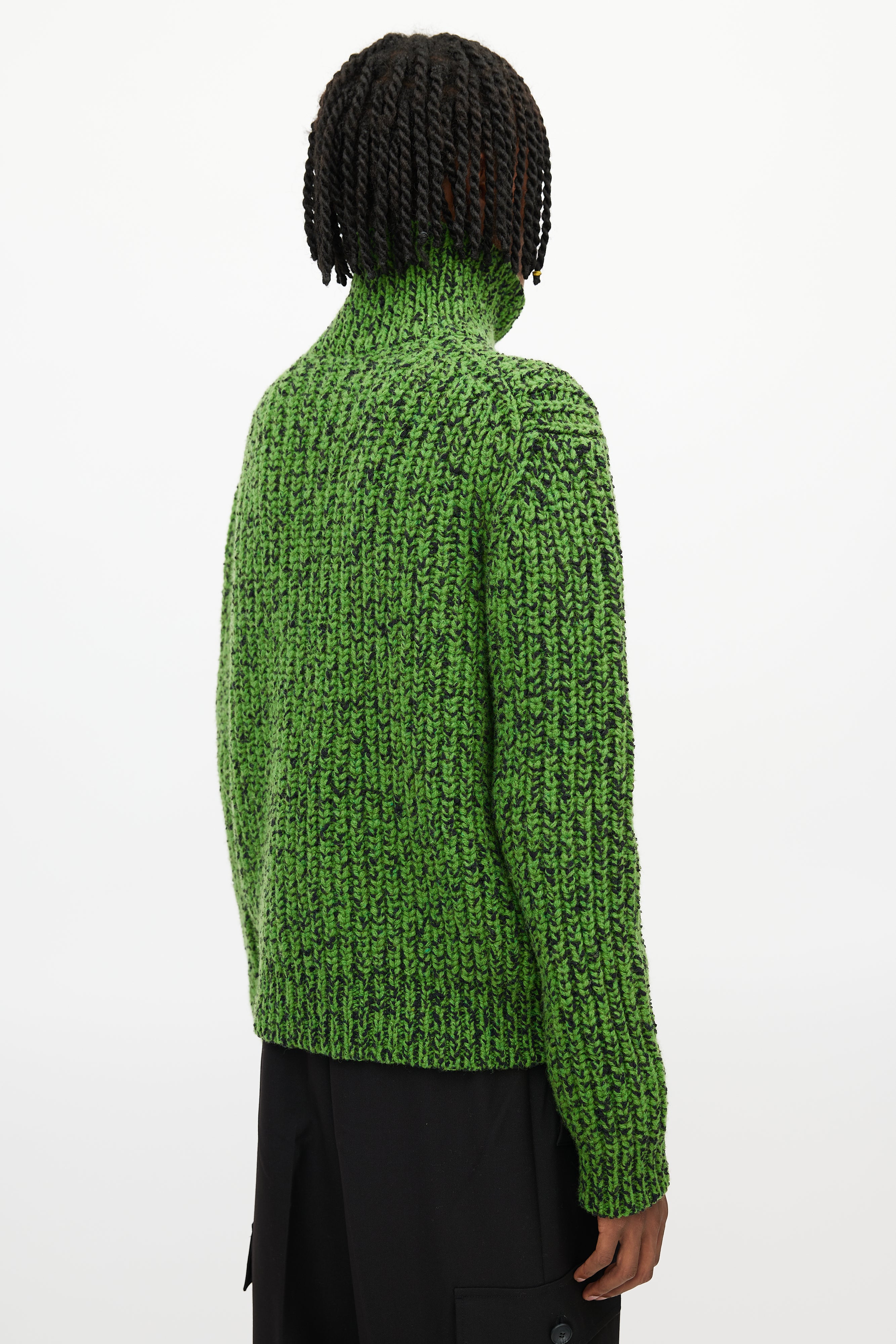 Pre-owned Calvin Klein 205W39NYC green and black sweater featuring turtleneck, tight ribbed knit, and long sleeves.