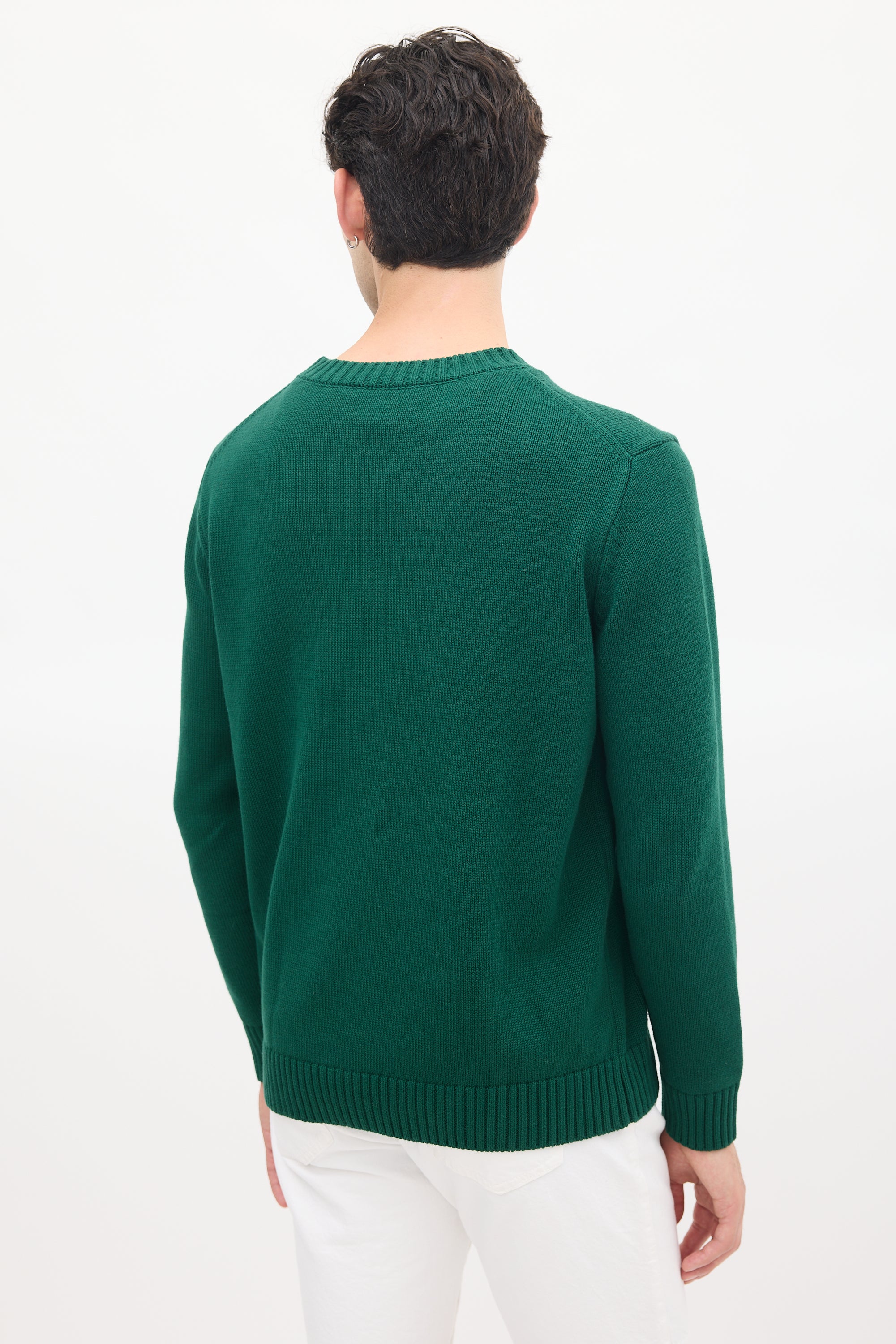 Green & Multicolour Cotton Knit Graphic Intarsia Sweater Medium Size Guide