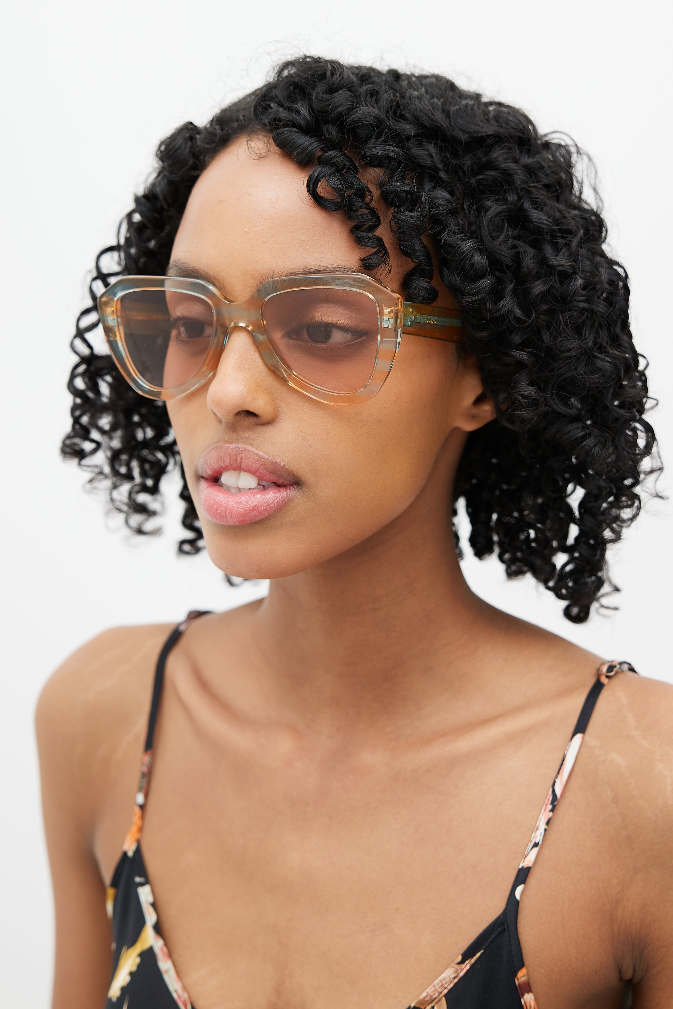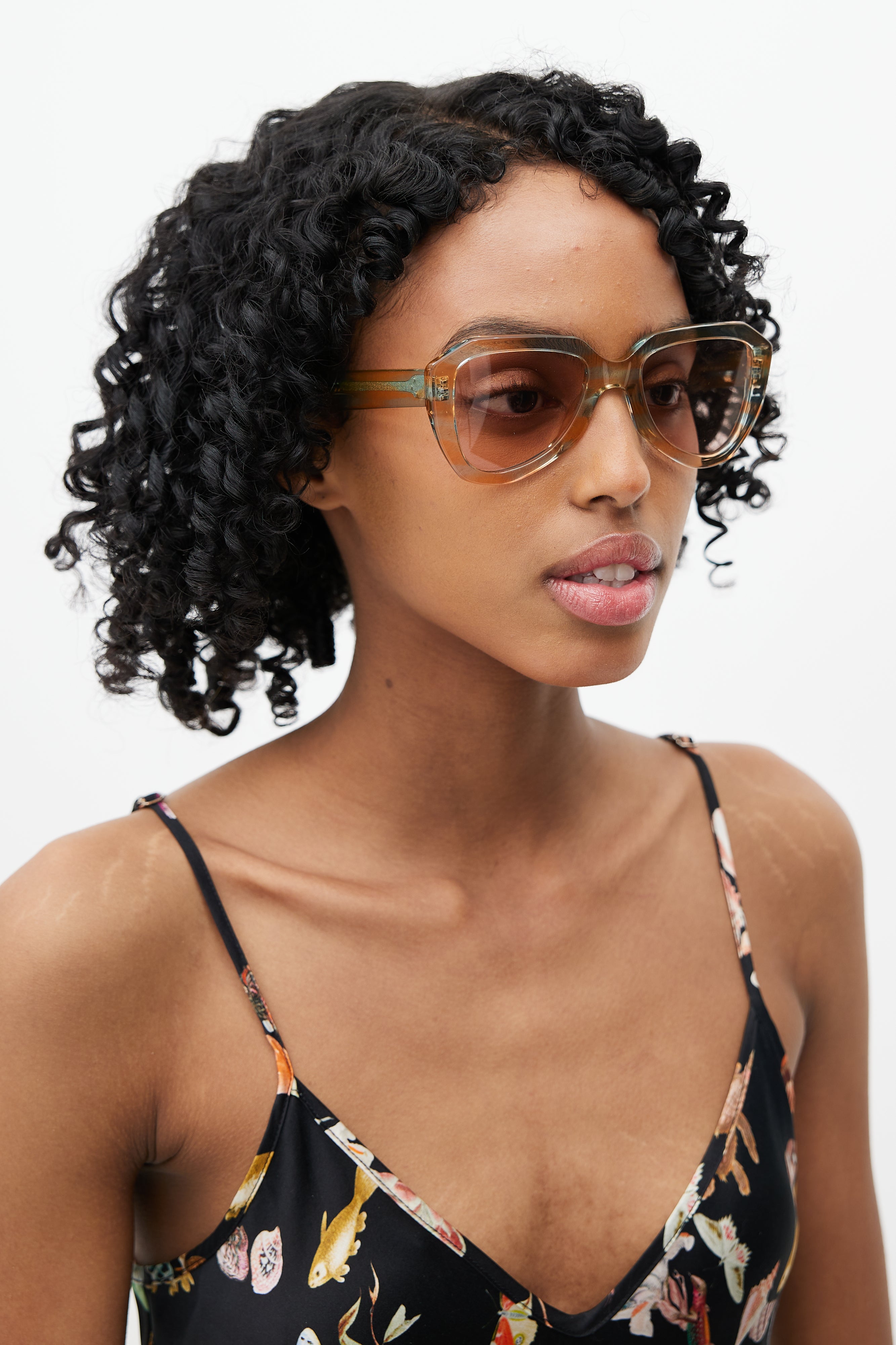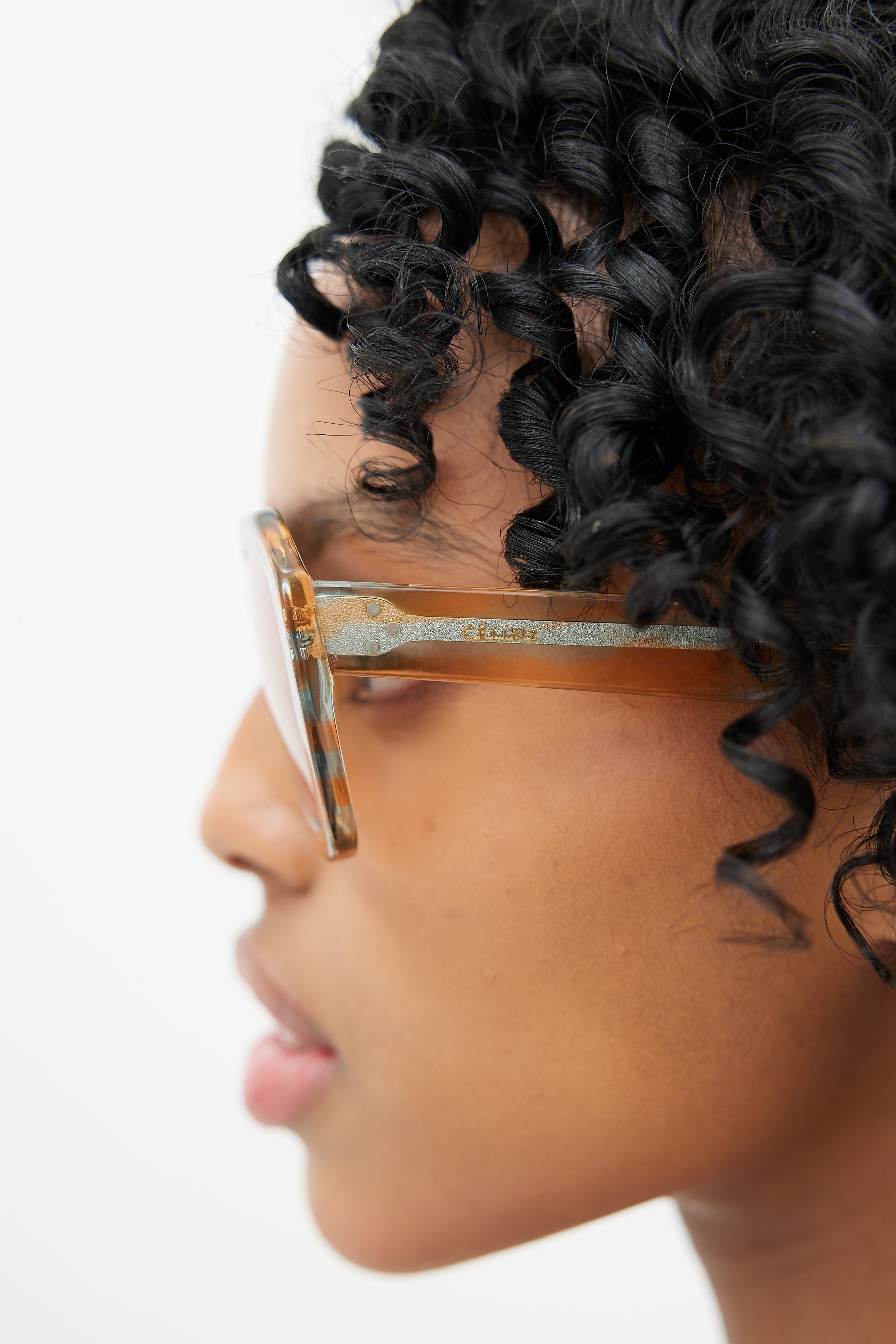 Pre-owned Celine pink CL40046U sunglasses featuring a blue striped pattern, tinted lenses, nose pads, and embossed logo at temple. Comes with original case.