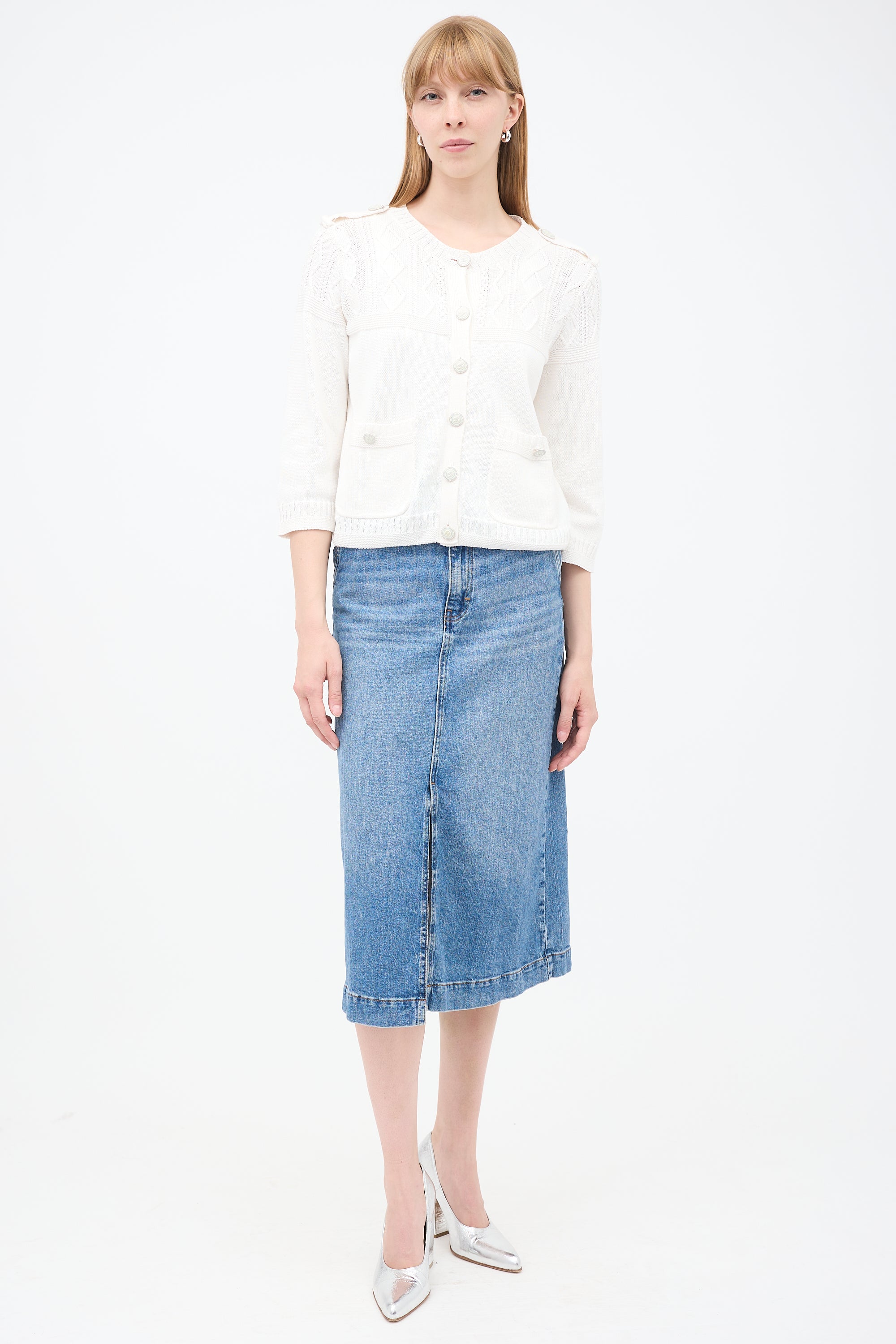 White Cotton Knit CC Button Cardigan FR 38 Size Guide