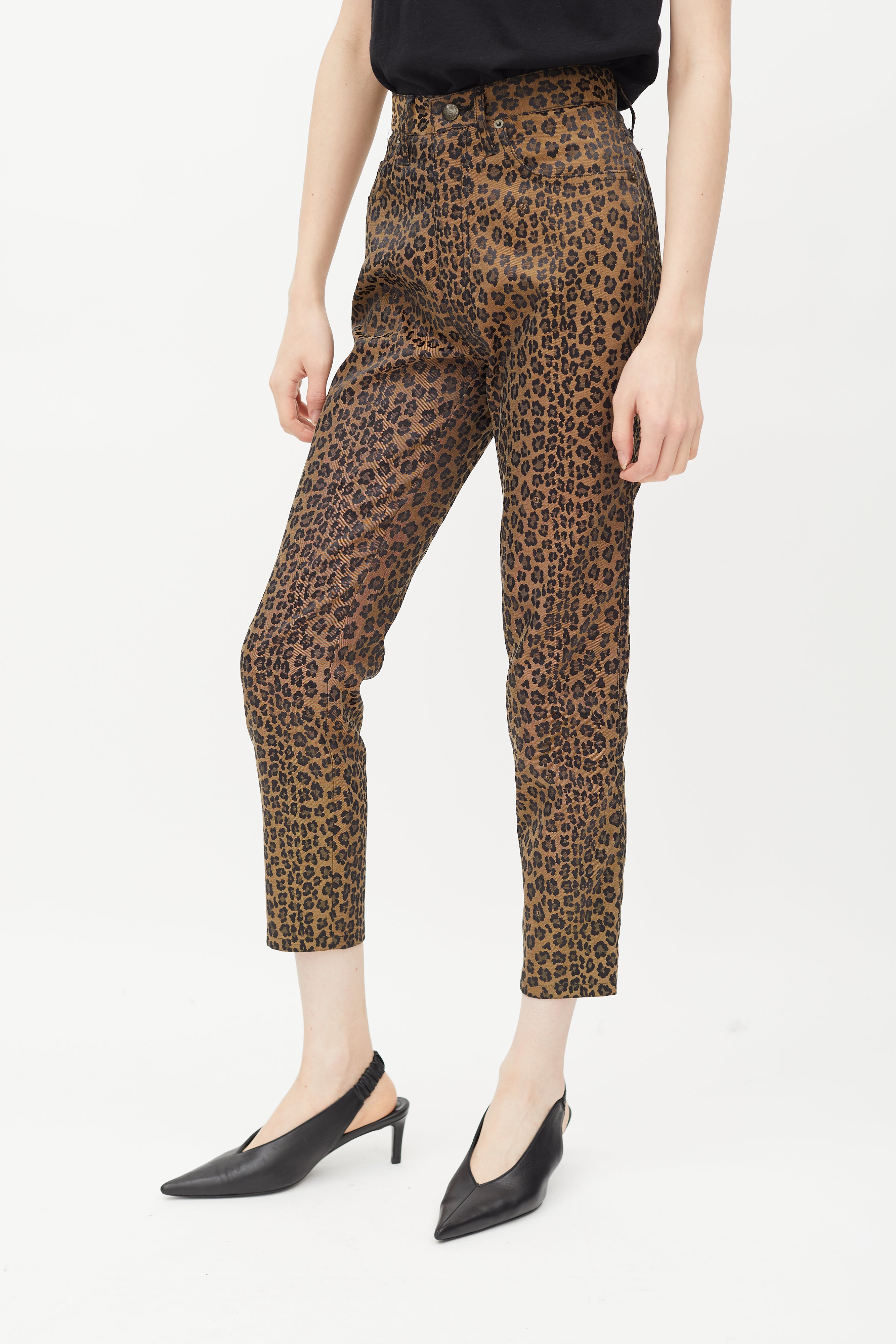 Pre-owned vintage Fendi brown jeans featuring leopard print with Zucca monogram throughout, high rise, belt loops, zip fly, and five pocket styling.