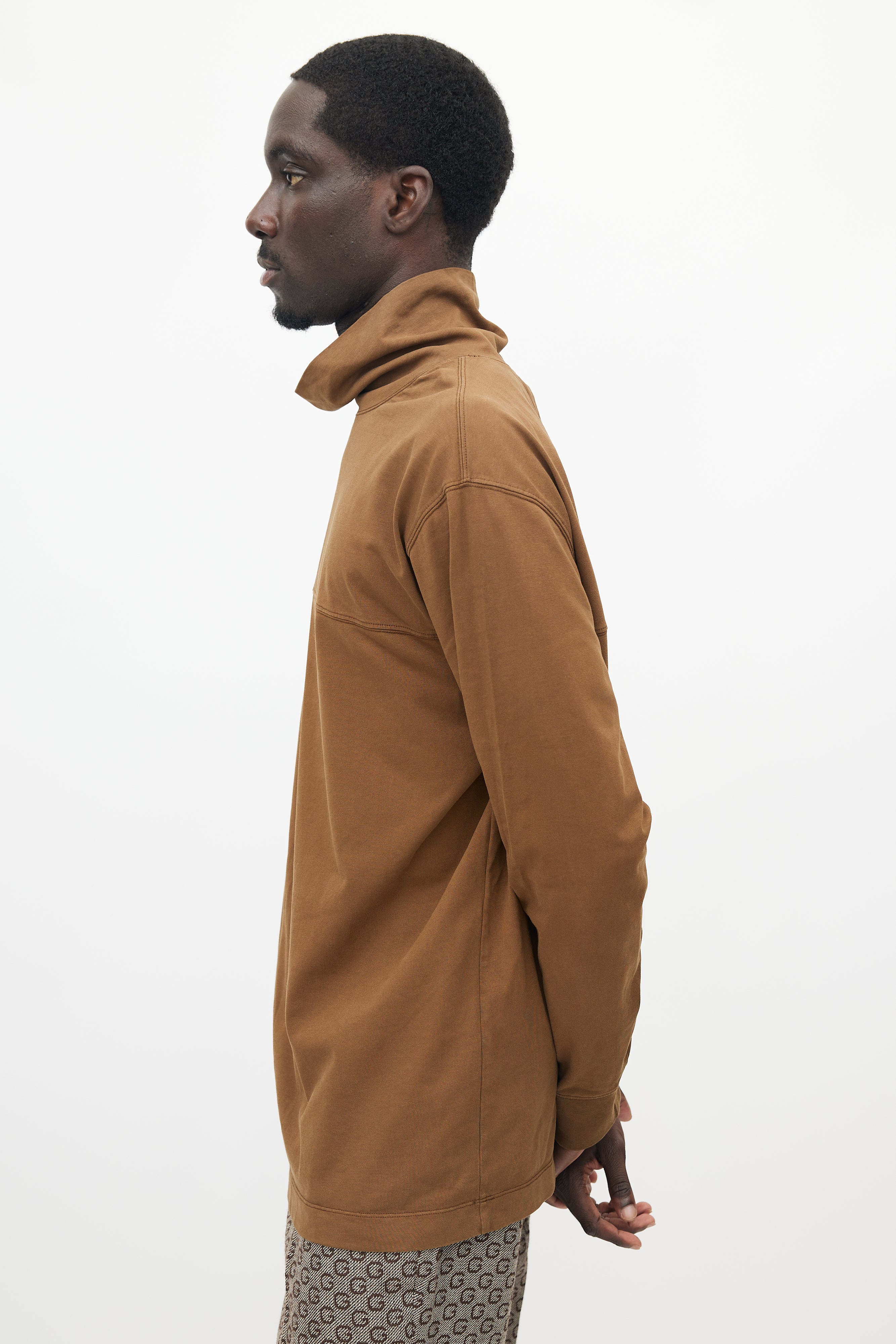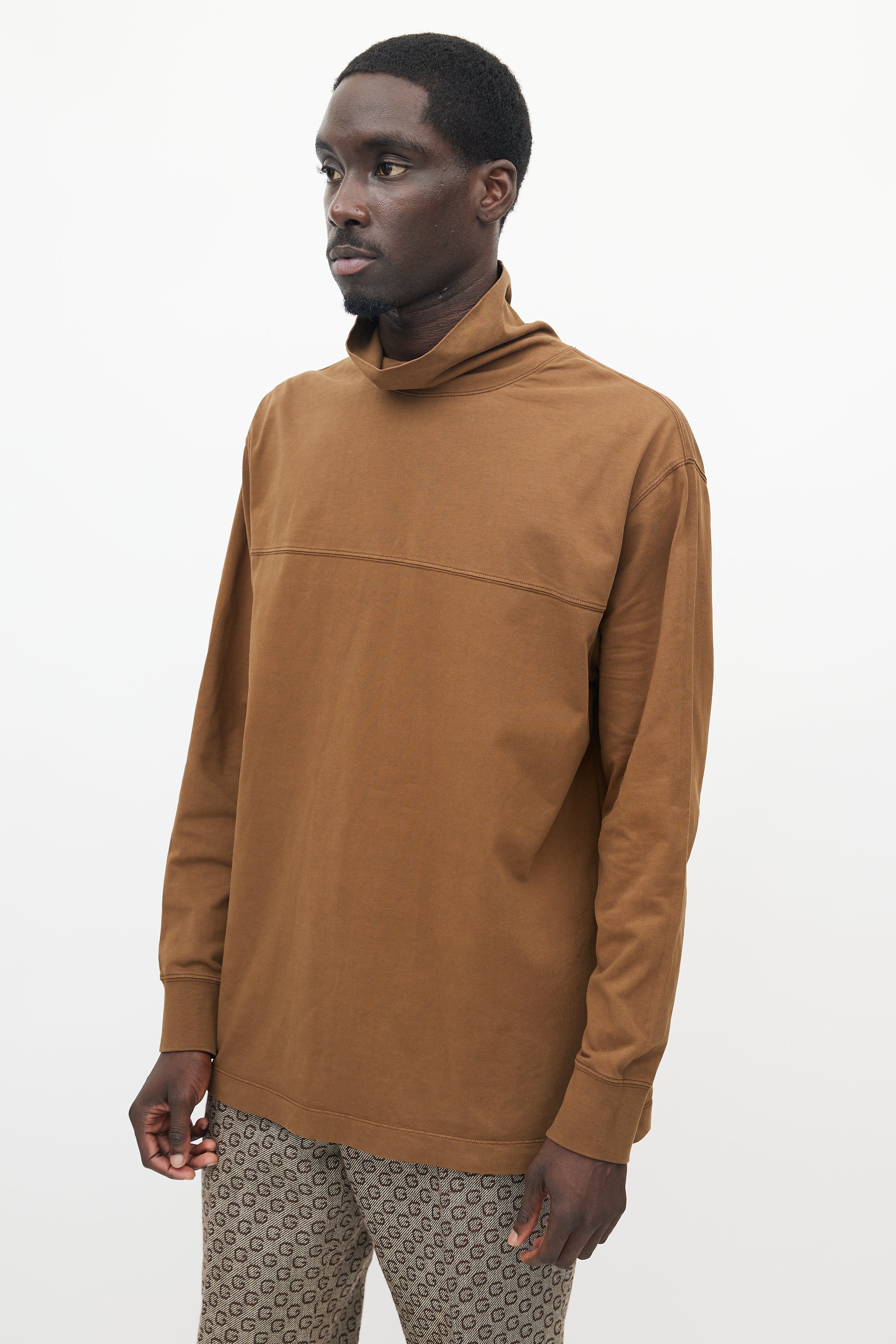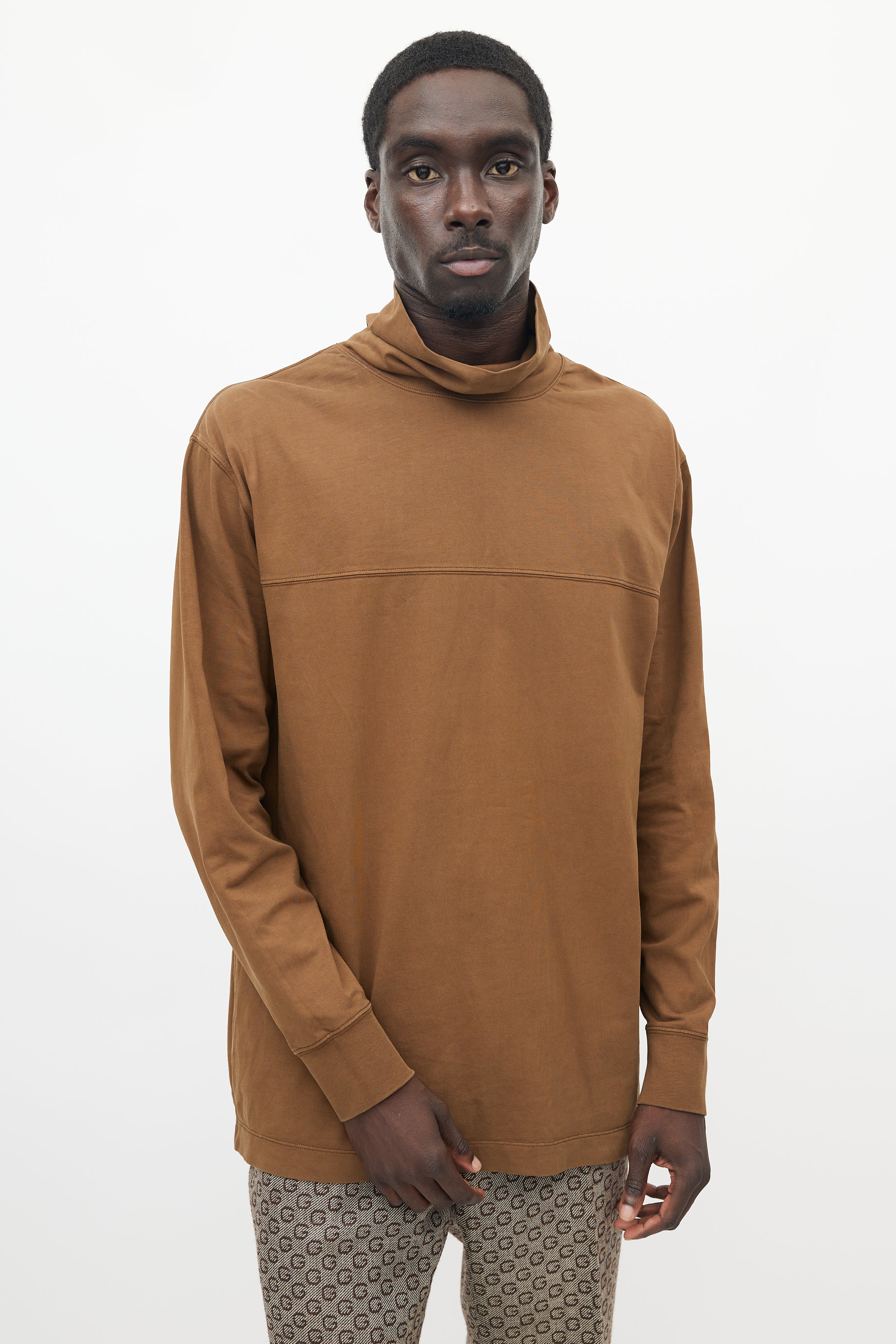 Pre-owned Lemaire brown top featuring a turtleneck, panelled seam at front, and ribbed cuffs.