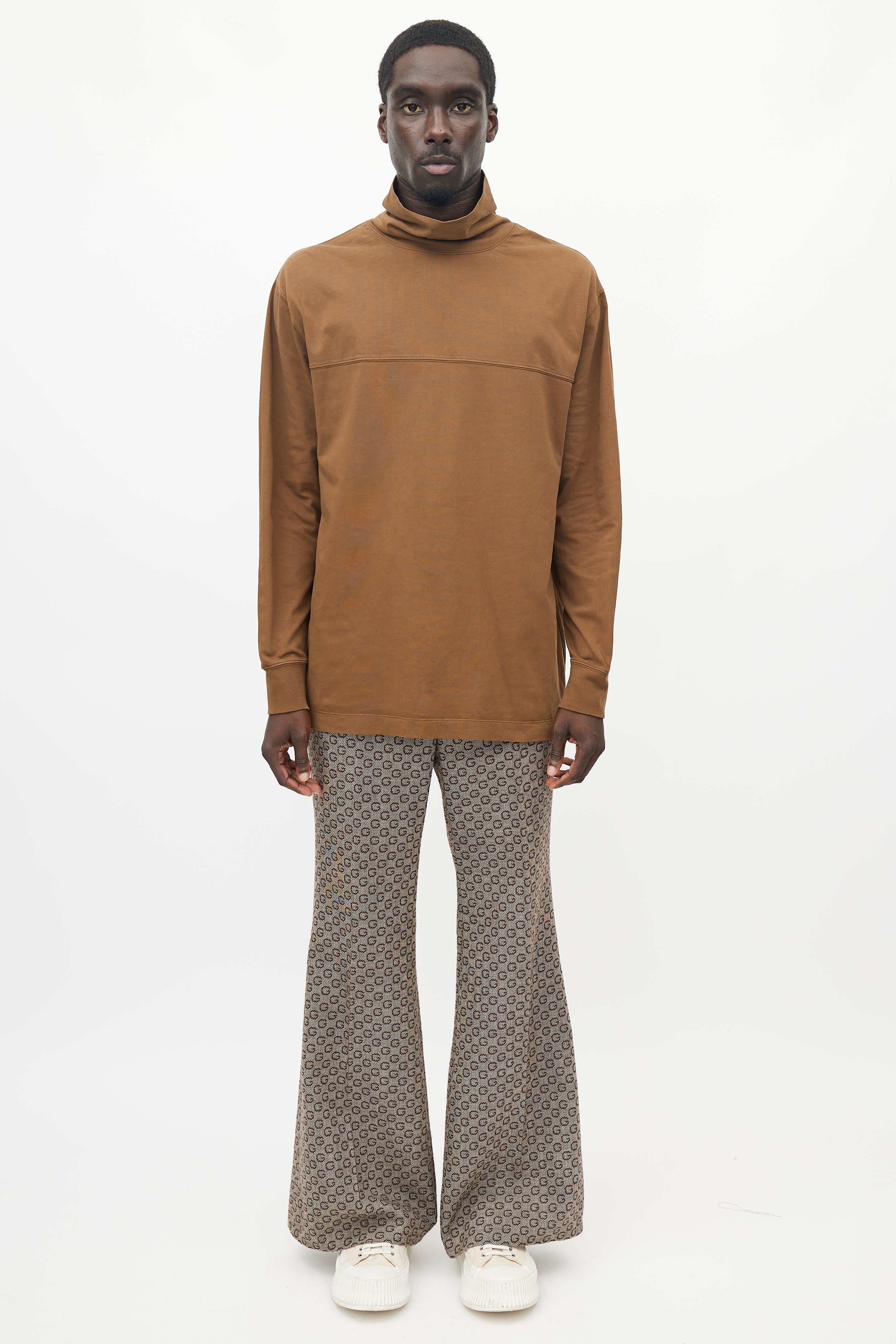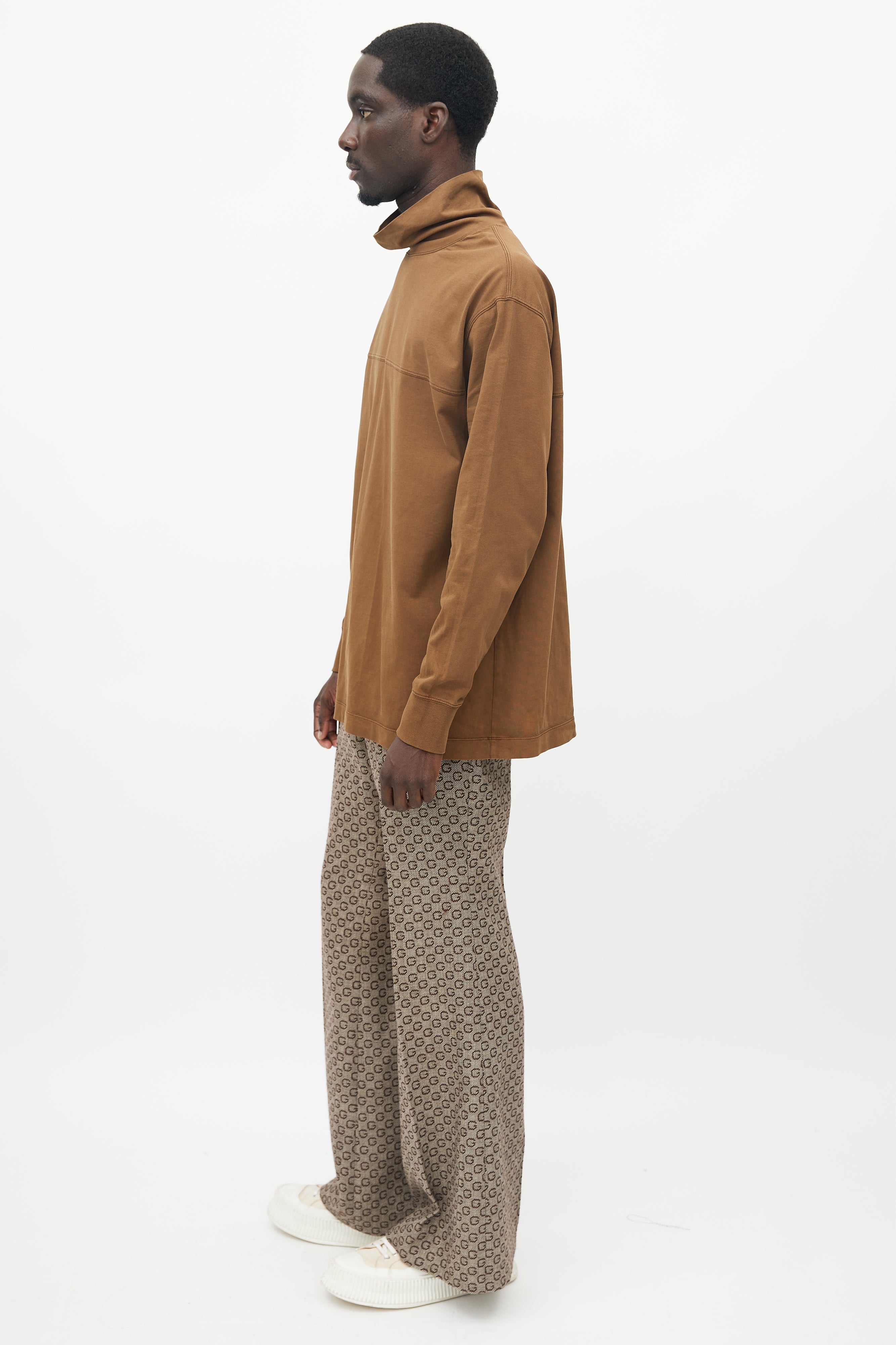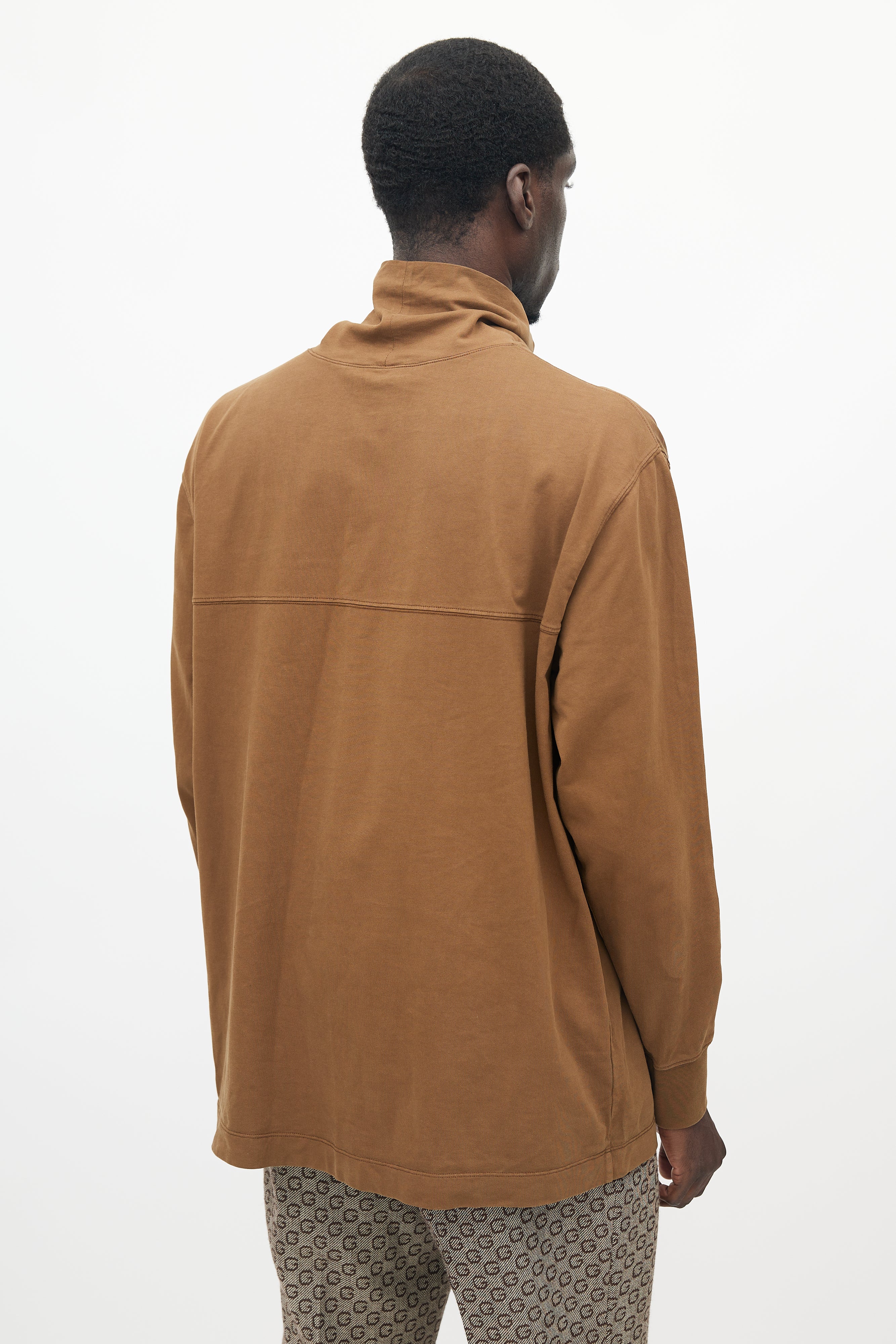 Pre-owned Lemaire brown top featuring a turtleneck, panelled seam at front, and ribbed cuffs.
