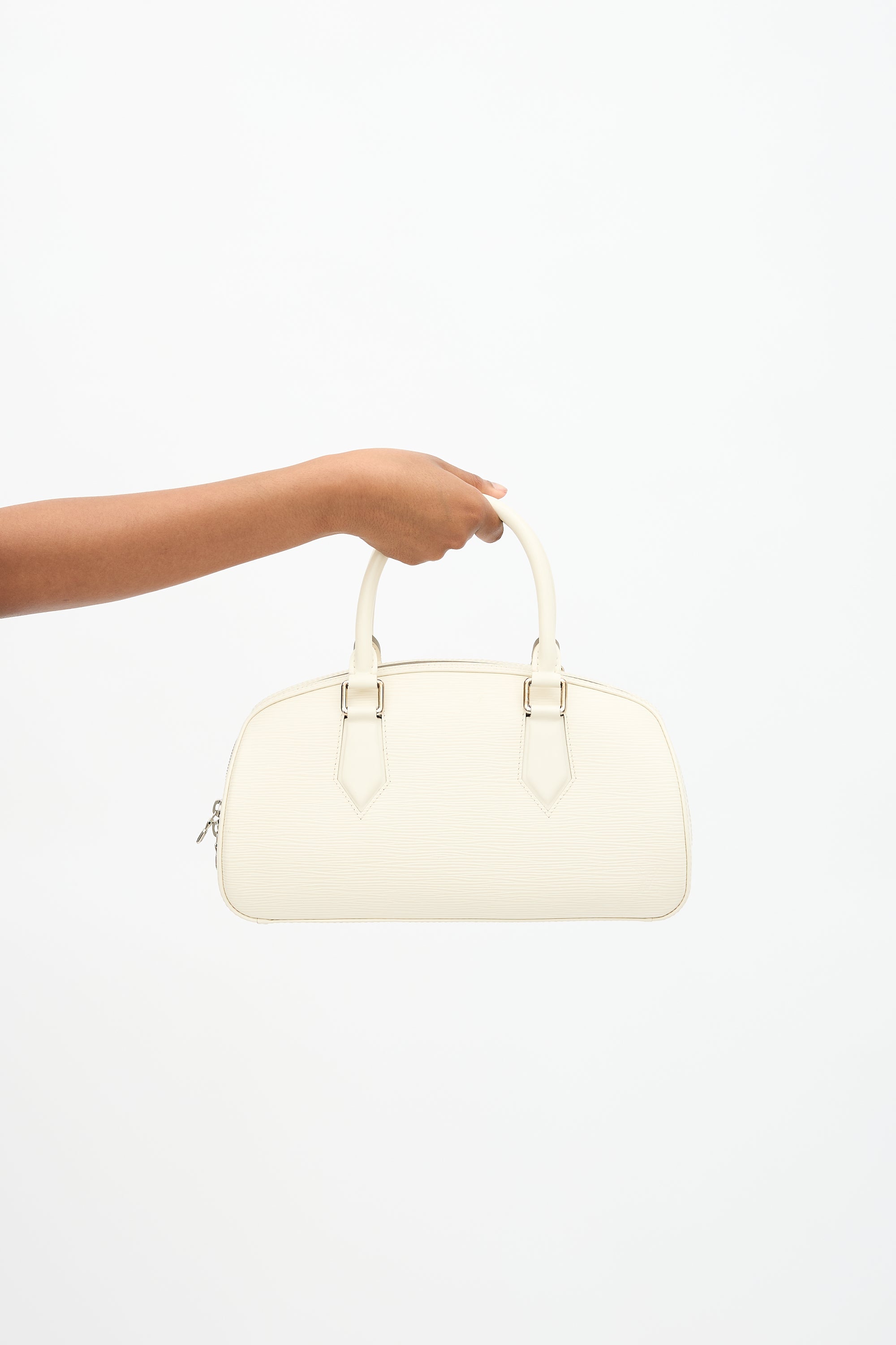 Pre-owned Louis Vuitton 2006 cream Epi leather Jasmin bag featuring tonal stitching, silver tone hardware, dual rolled top handles, two way top zip closure, and one lined main compartment with one slip pocket.