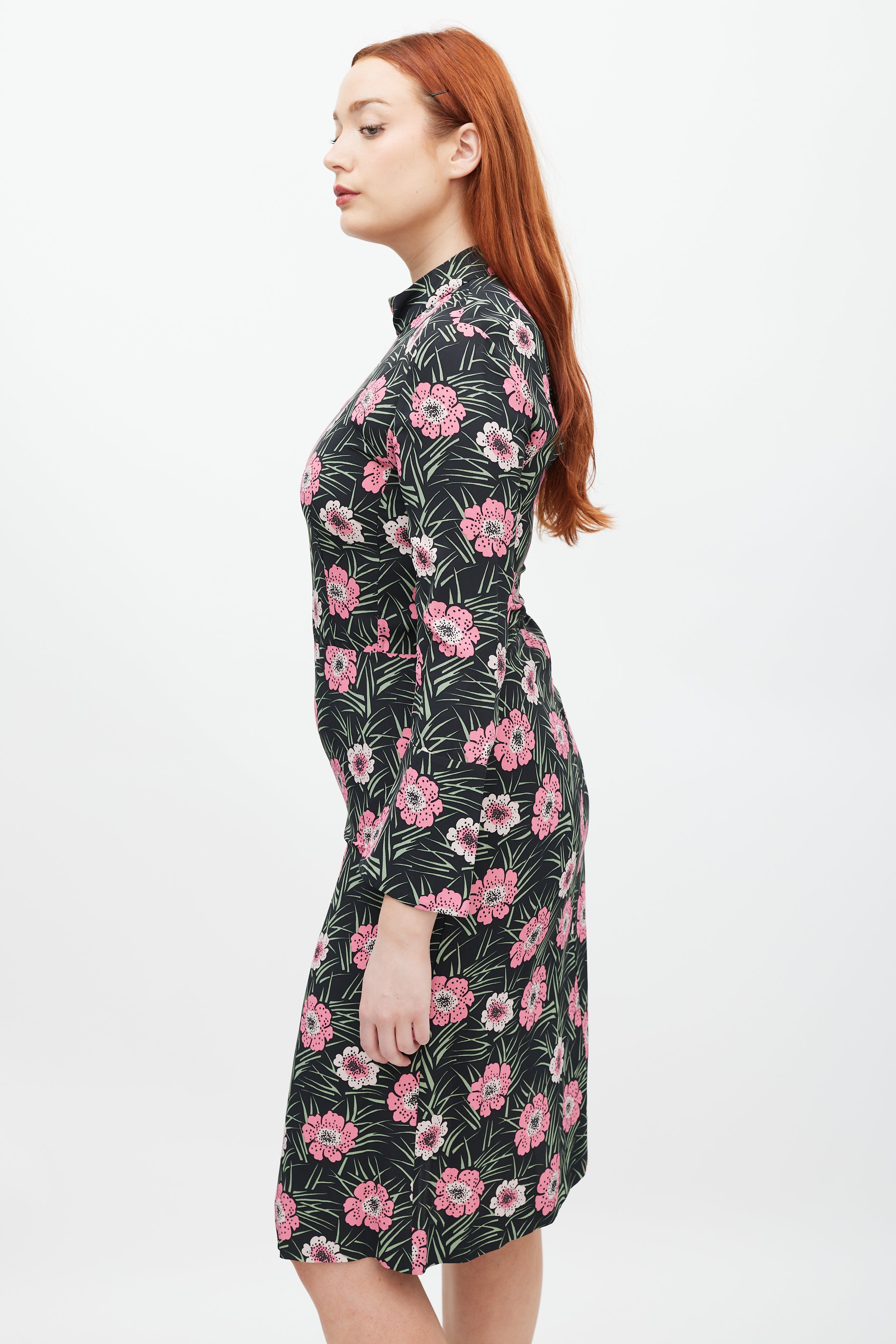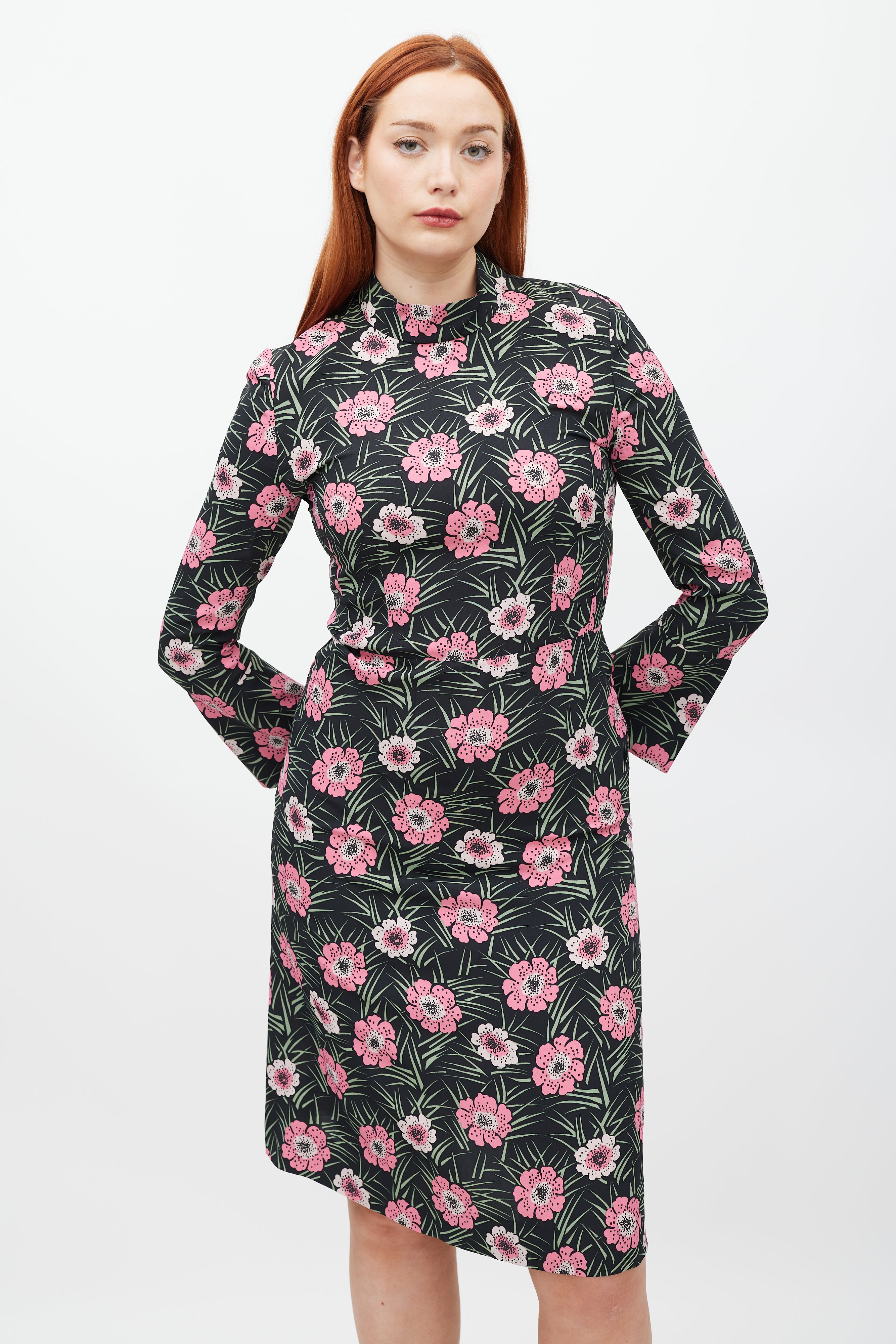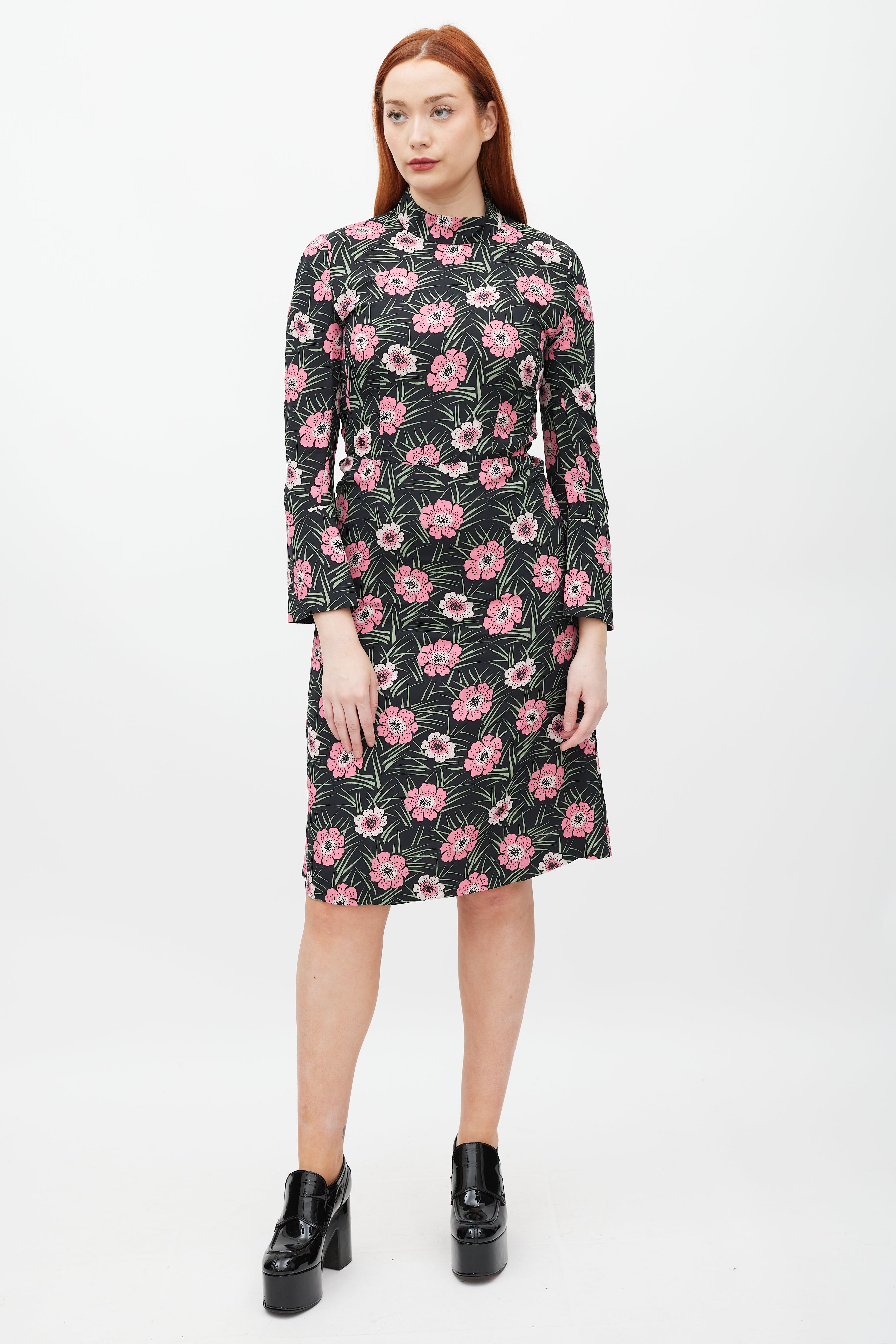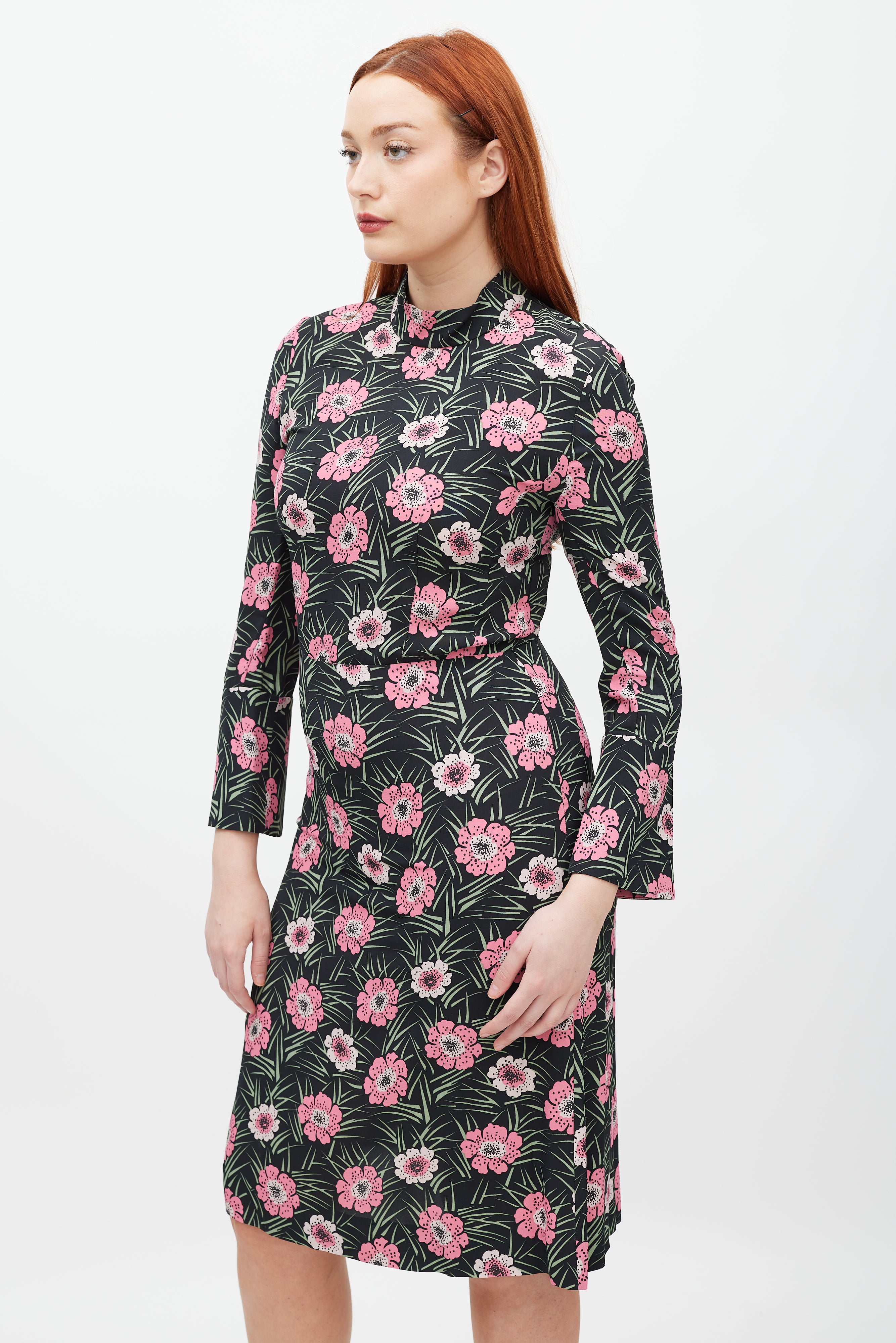 Pre-owned Marni black dress featuring a multicolour floral pattern throughout, round neckline, long flared sleeves, and zip closure at back.