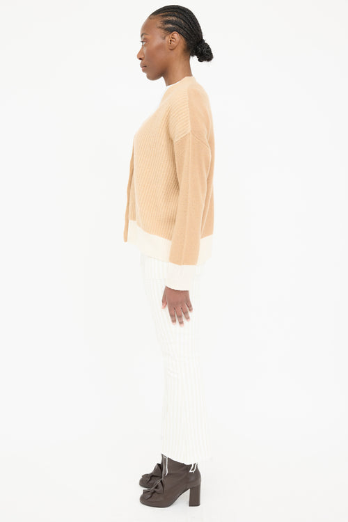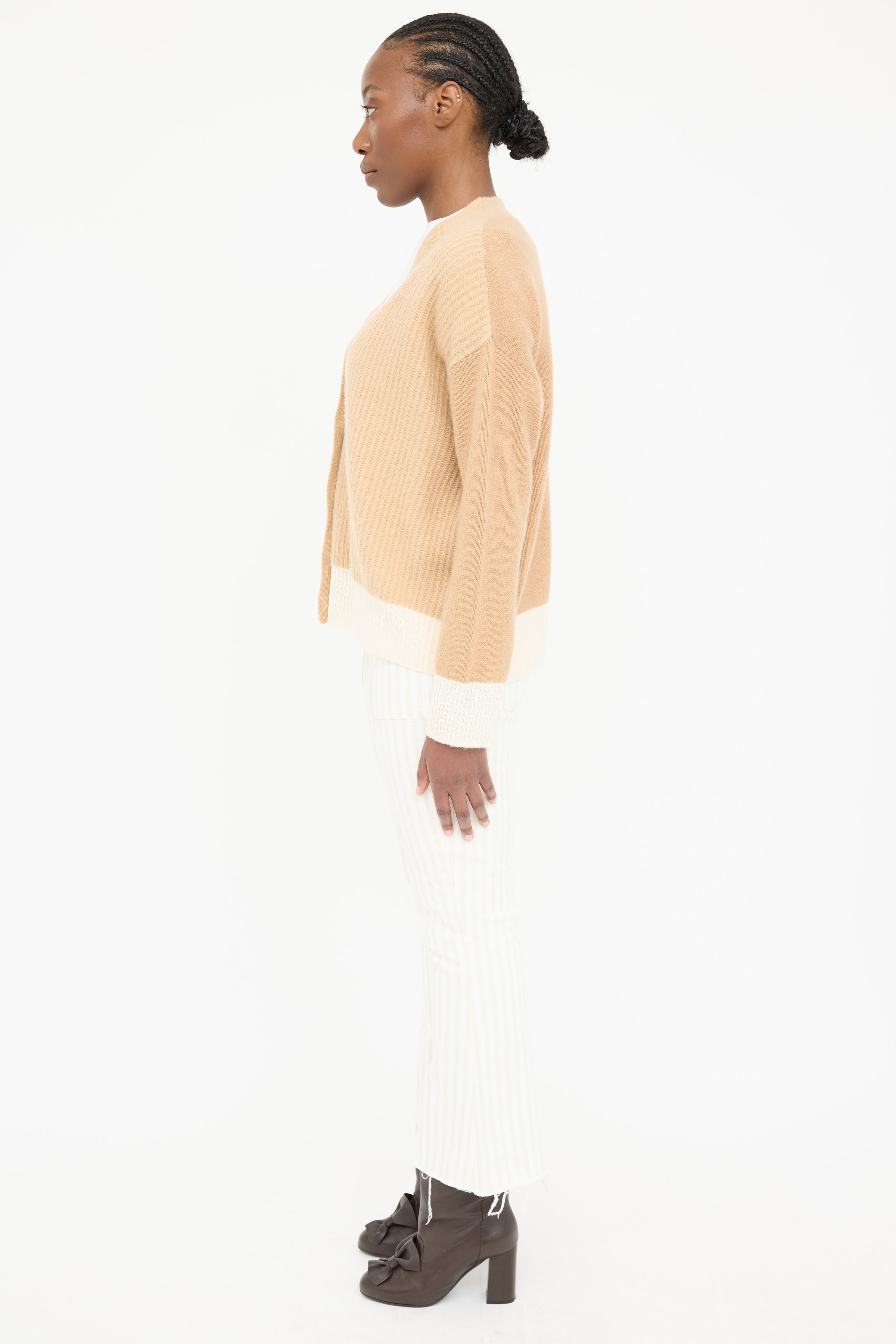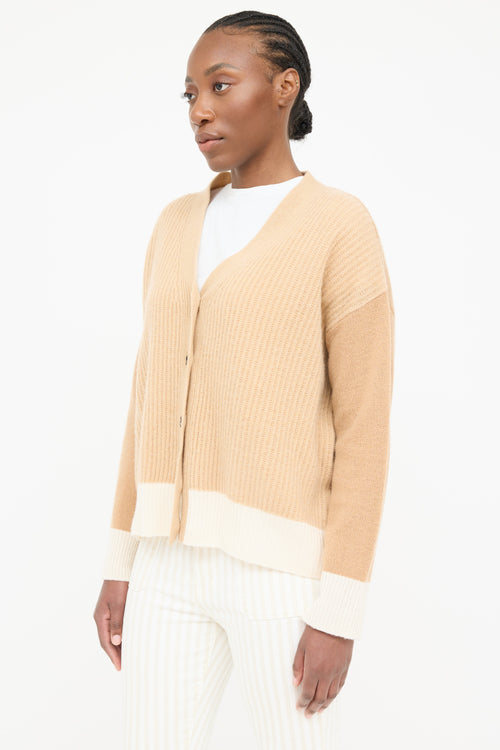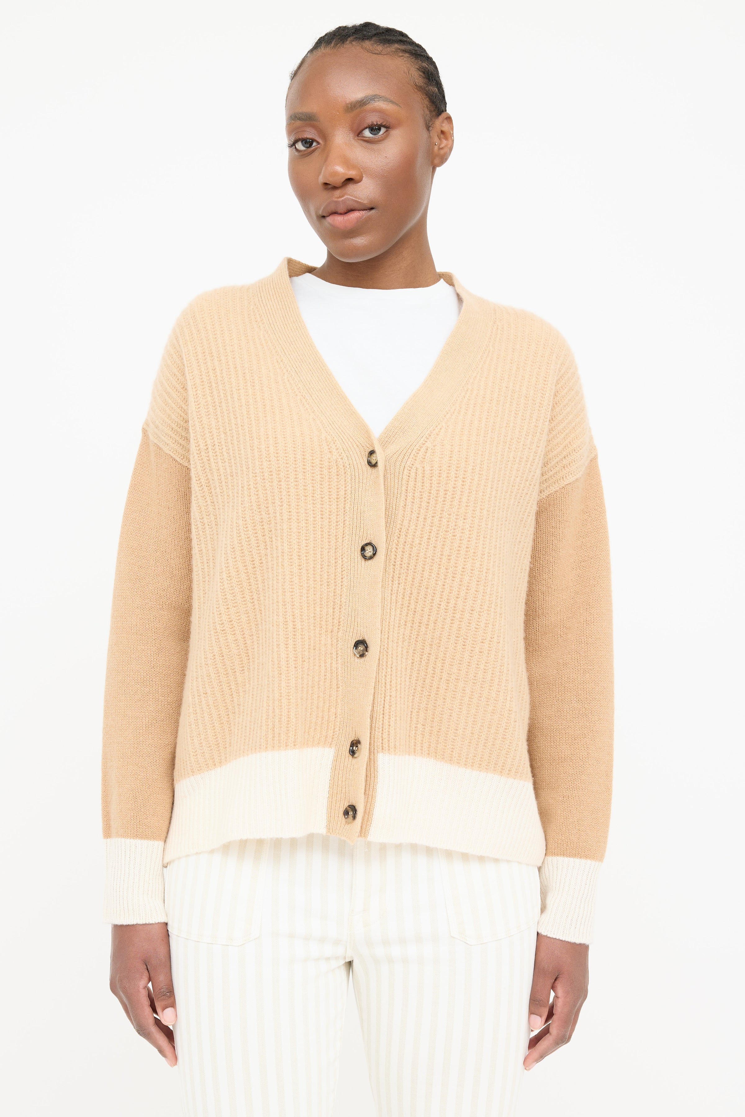 Pre-owned Marni beige cashmere cardigan featuring V neck, button closure, cream hem, long sleeves and embroidered logo at back.
