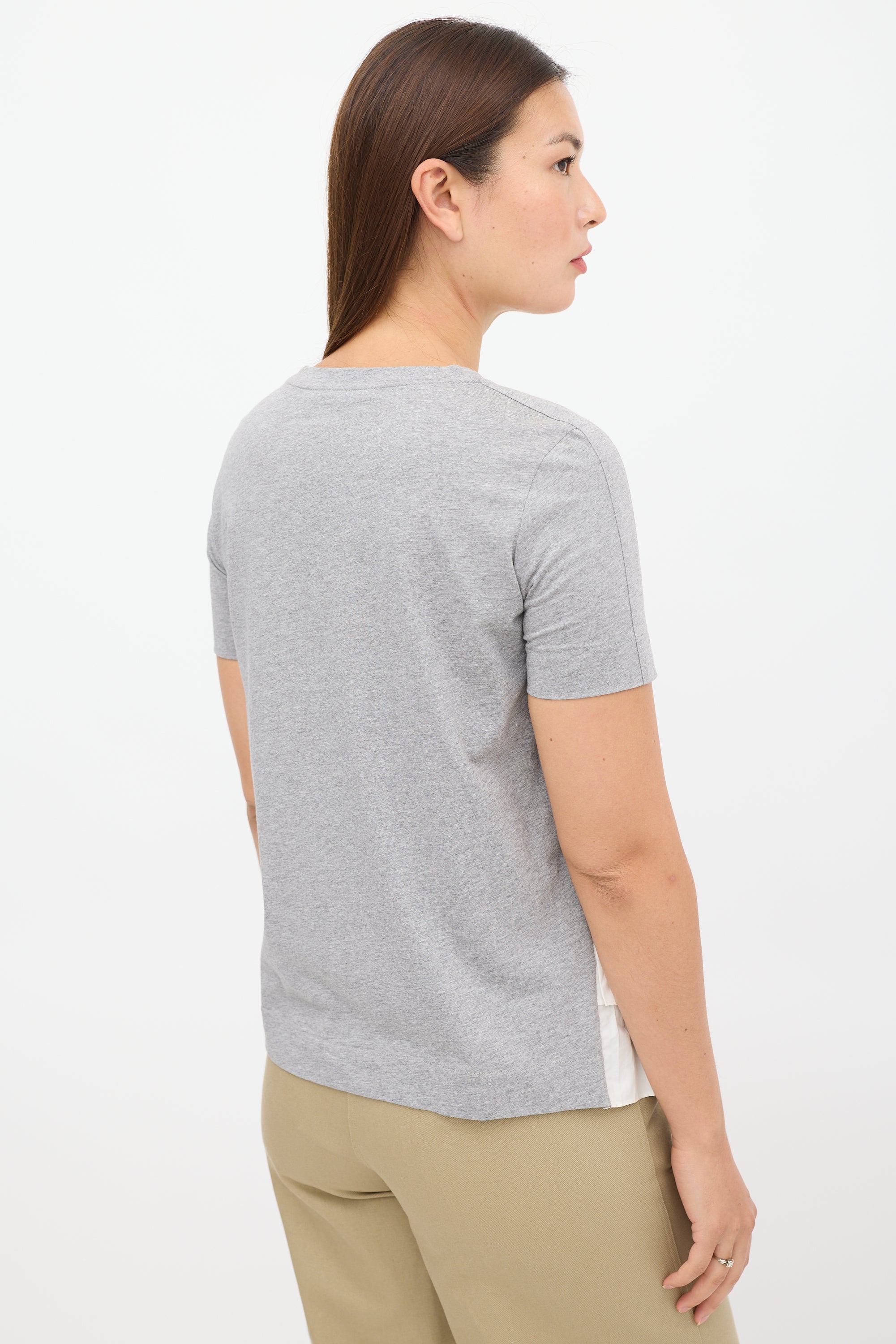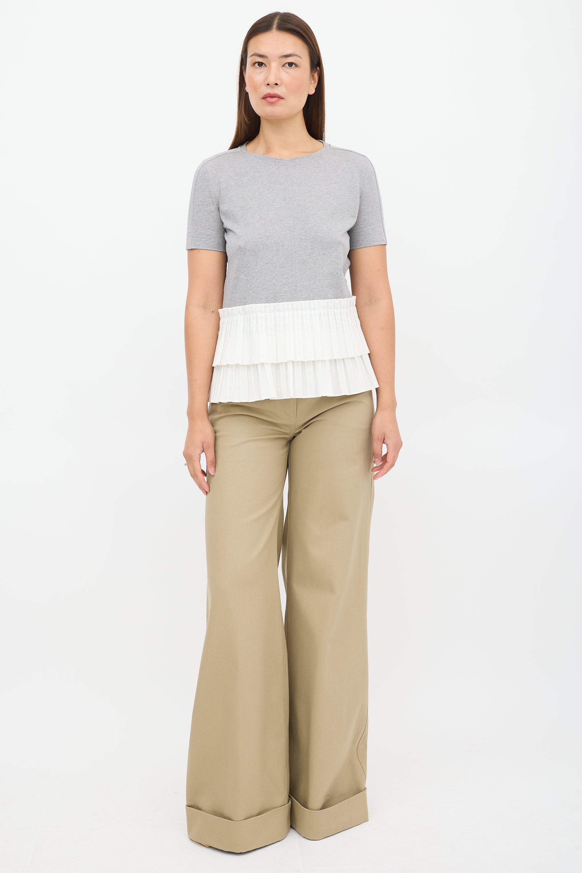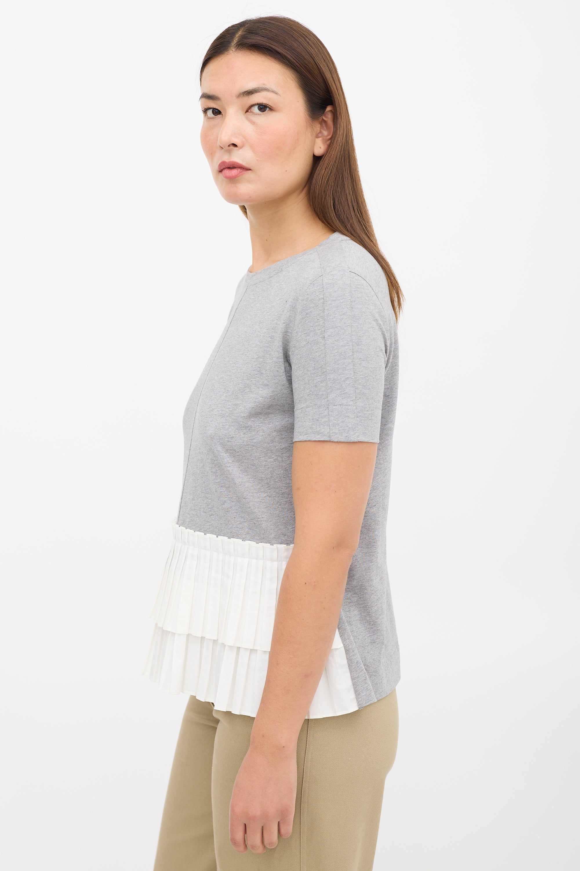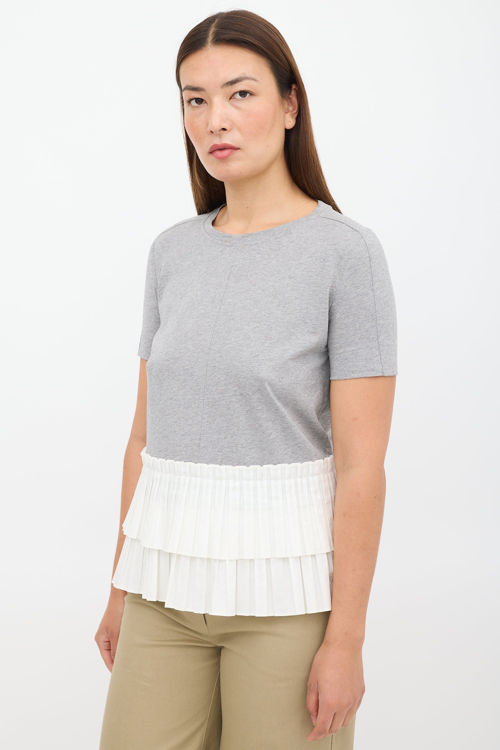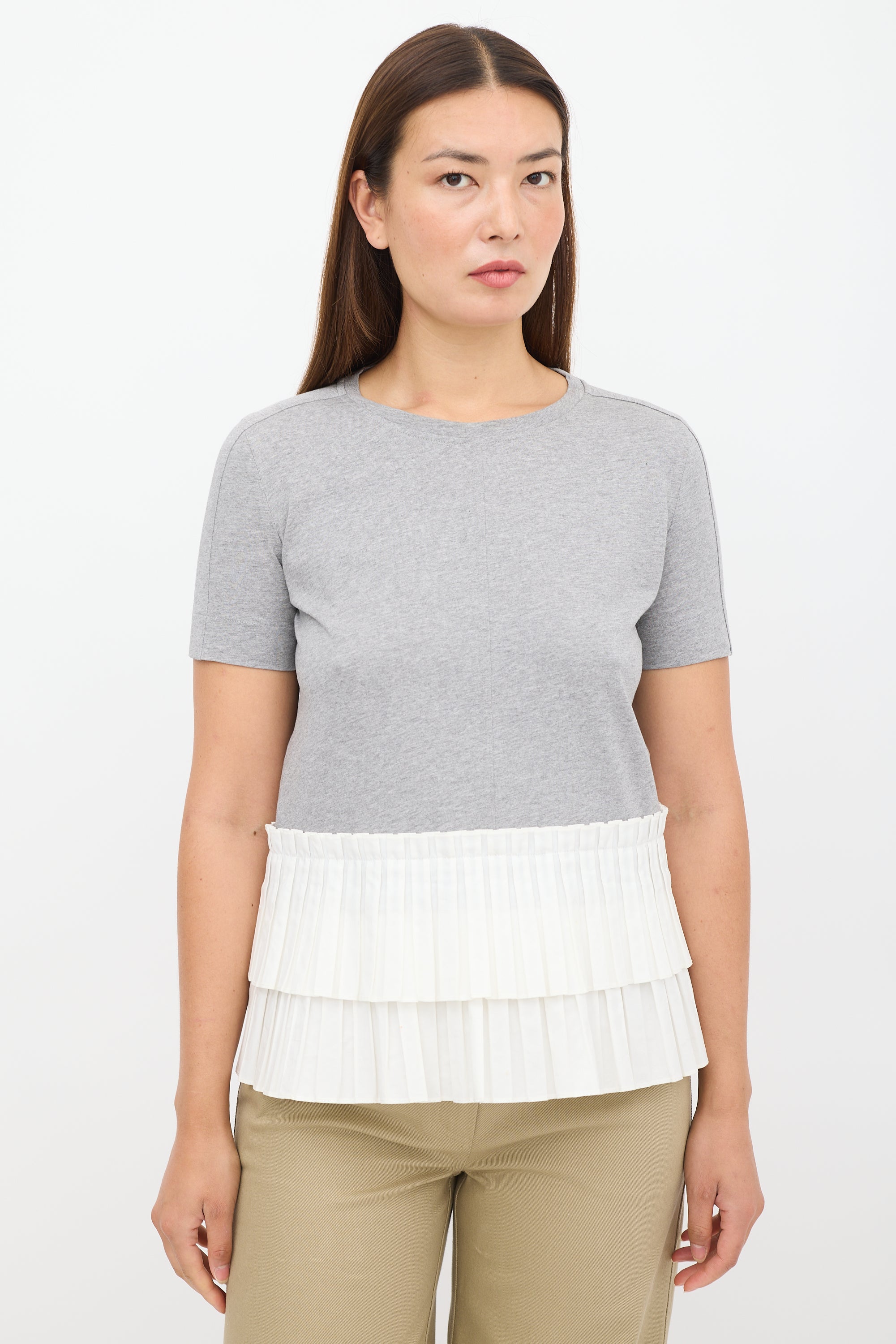Pre-owned Marni grey T-shirt featuring a round neckline, short sleeves, centre seam, and white pleated trim at hem.