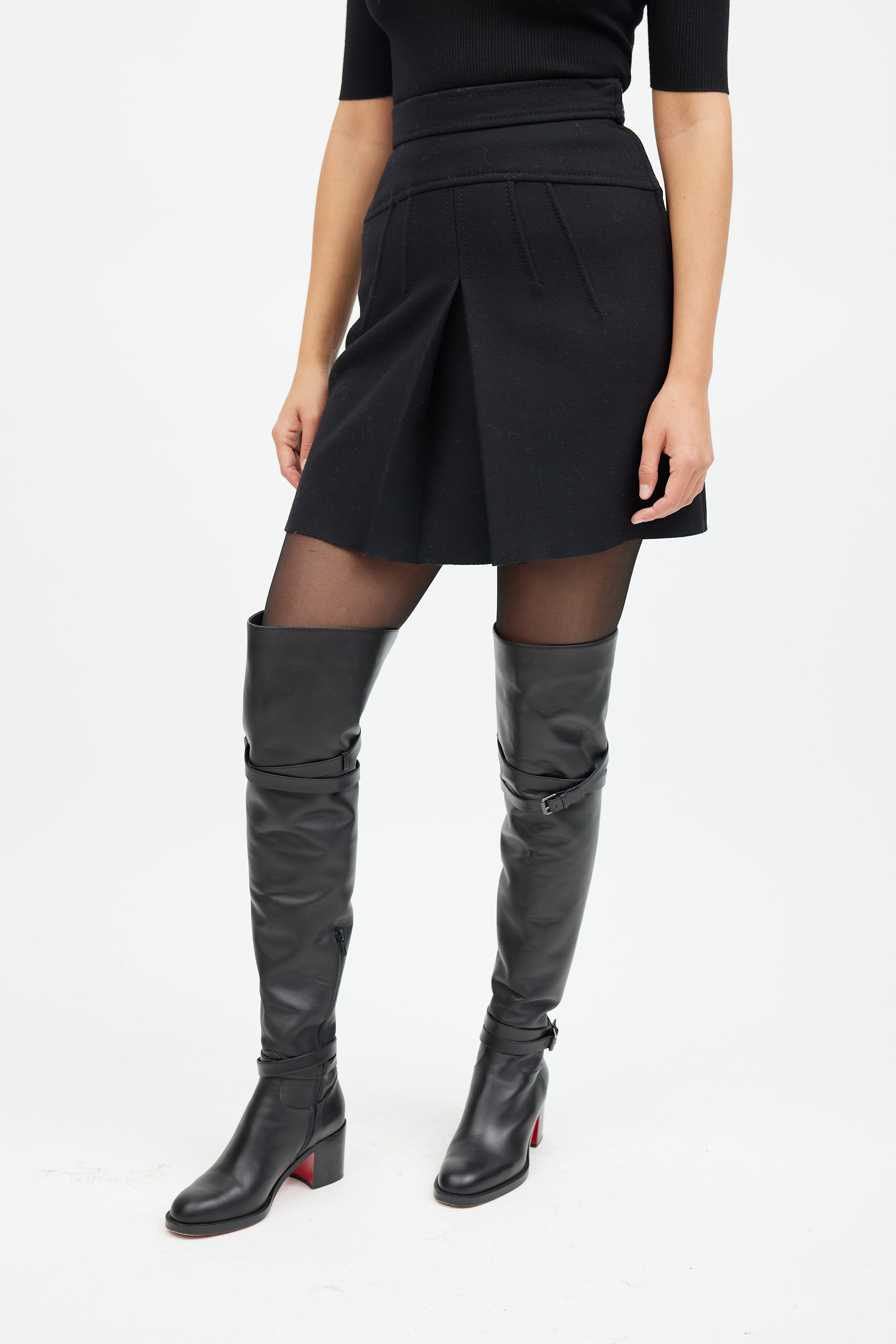Black Pleated Wool Mini Skirt IT 38 Size Guide