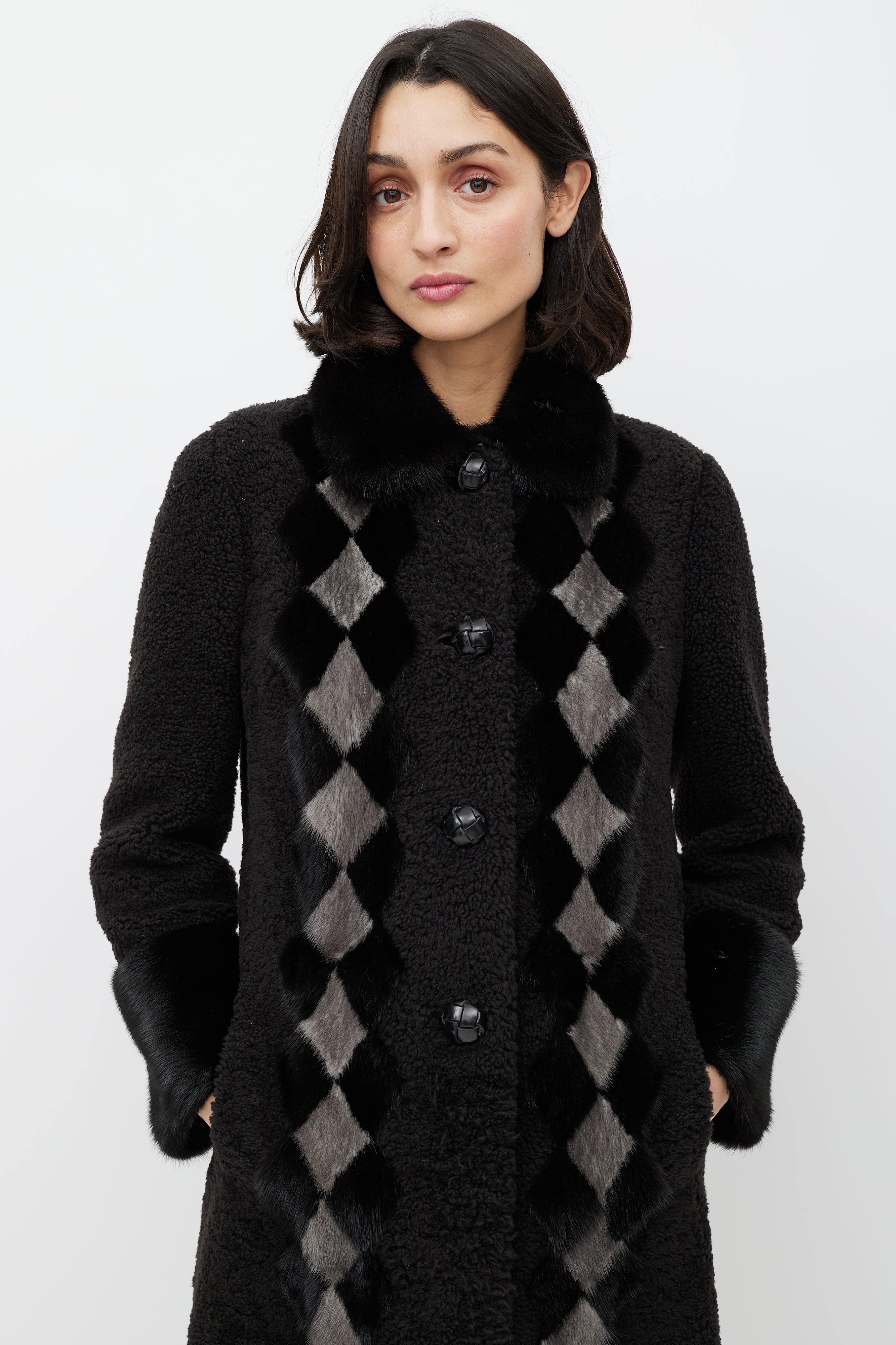 Brown & Cream Shearling Fur Diamond Coat IT 42 Size Guide