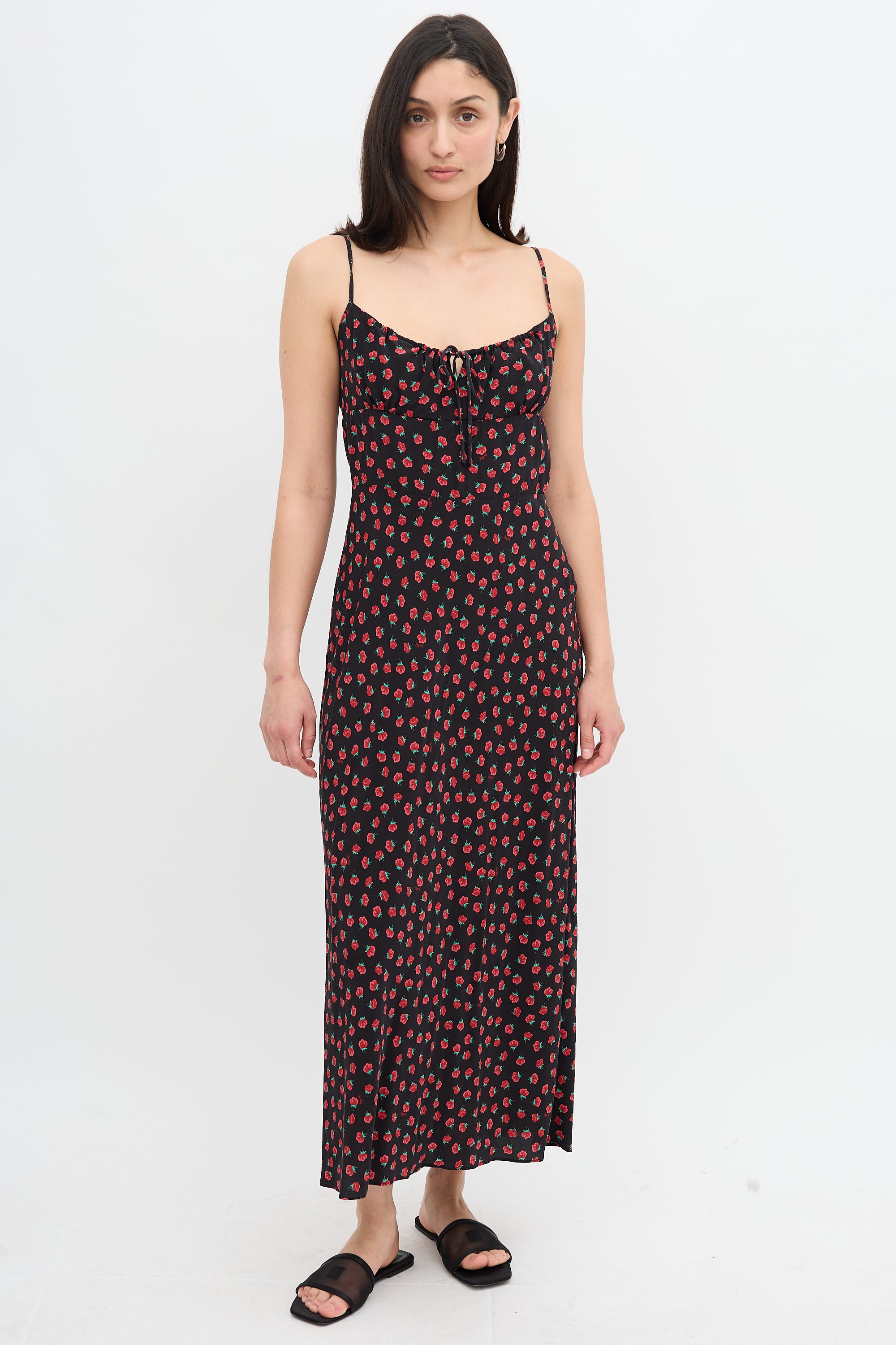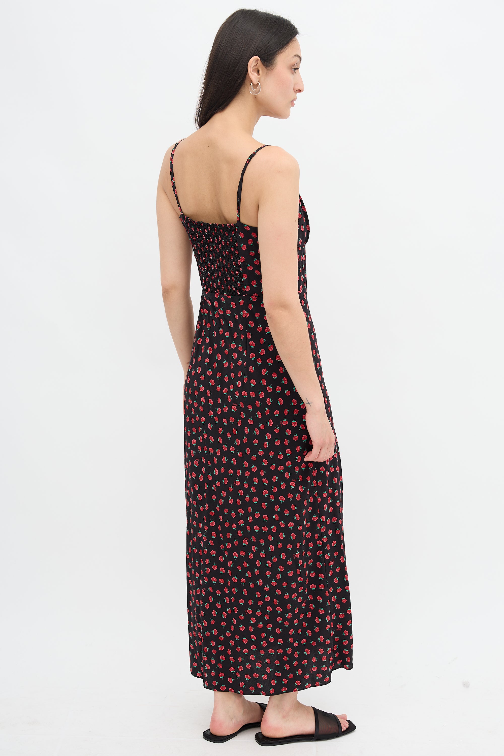 Pre-owned Réalisation Par Alba midi dress featuring Rosalita print, adjustable straps, tie front, smocked back, and concealed side zip.