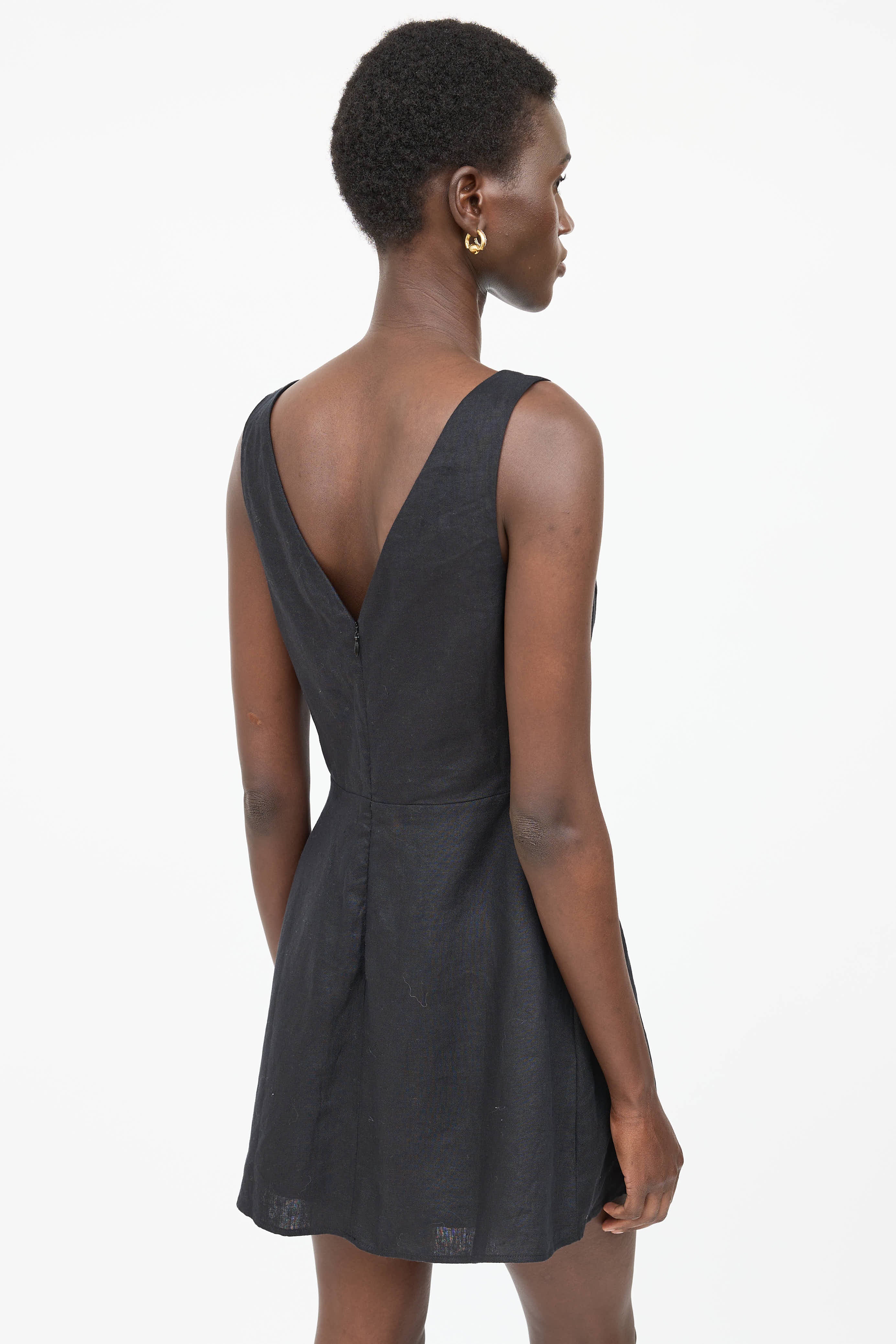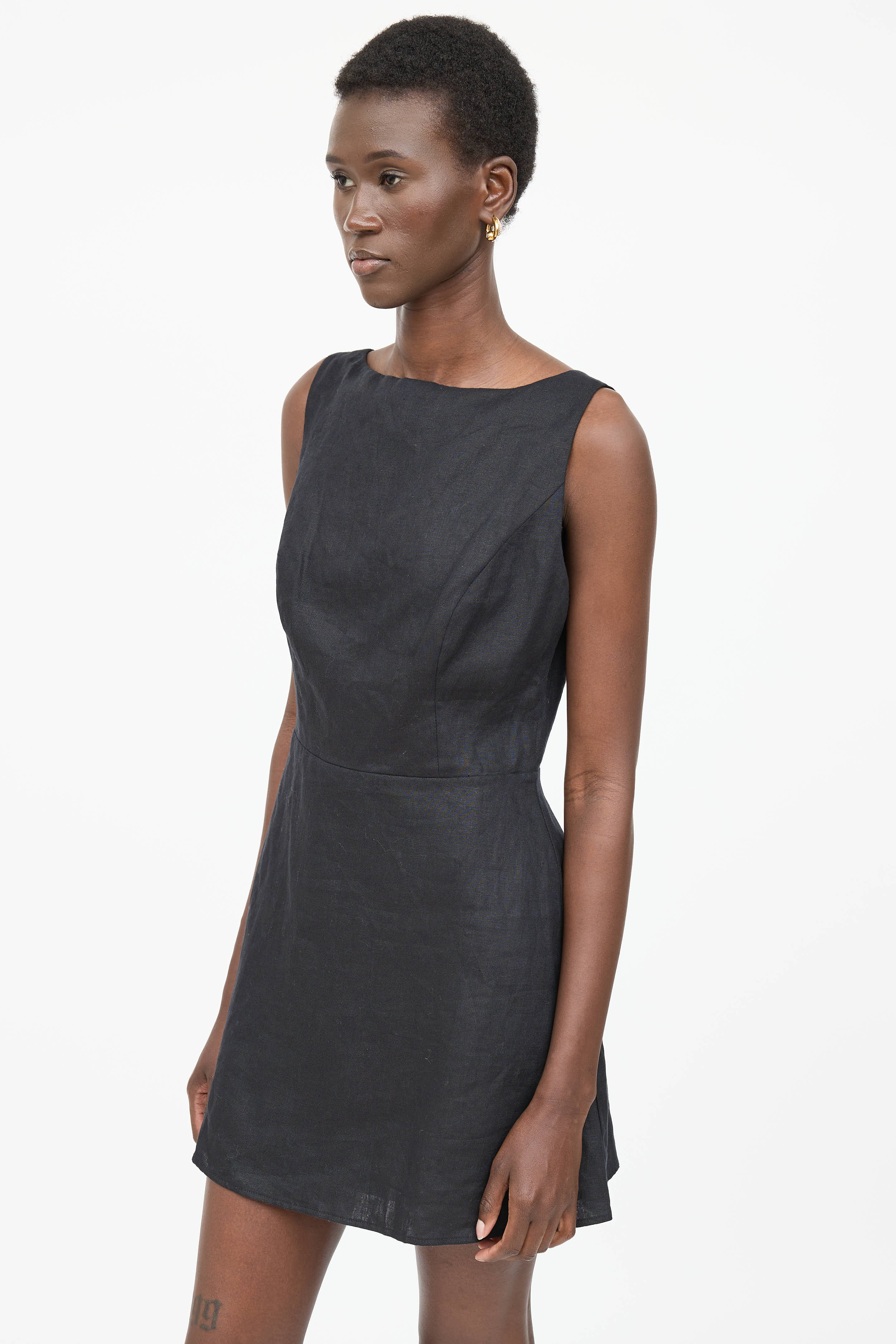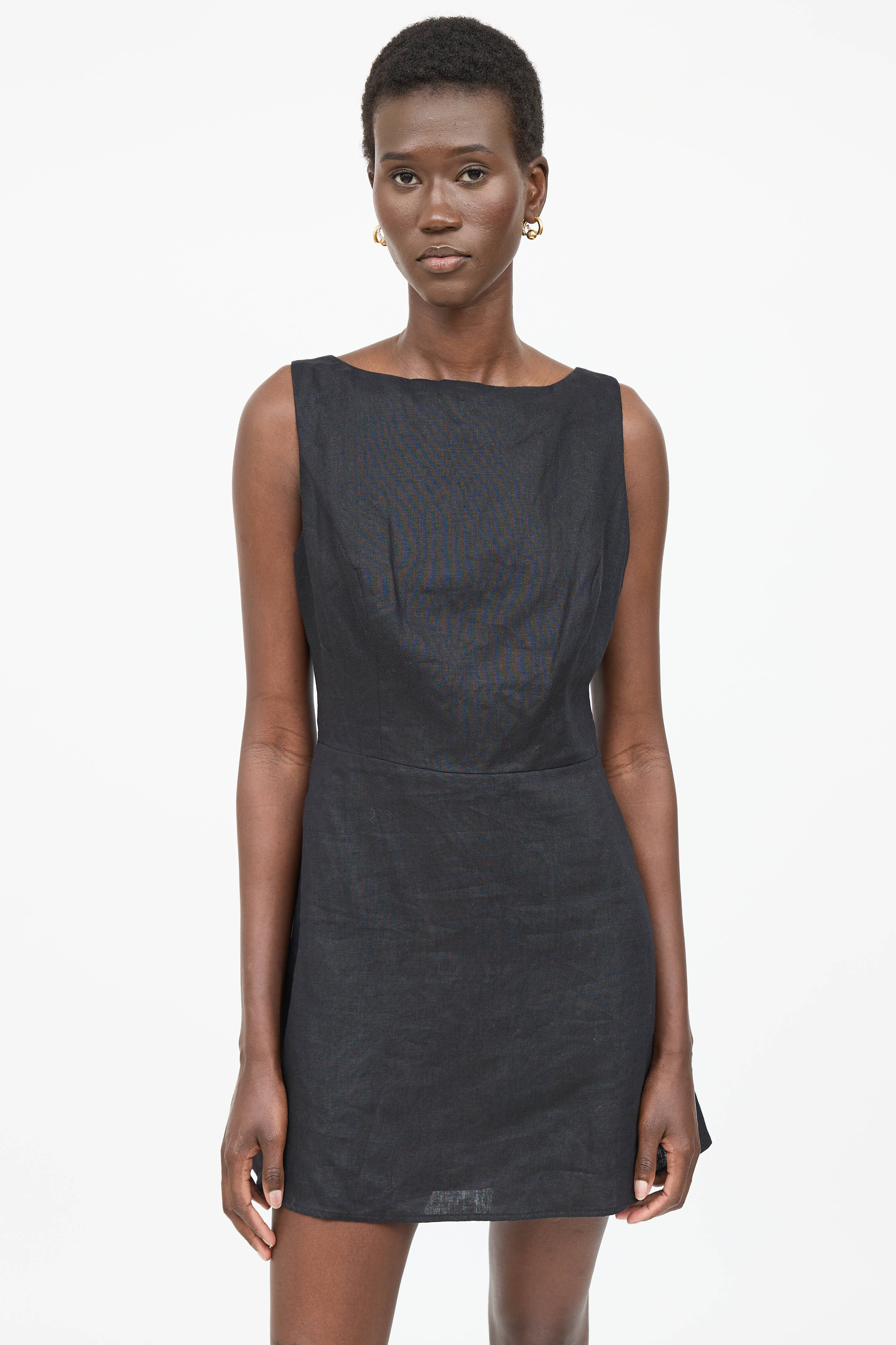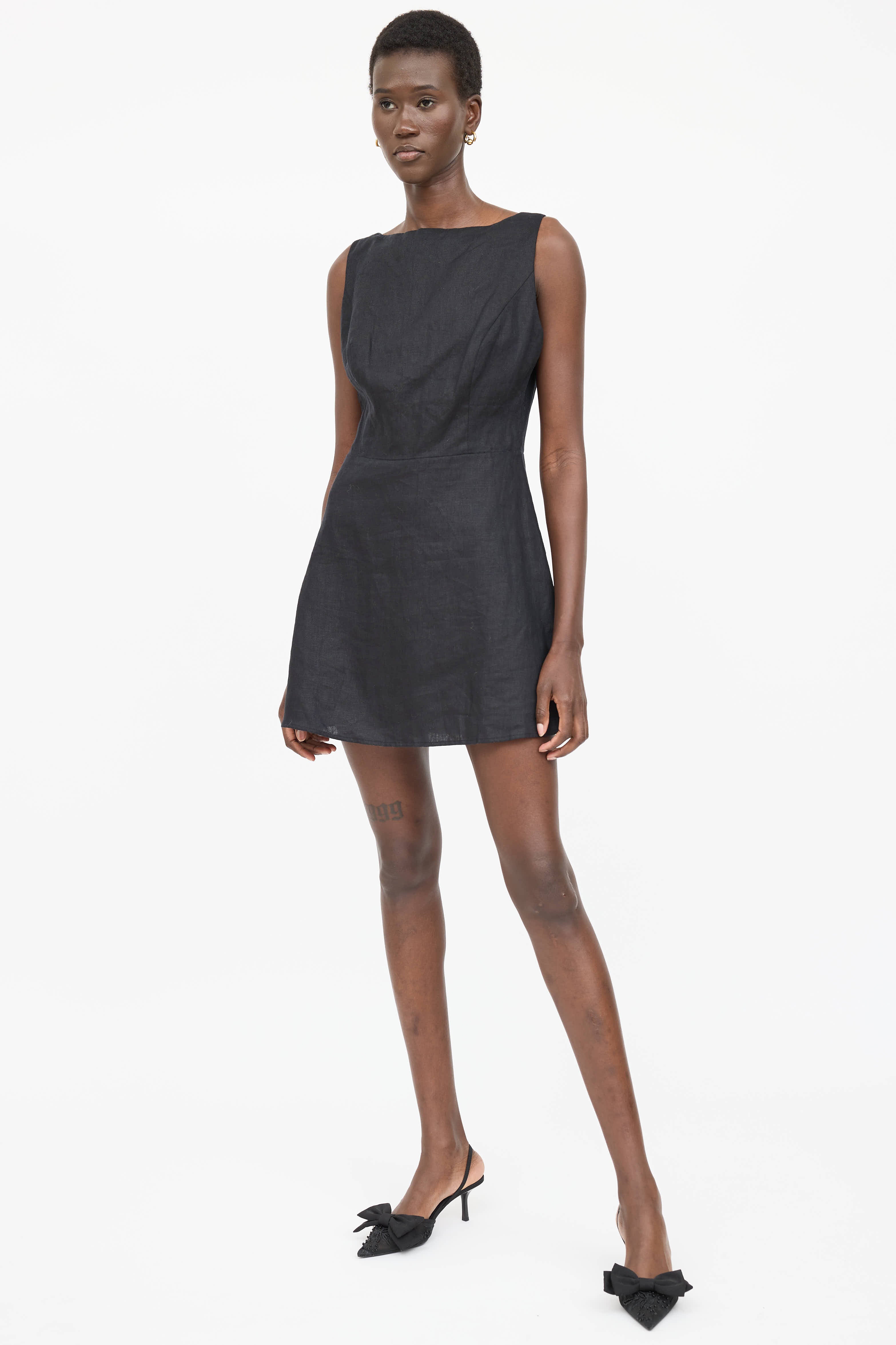 Pre-owned Reformation black sleeveless dress featuring boat neckline and v-neck at back with concealed zip. Lined.