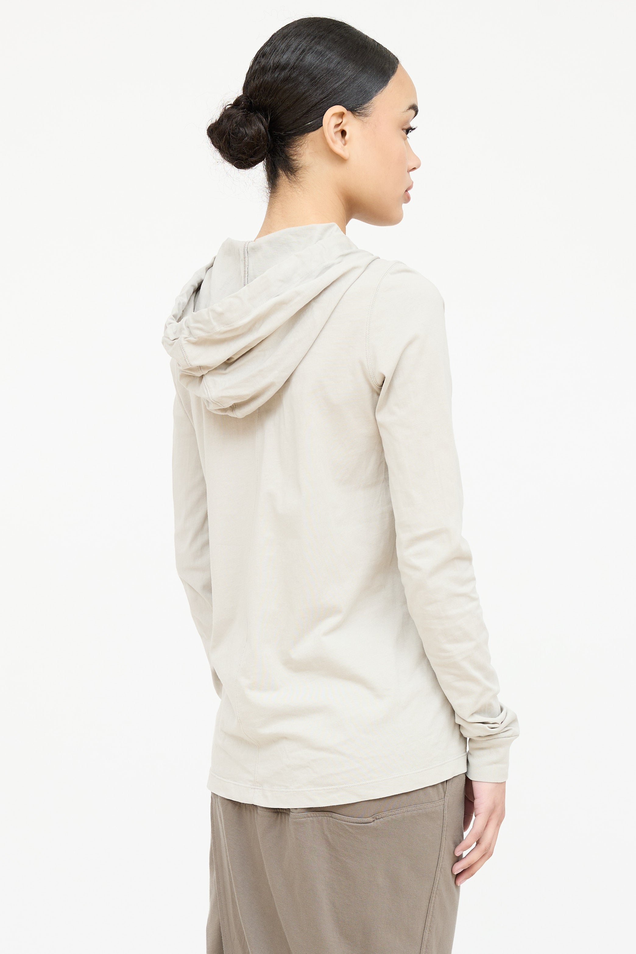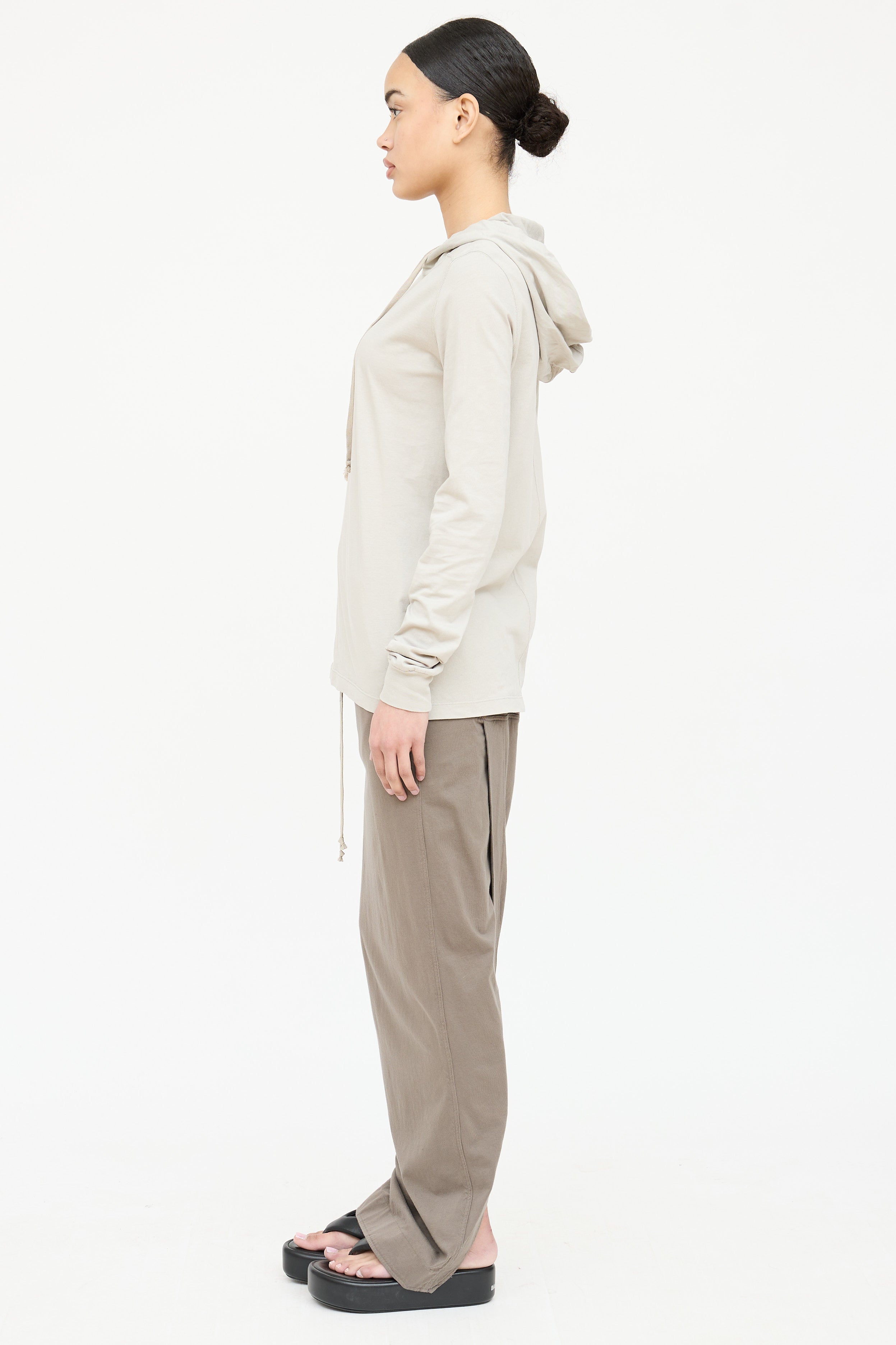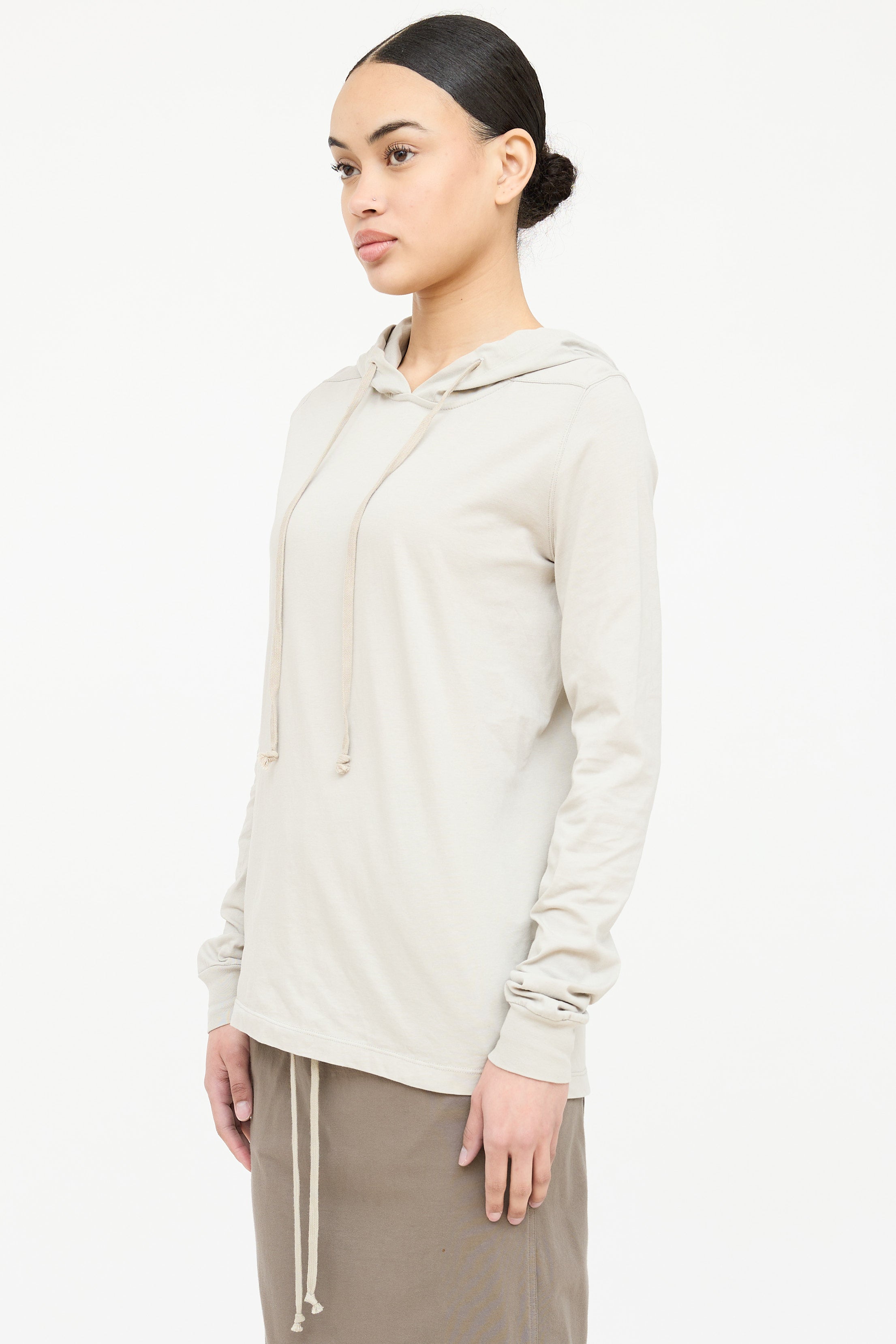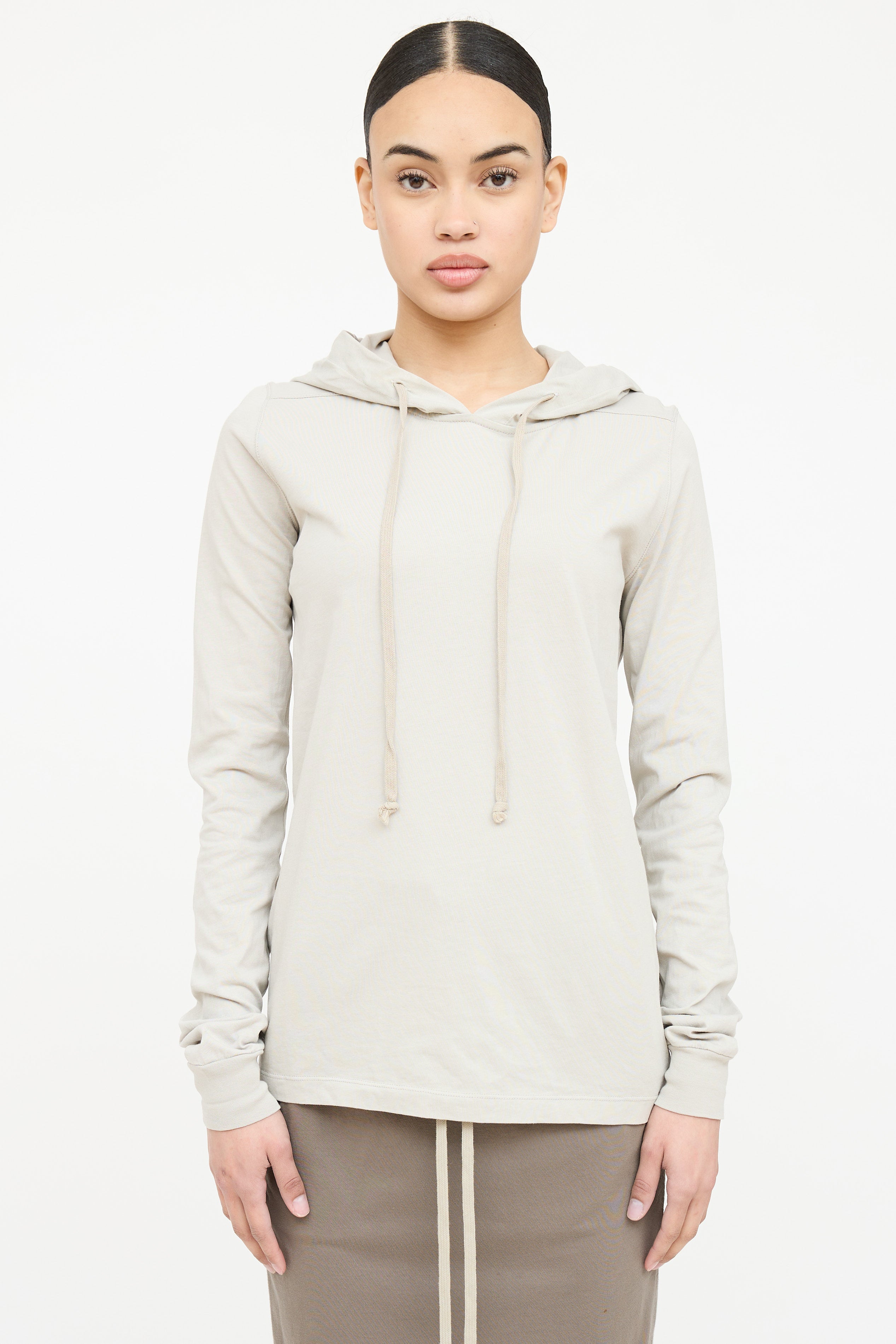 Pre-owned Rick Owens Spring Summer 2019 grey hoodie featuring drawstring ribbed cuffs and center seam at back.