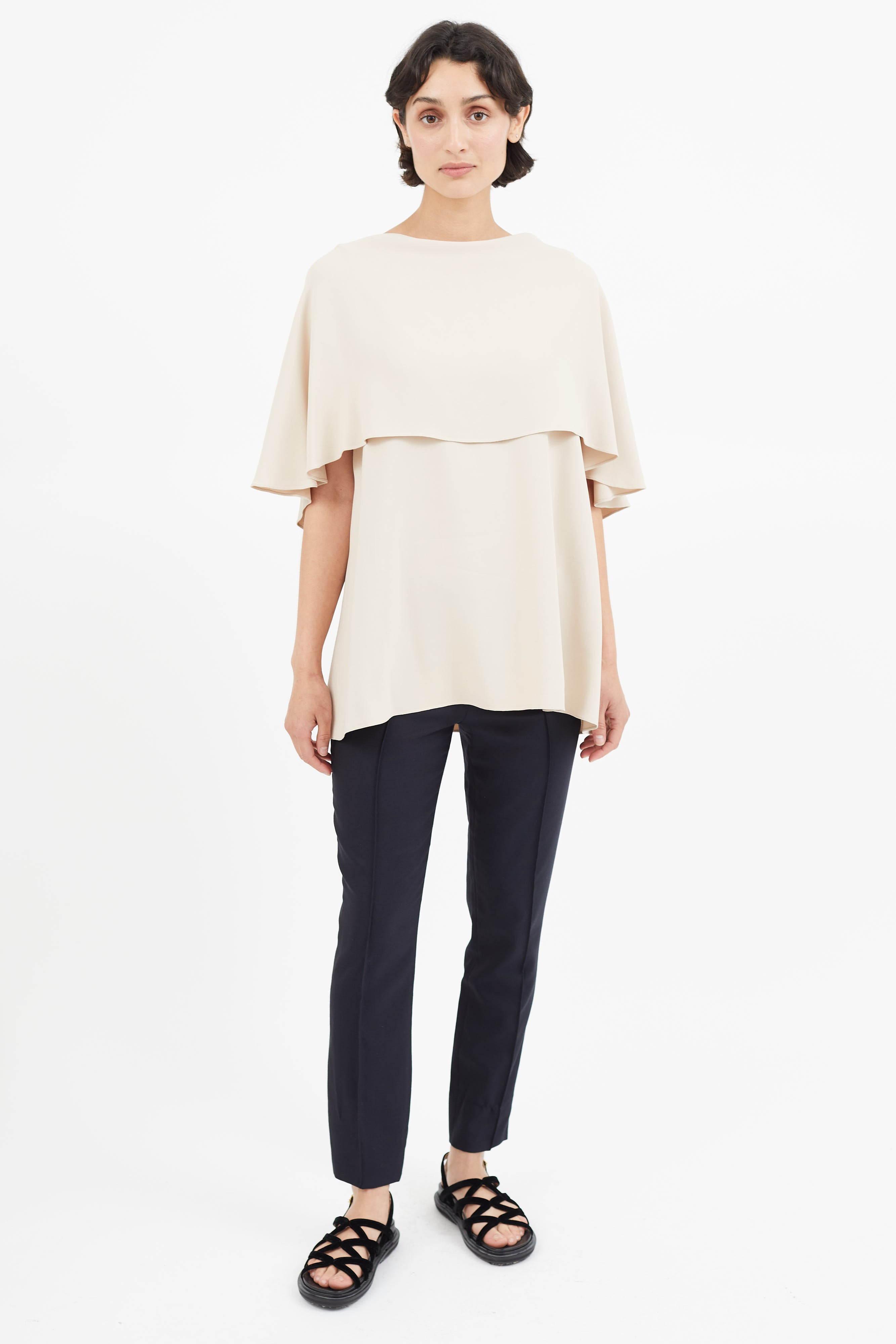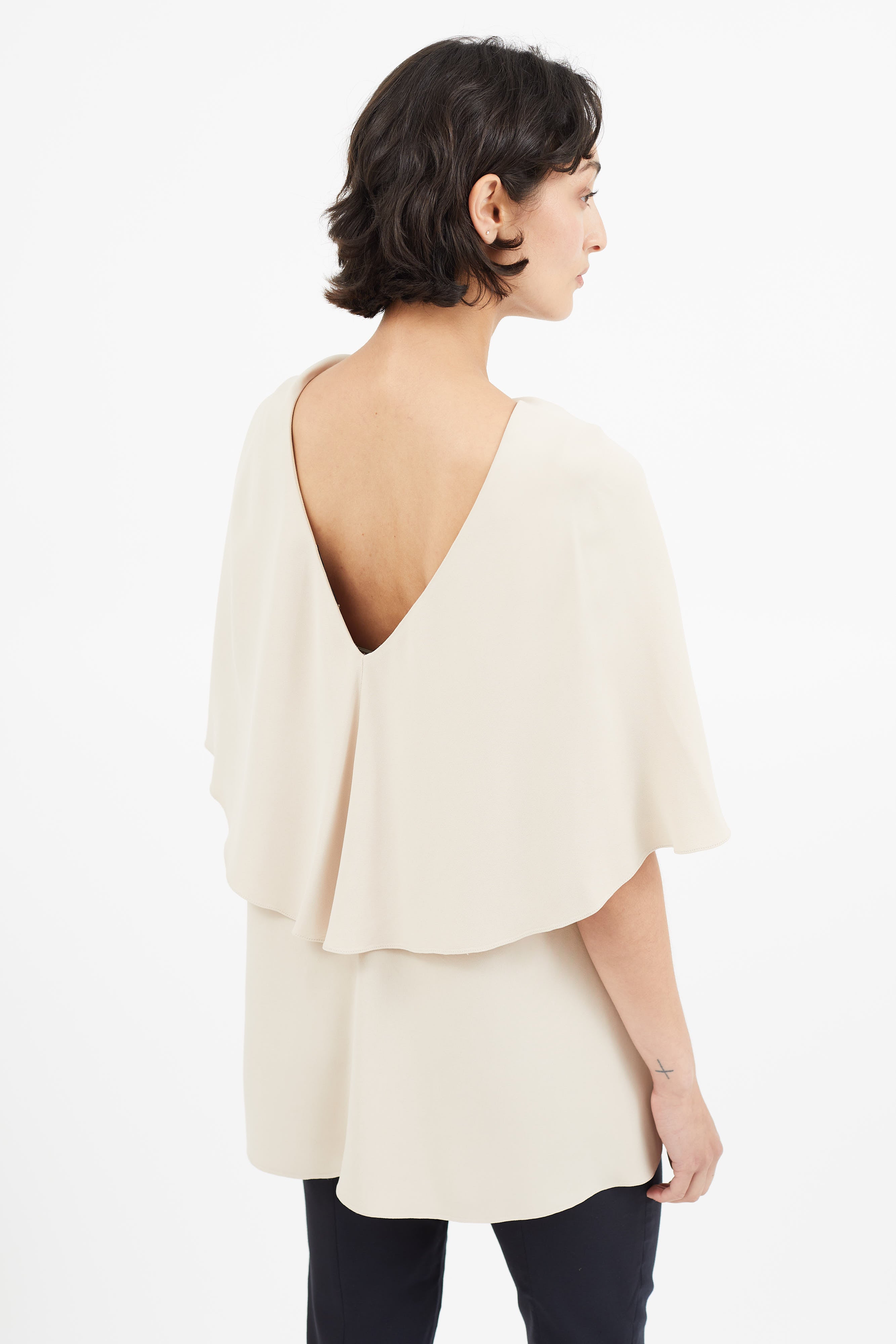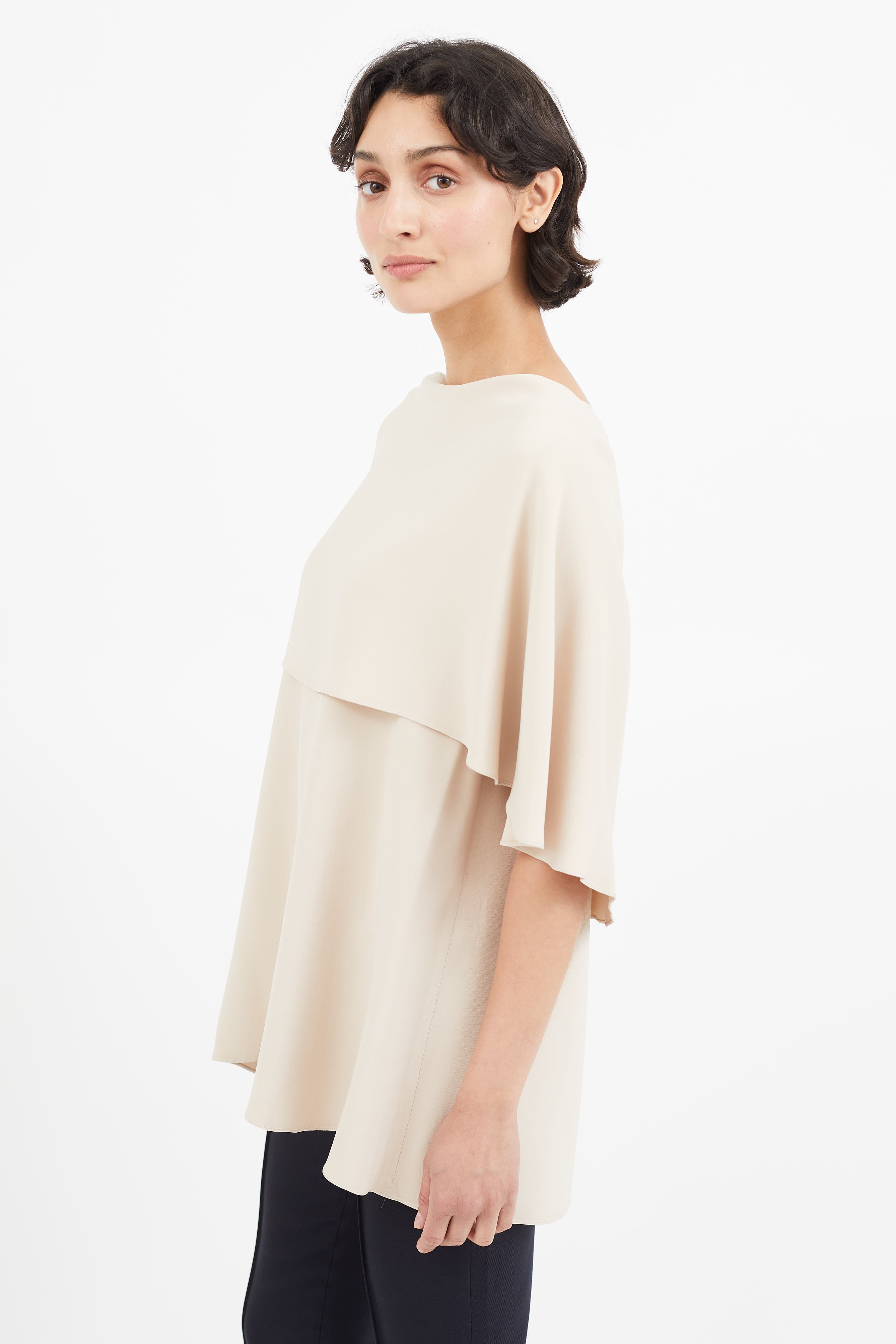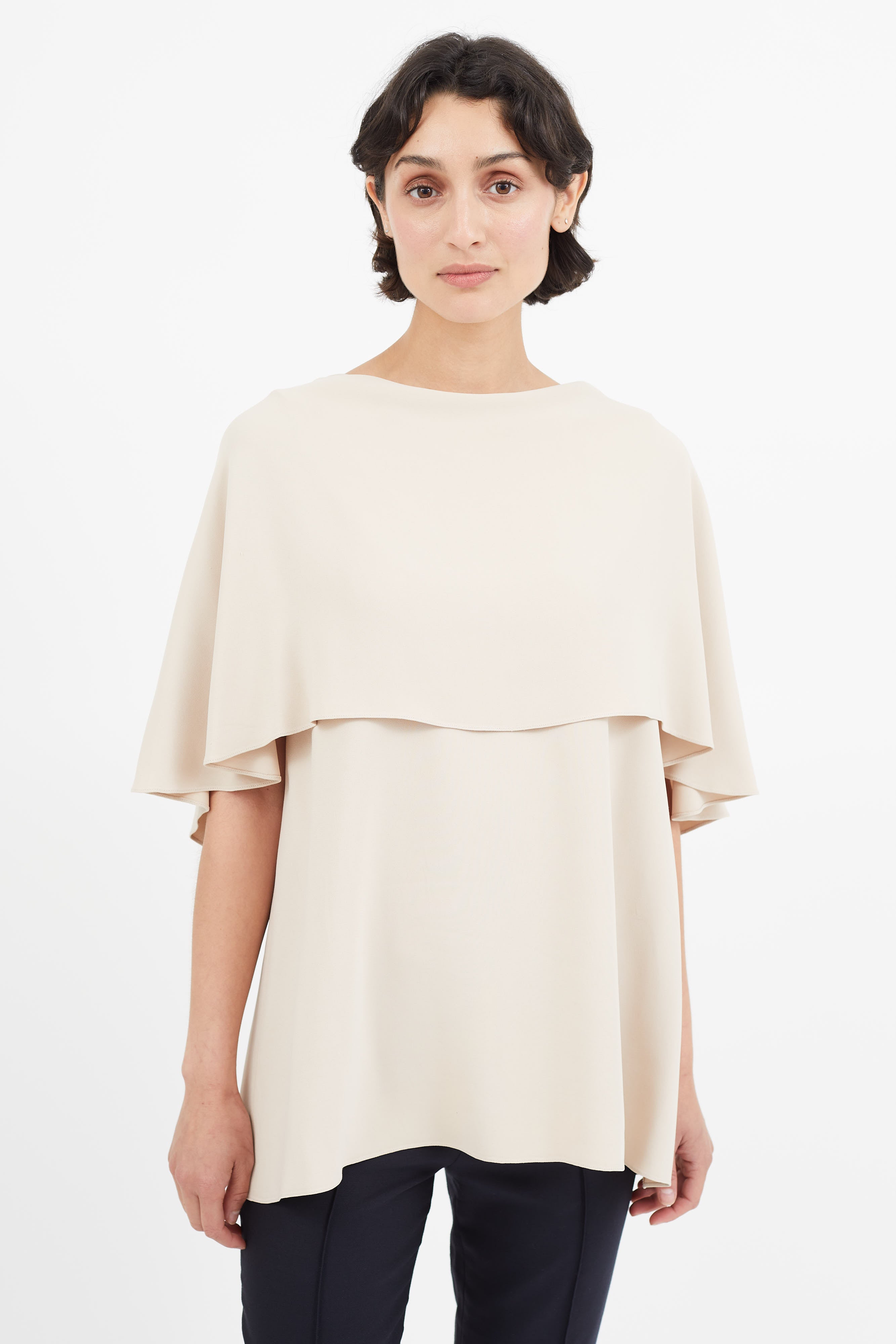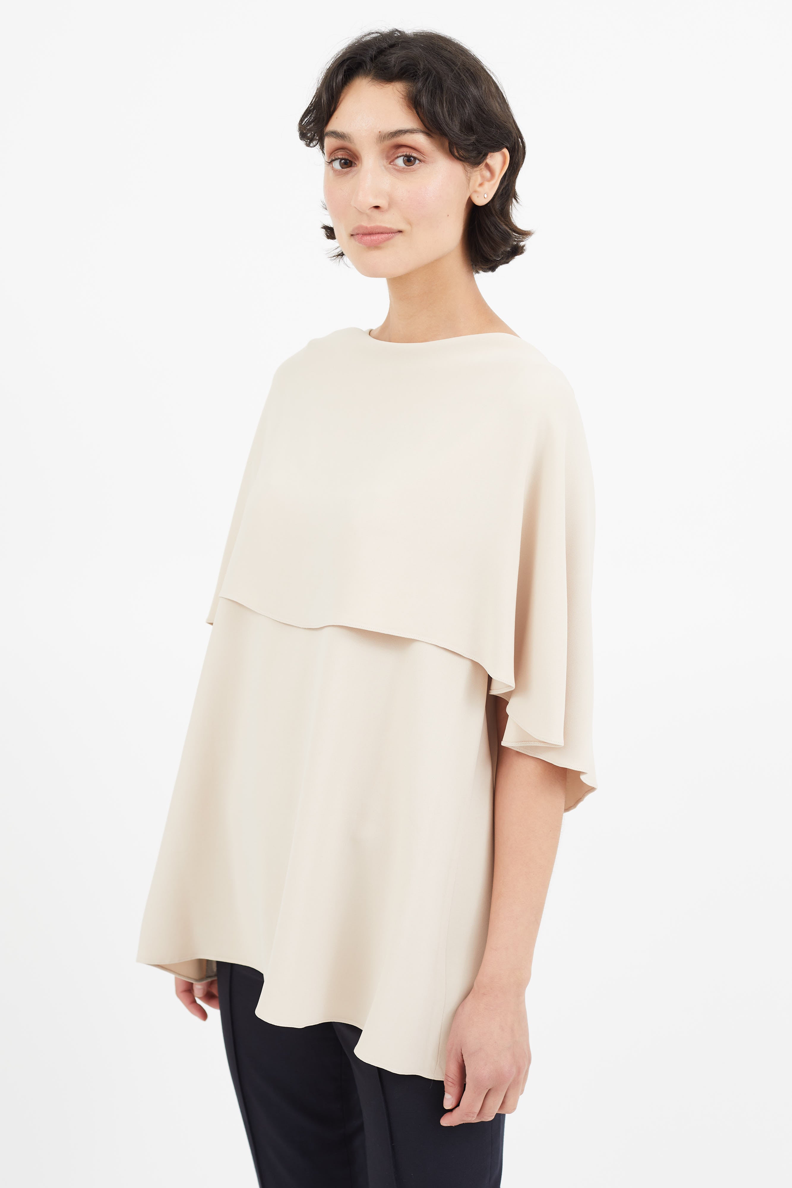 Pre-owned The Row beige top featuring layered detailing, and scoop neckline.