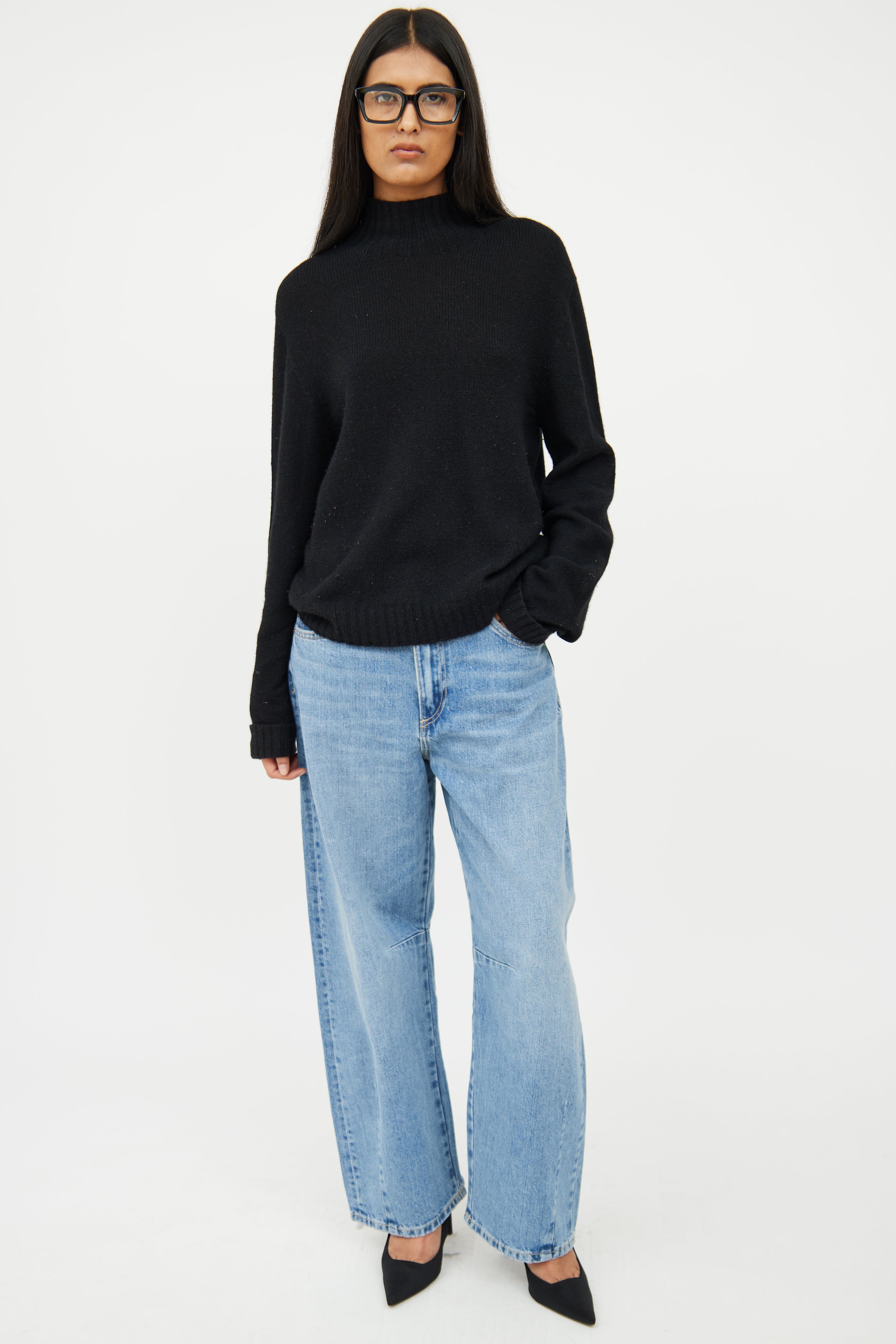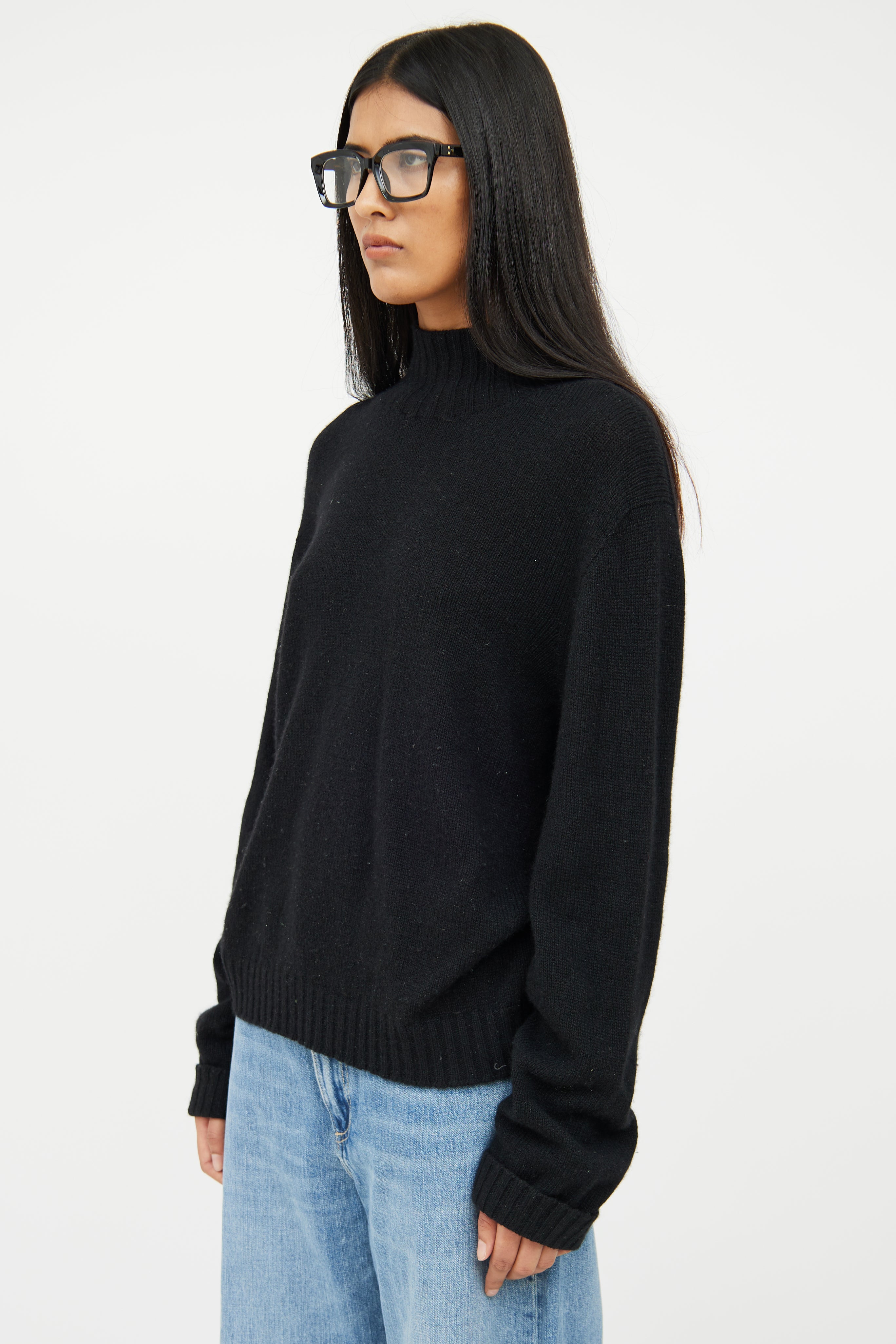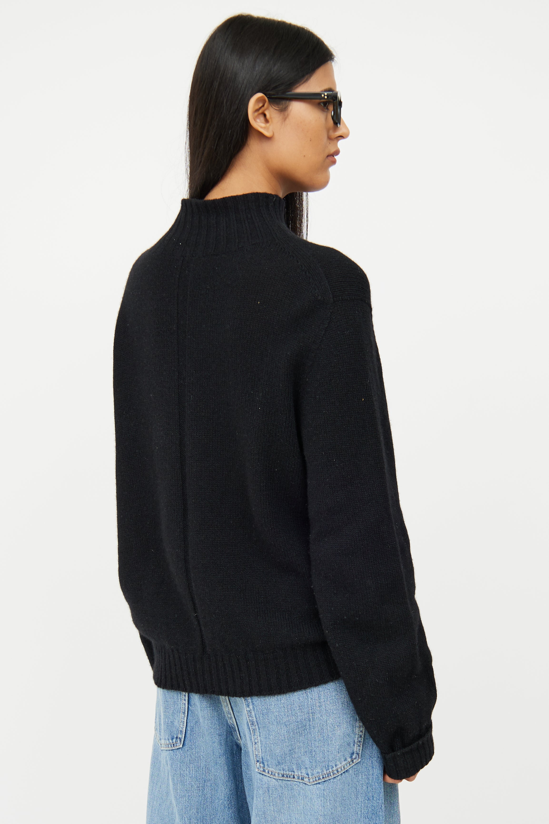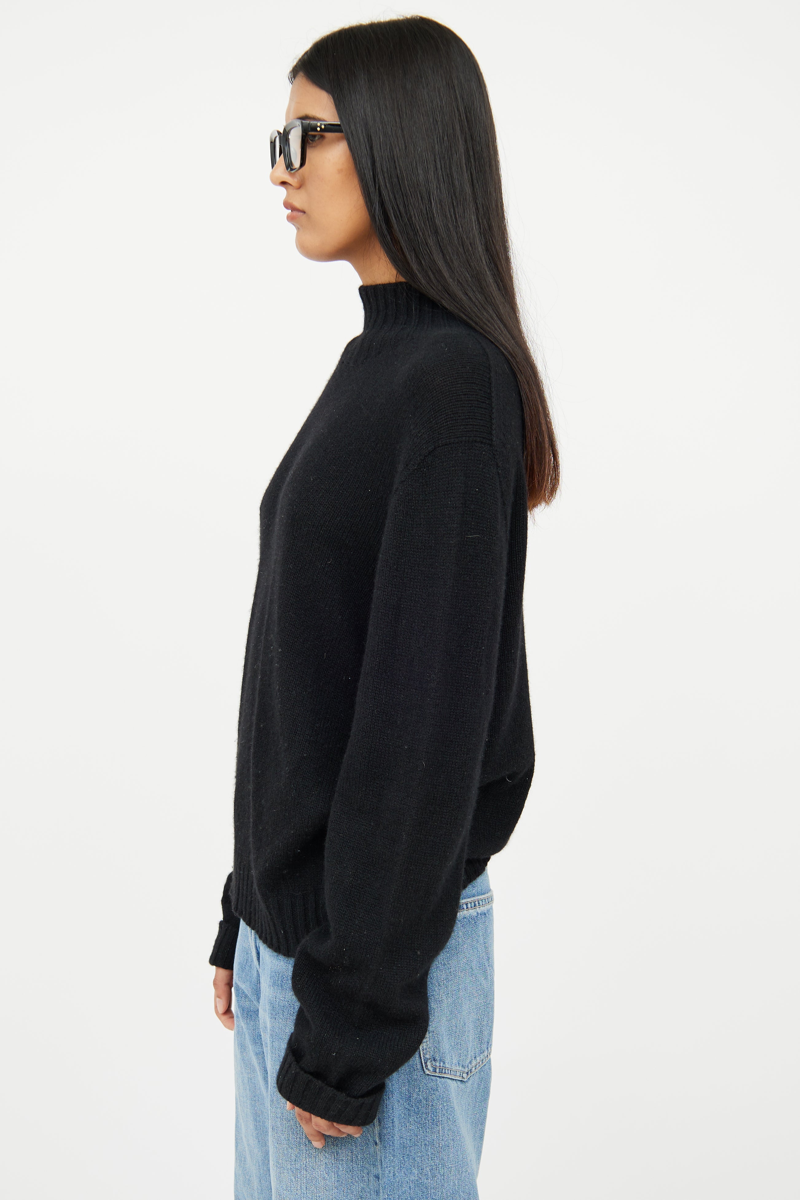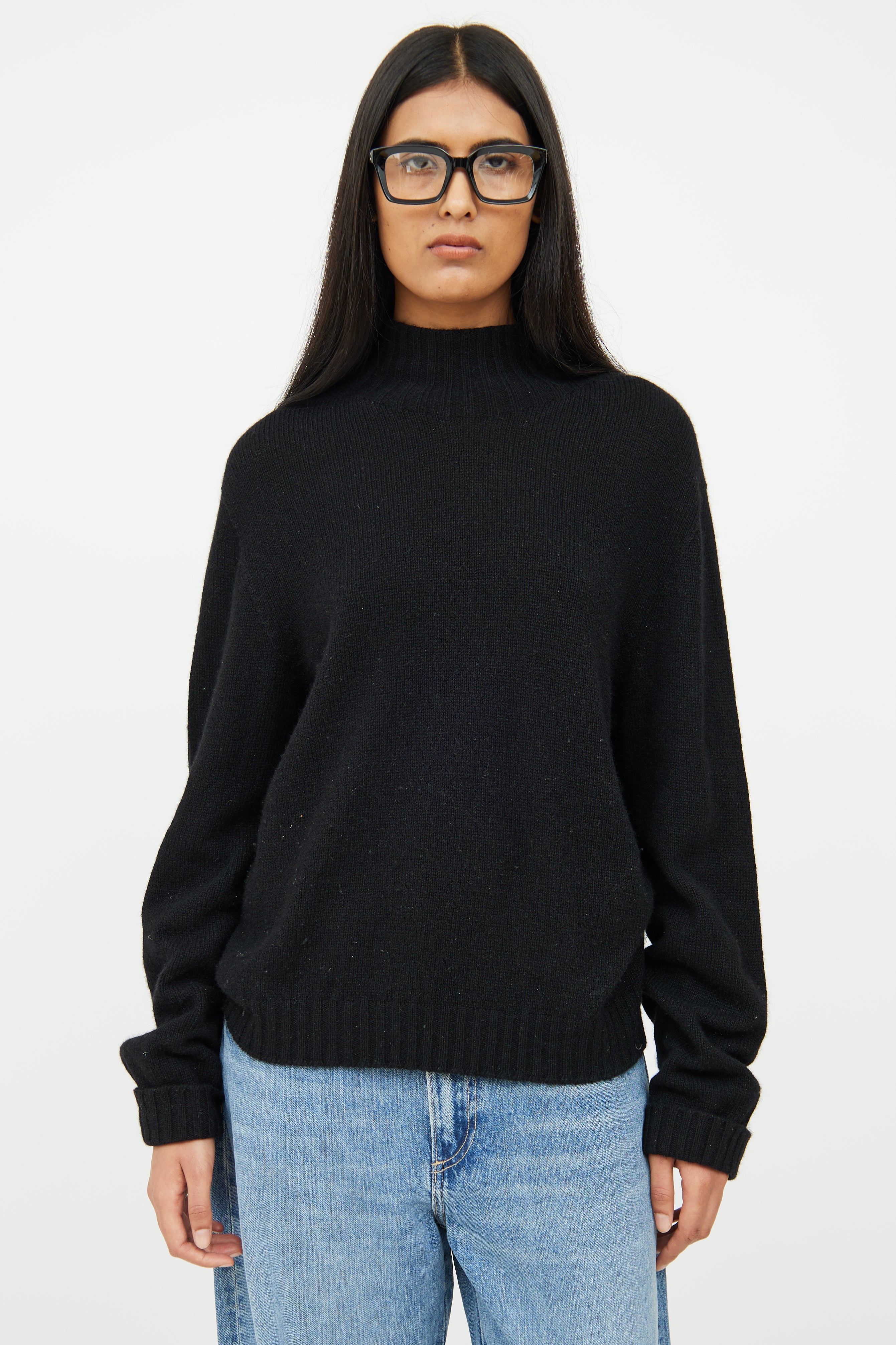 Pre-owned The Row black cashmere knit sweater featuring a mock neck collar, long sleeves, and ribbed hem.