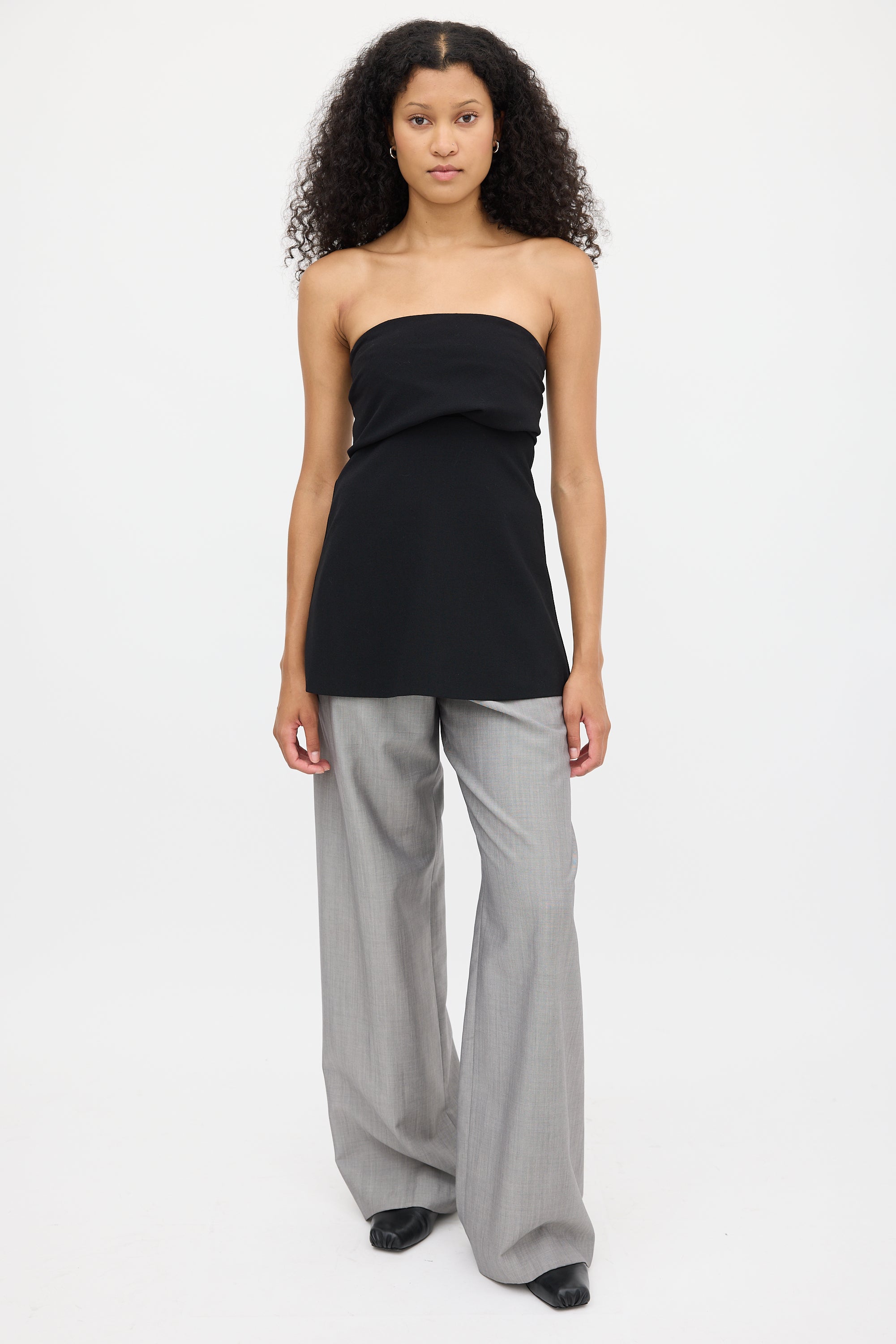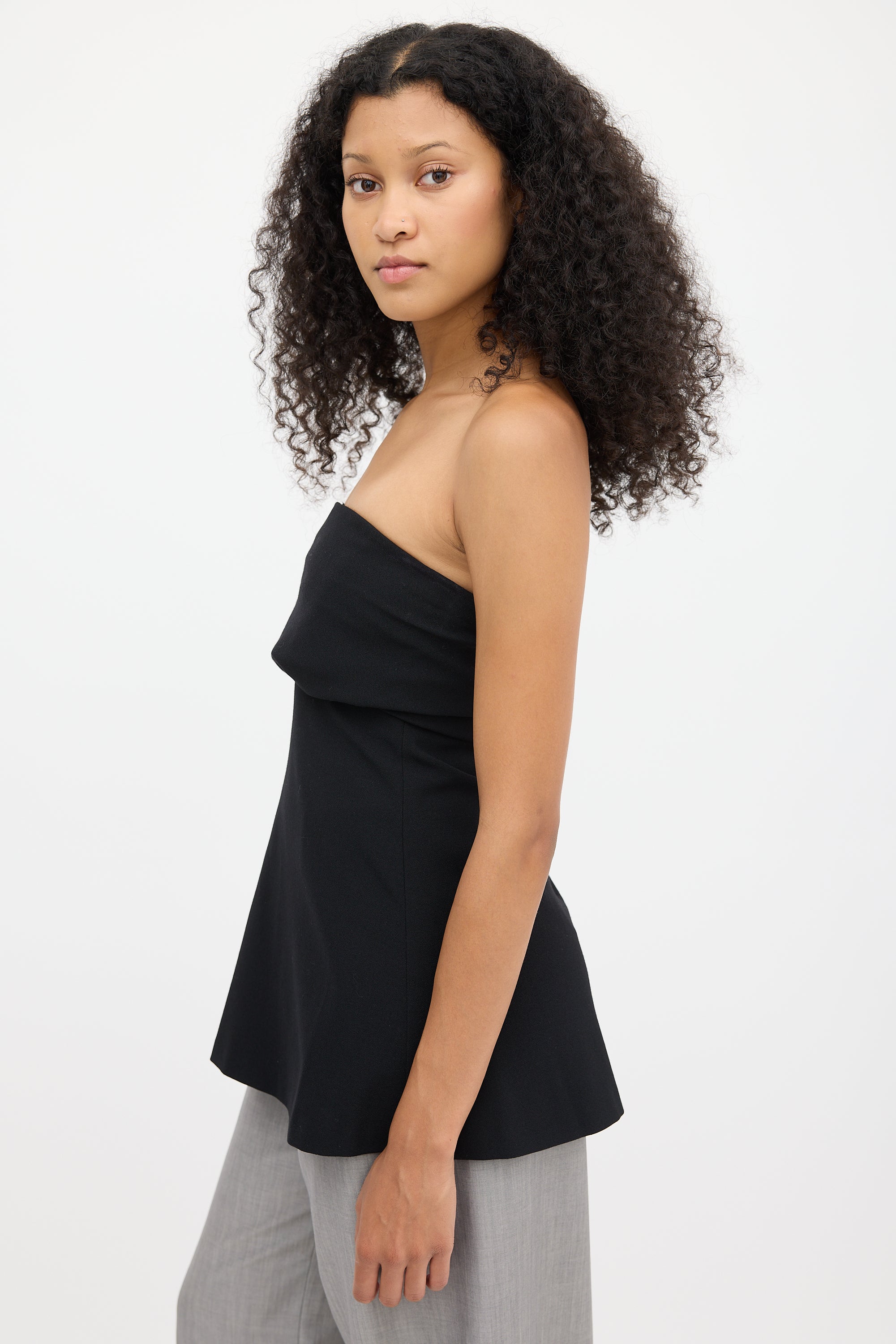 Pre-owned Toteme black wool crepe strapless Band Tube top featuring straight across topline, folded top design with back pleating, and concealed back zip. Lined.