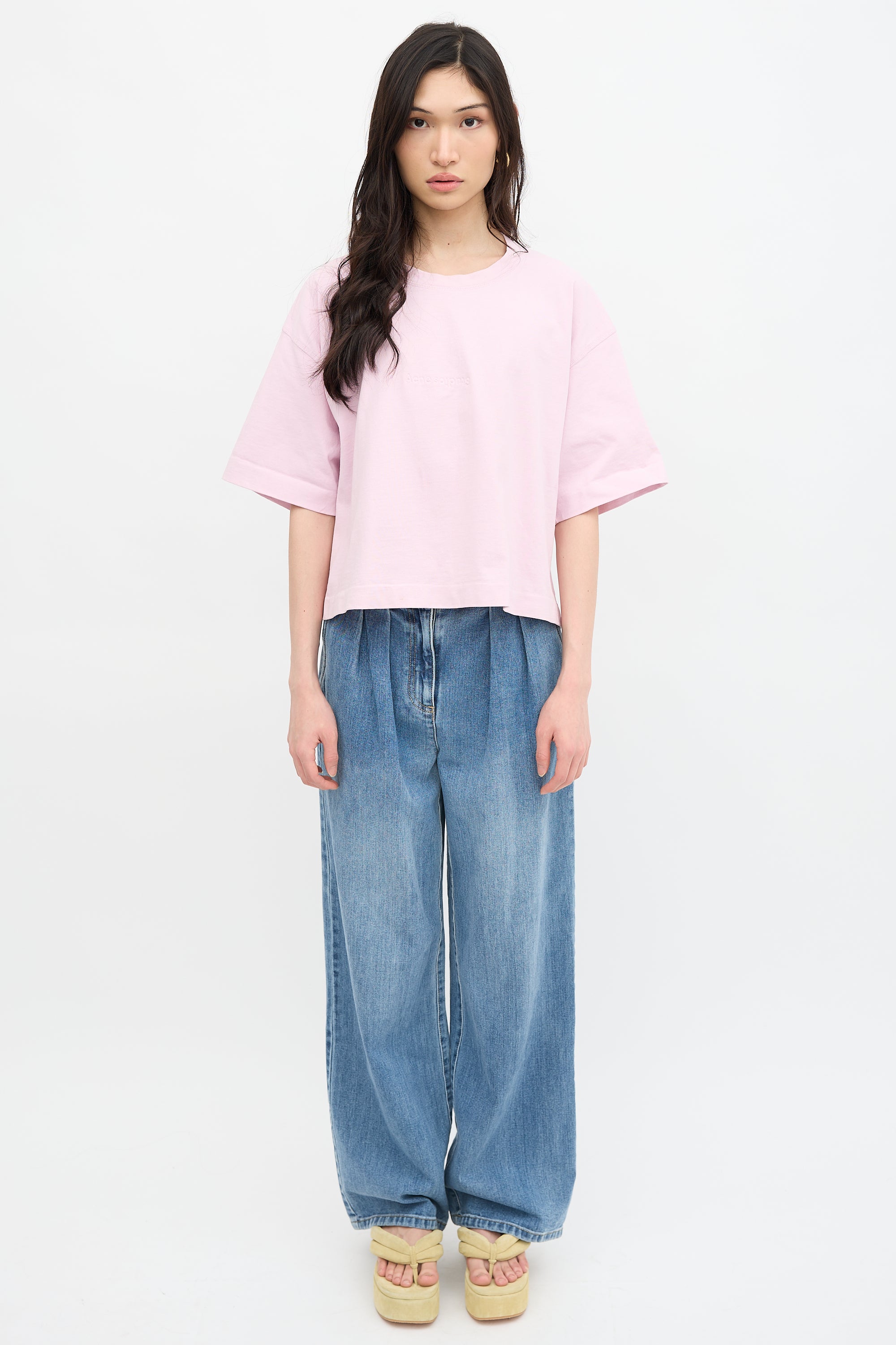 Pre-owned Acne Studios pink Cylea T-shirt featuring crew neck and debossed chest logo.