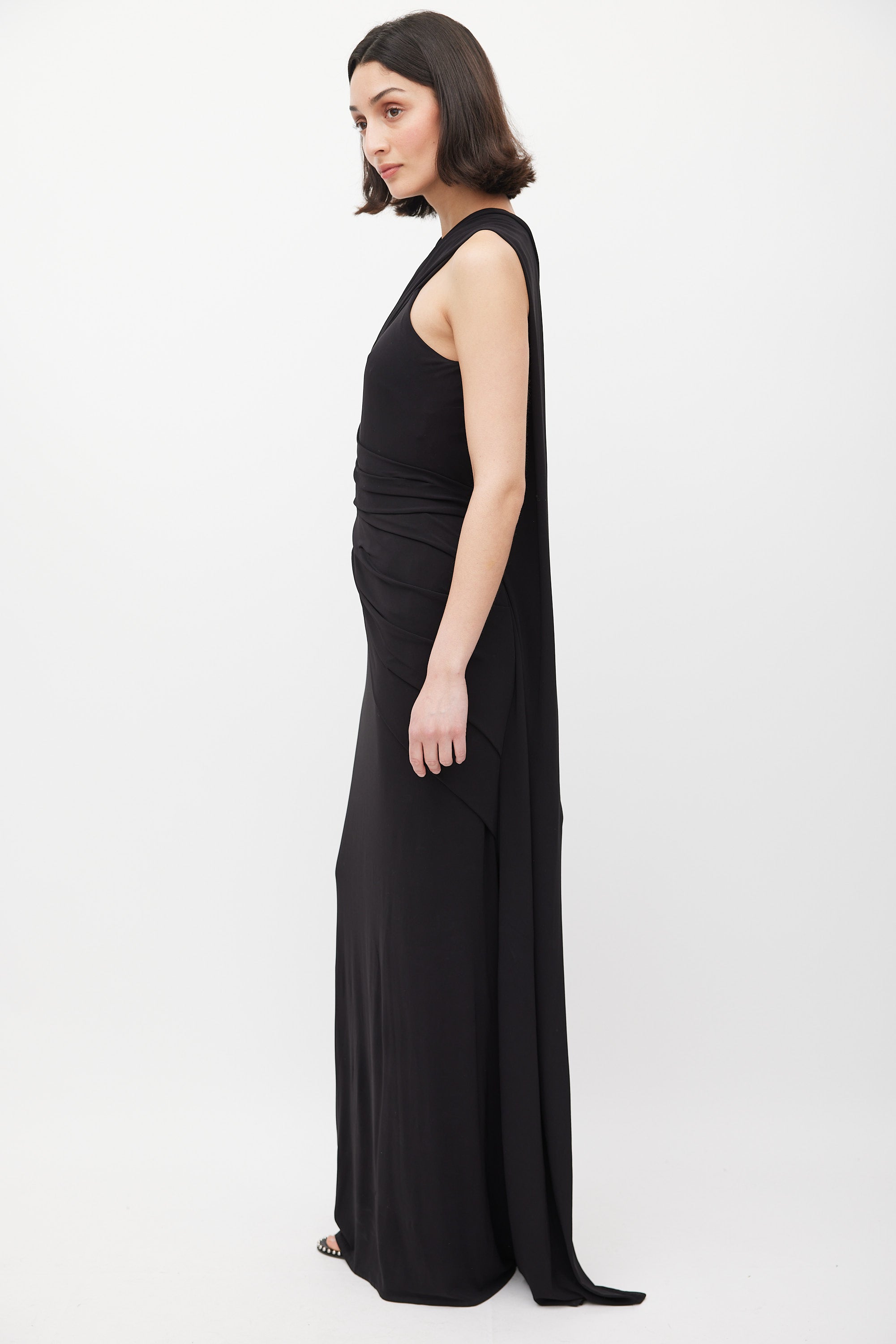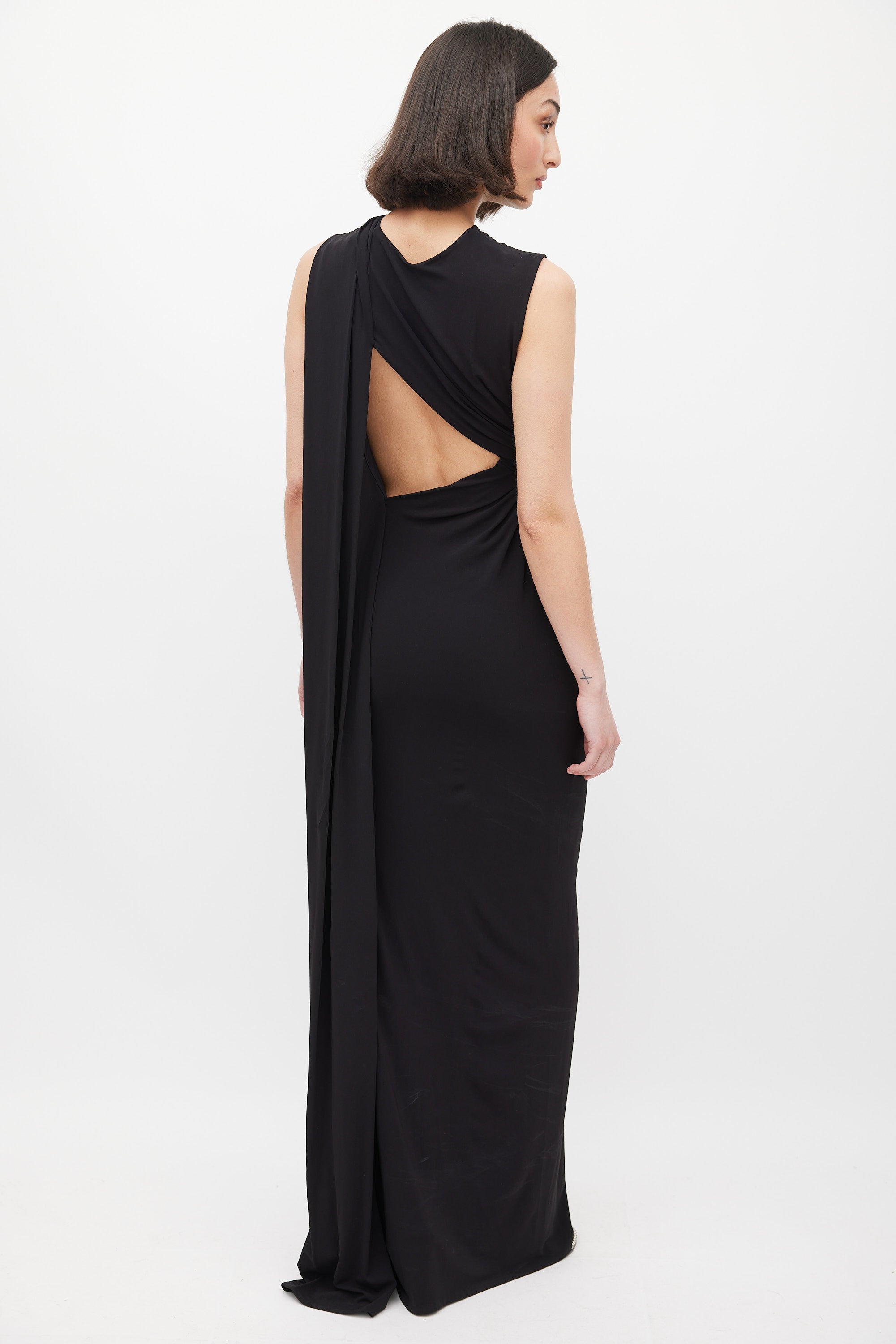 Black Asymmetrical Draped Cutout Back Dress US 2 Size Guide