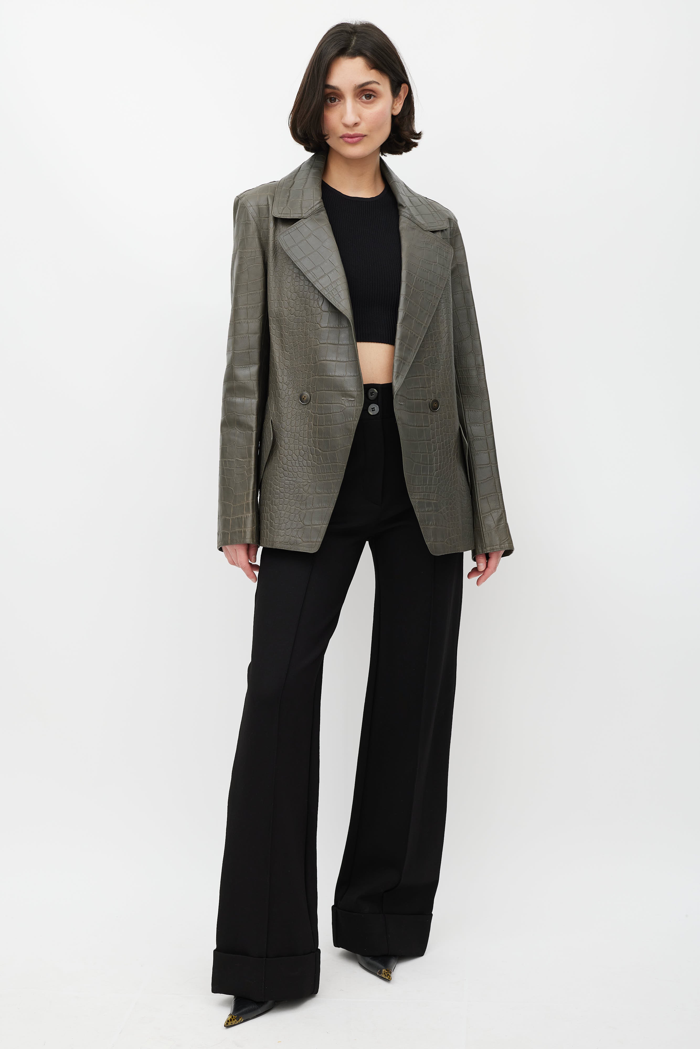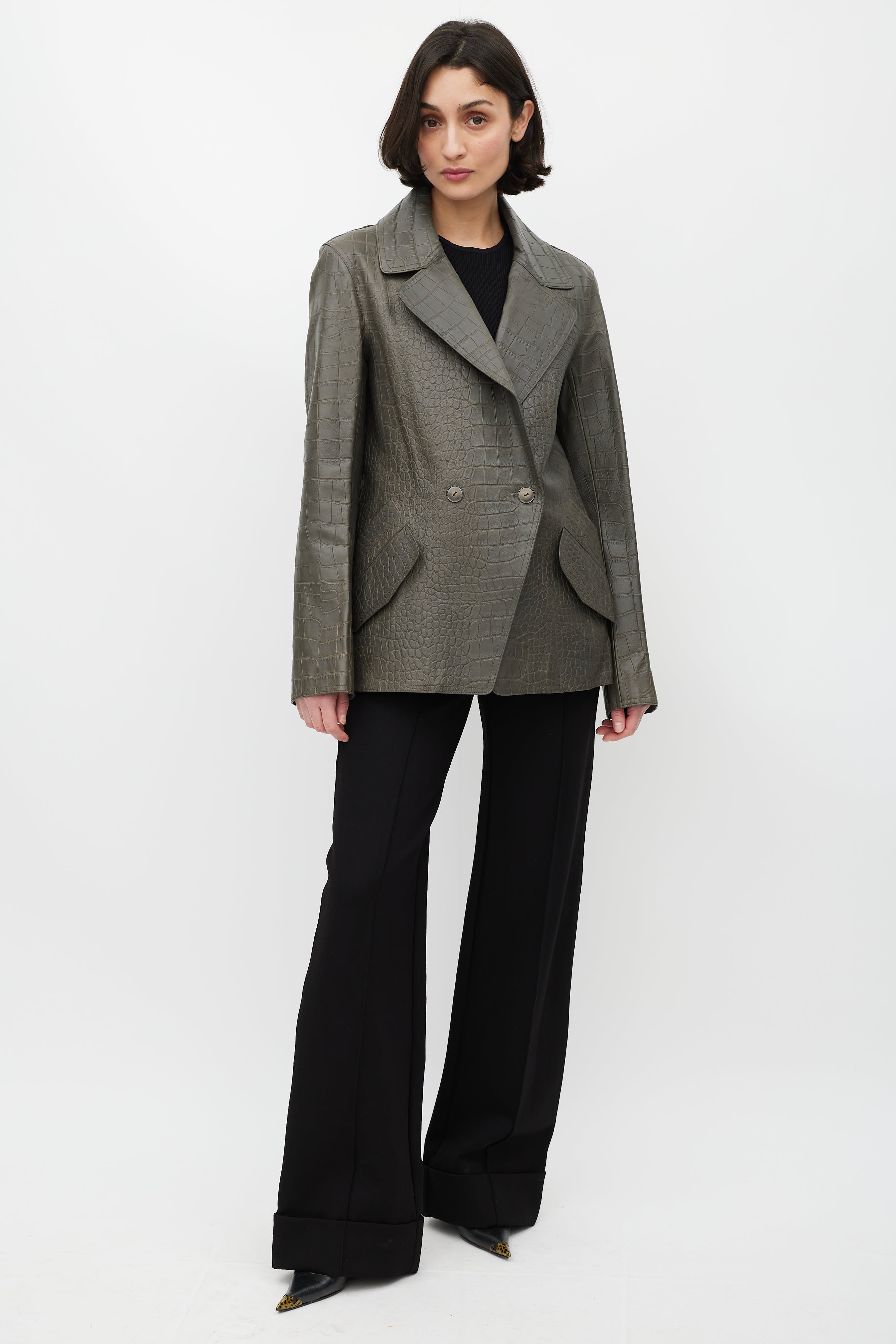 Grey Leather Embossed Blazer US 4 Size Guide