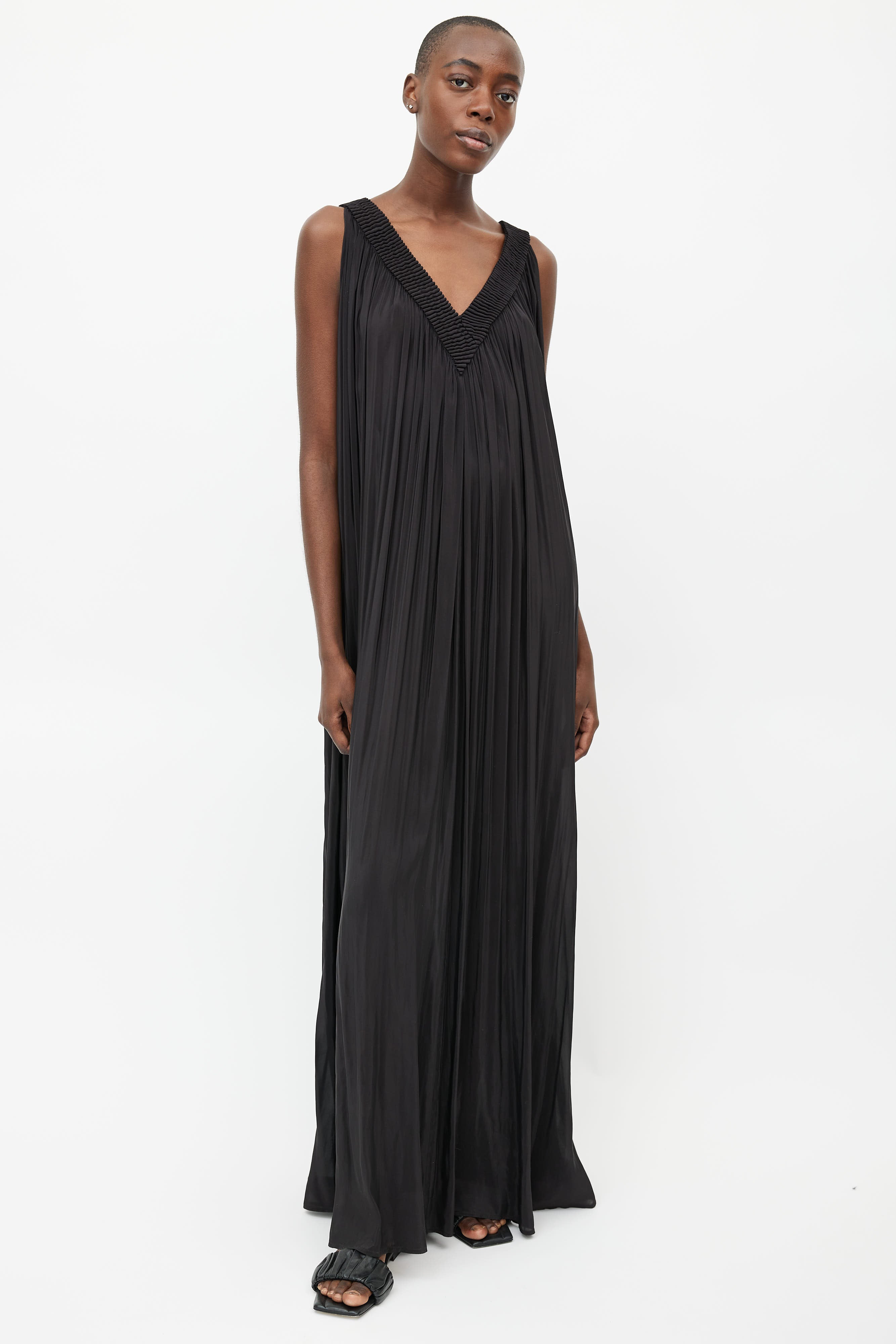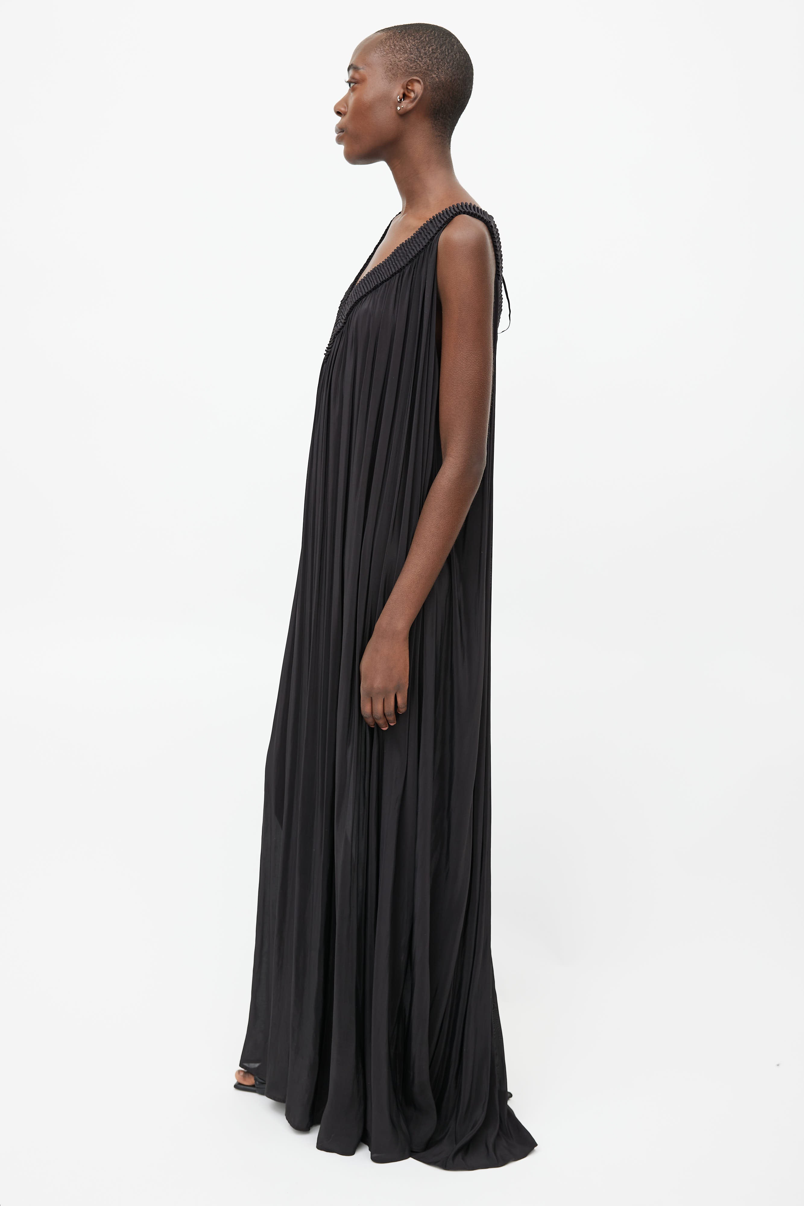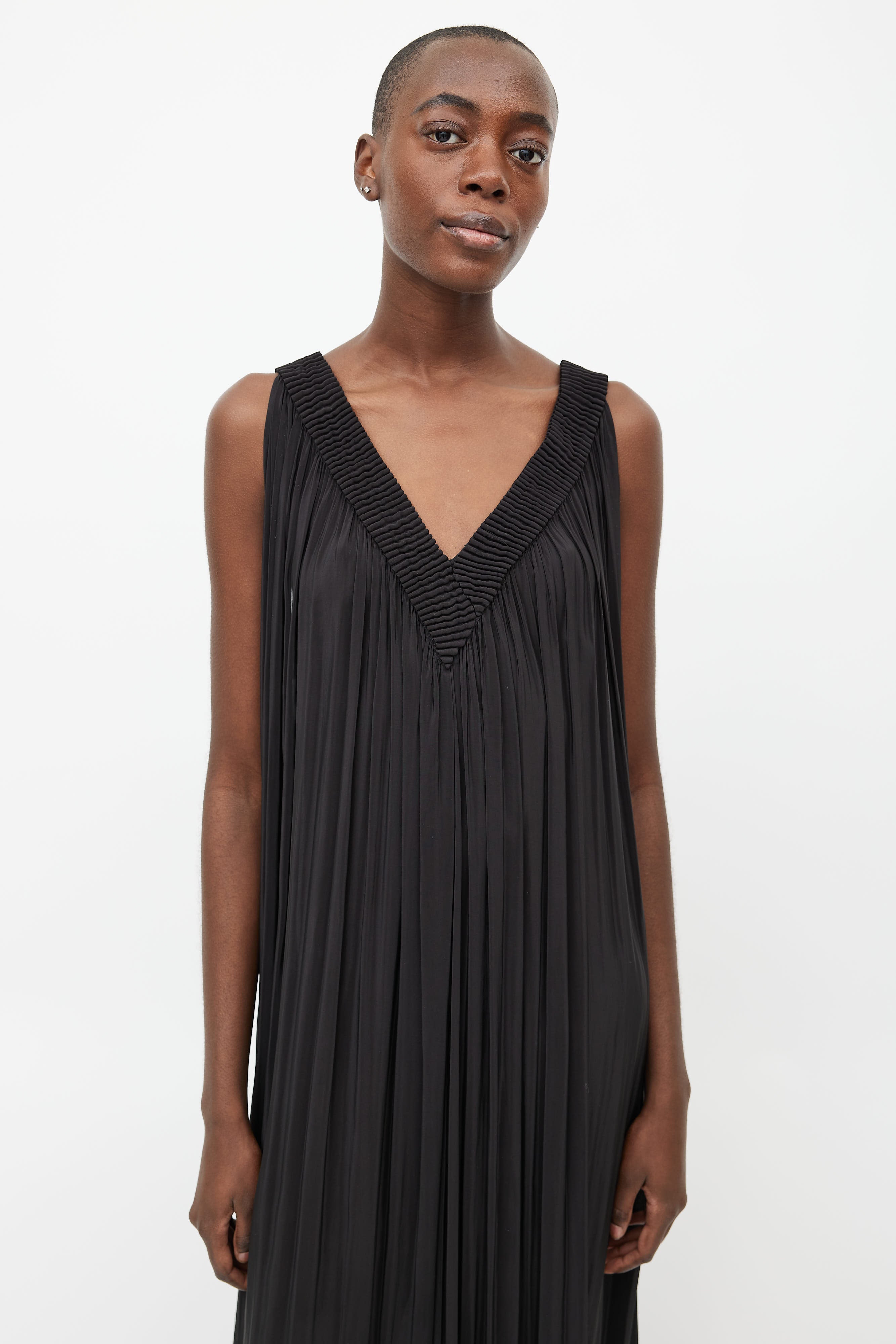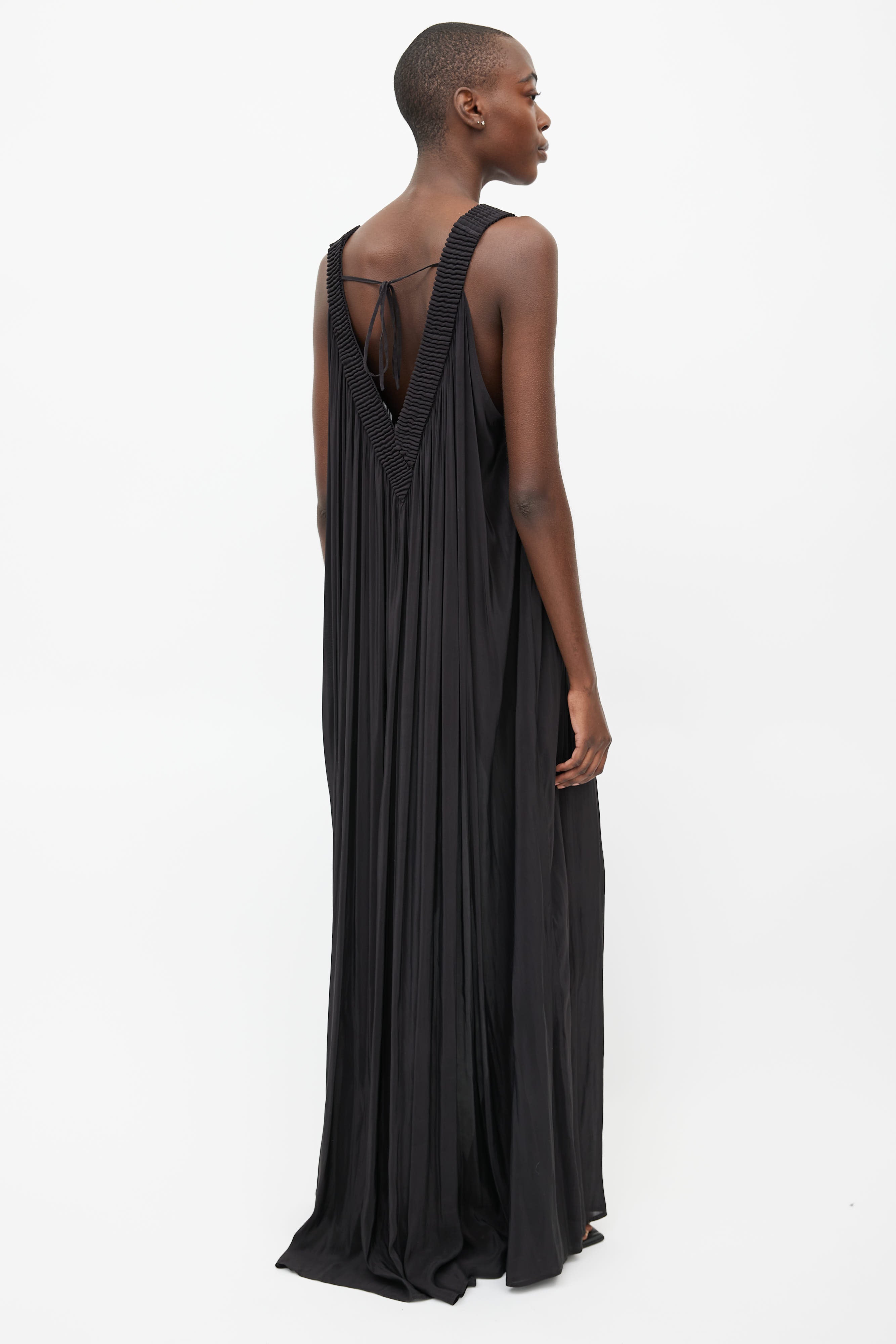 Pre-owned Ann Demeulemeester black dress featuring a v neckline, pleating detail at front and back, and lace up closure at back.