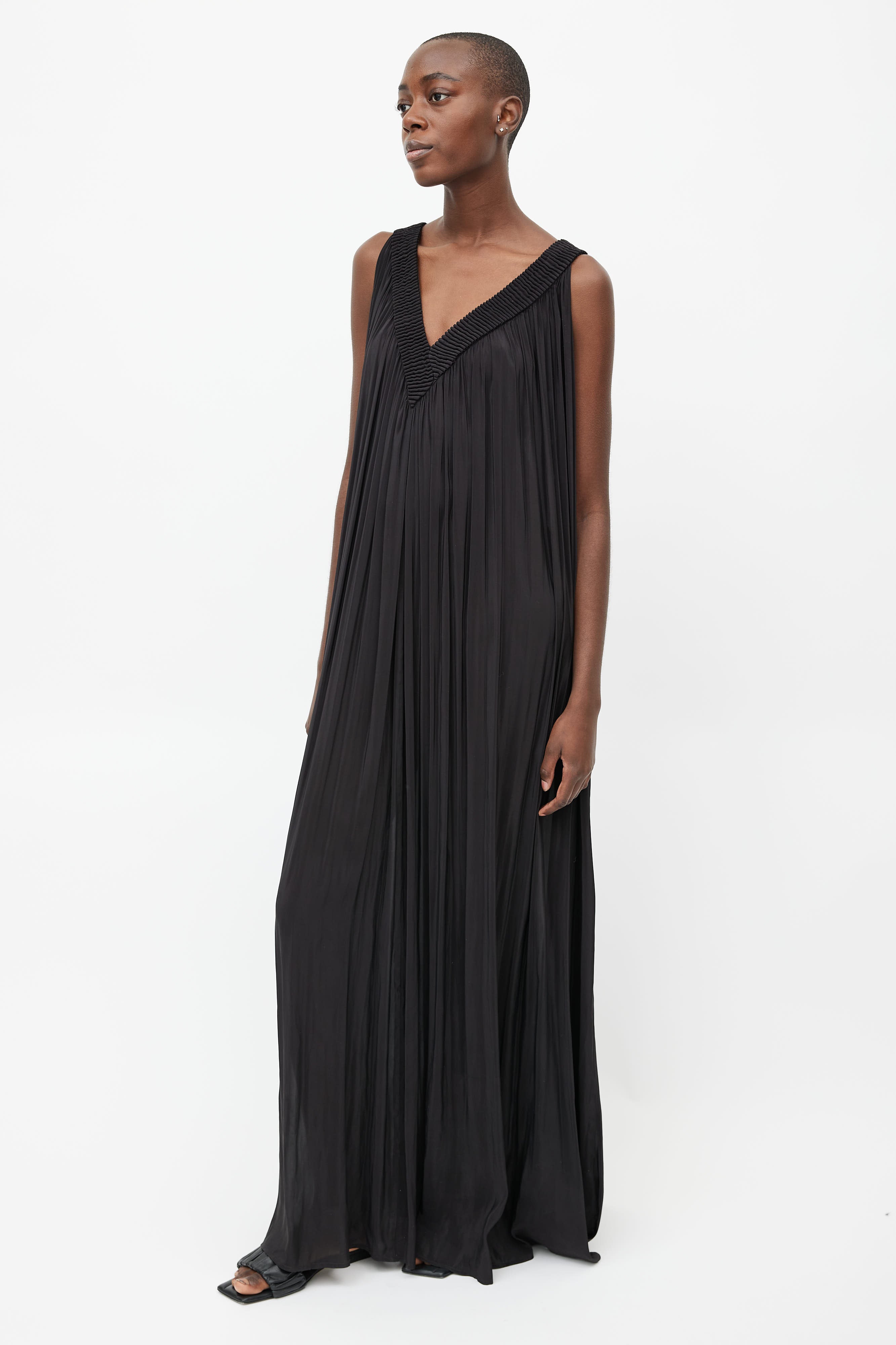 Black V-Neck Pleated Dress IT 36 Size Guide