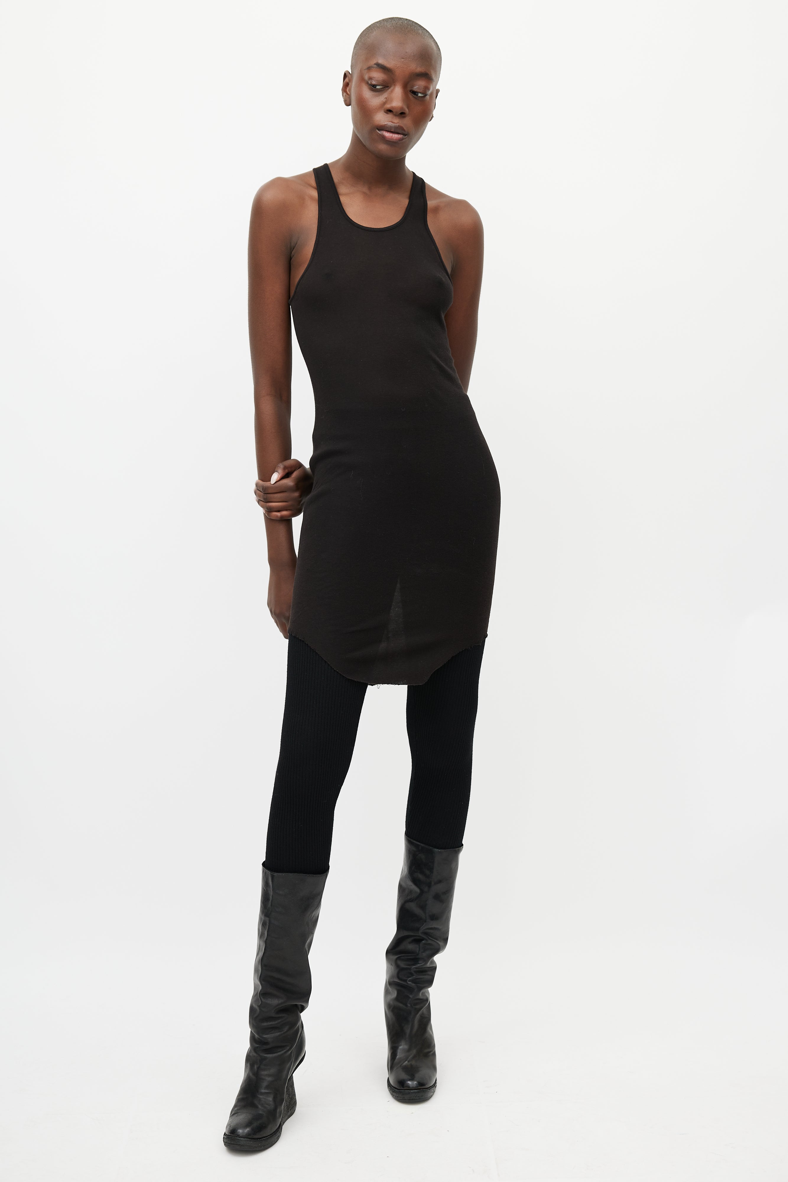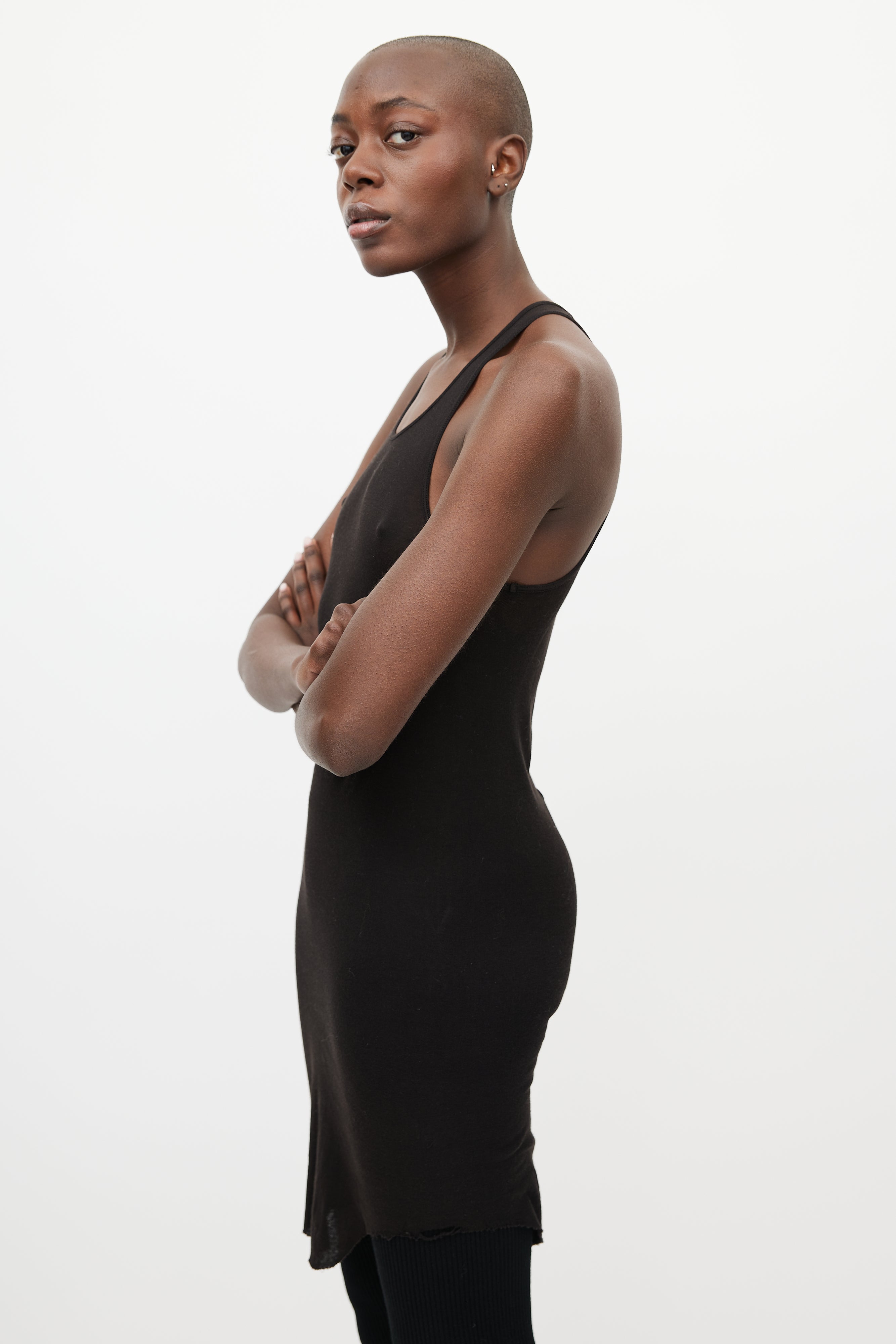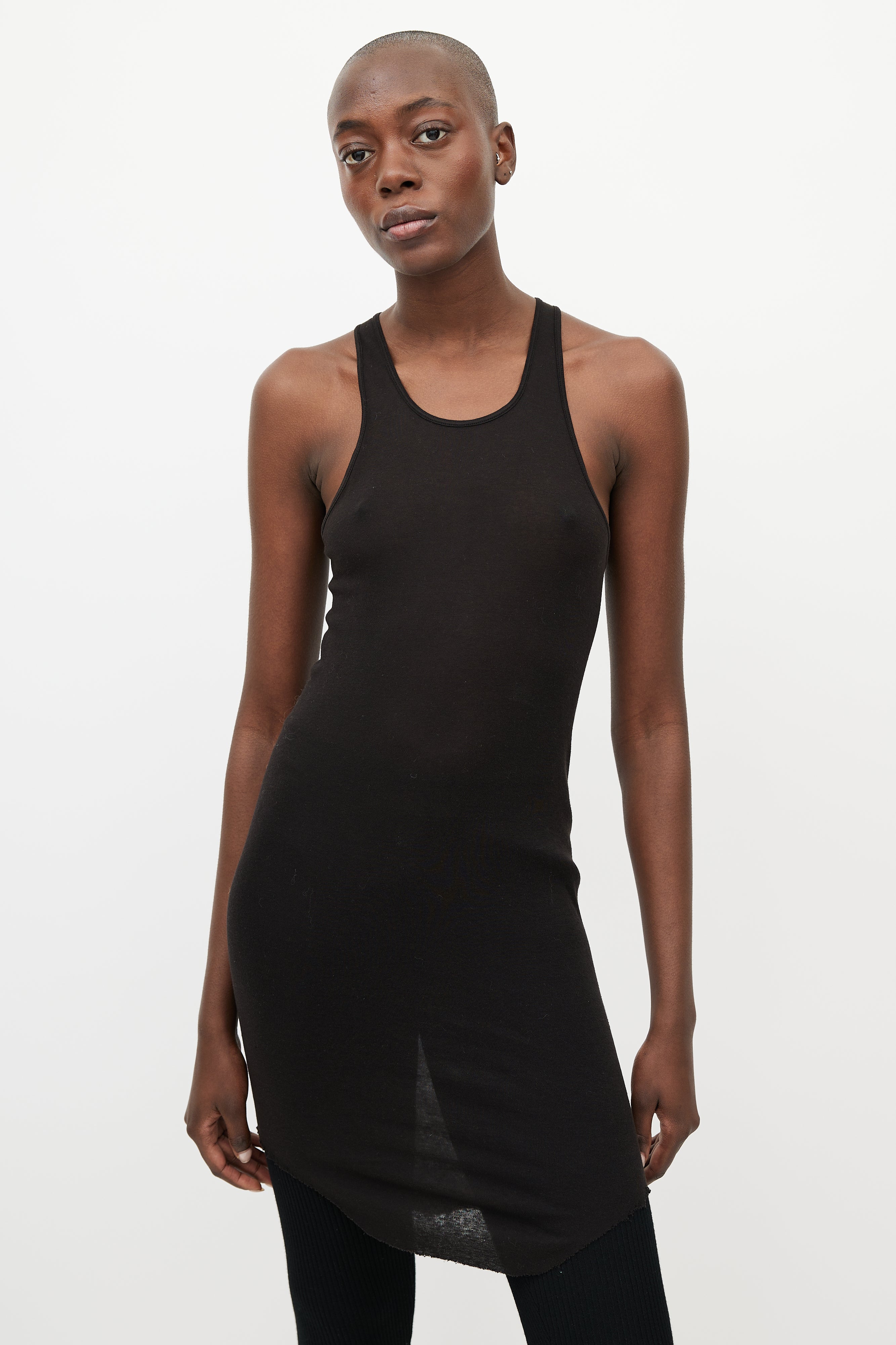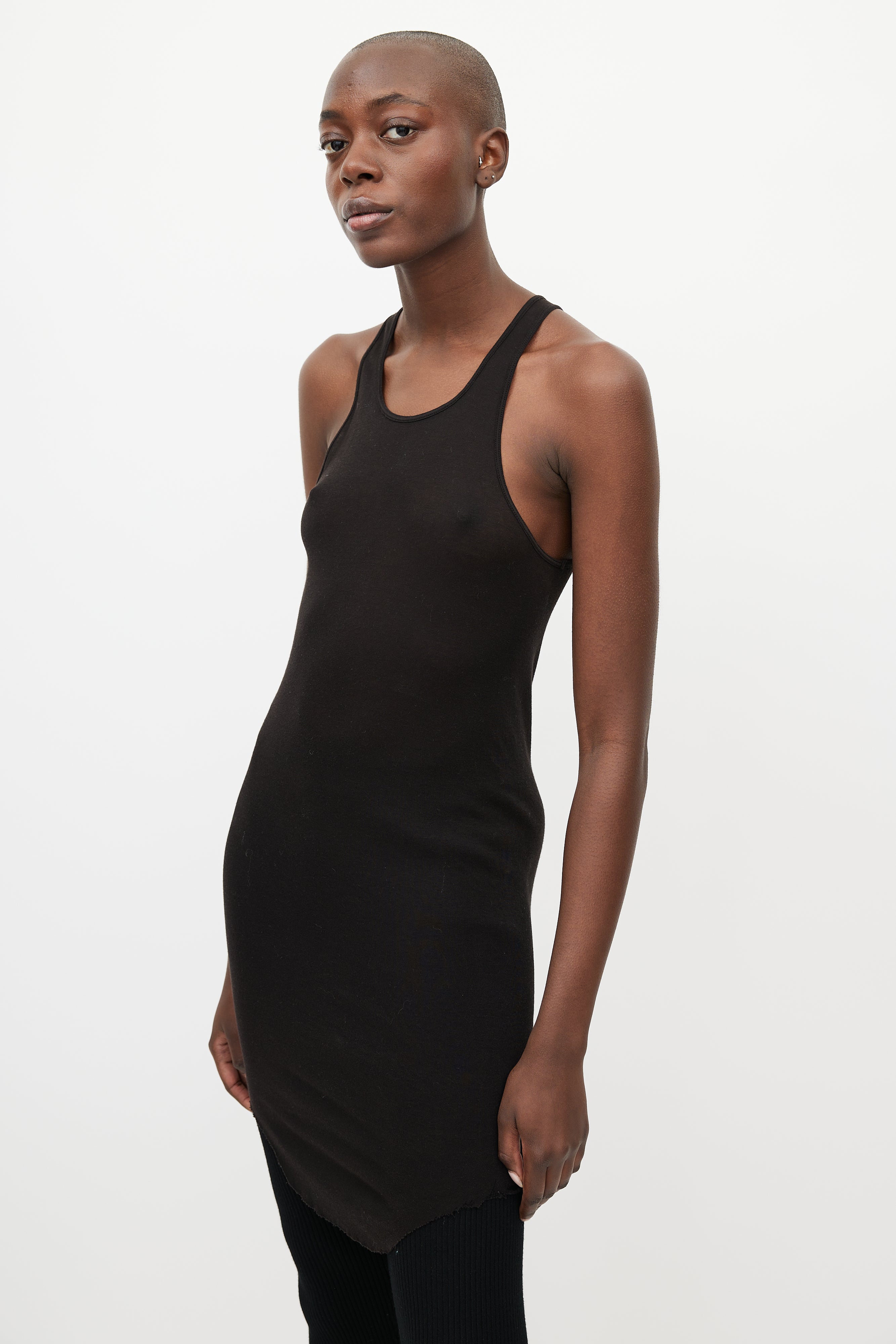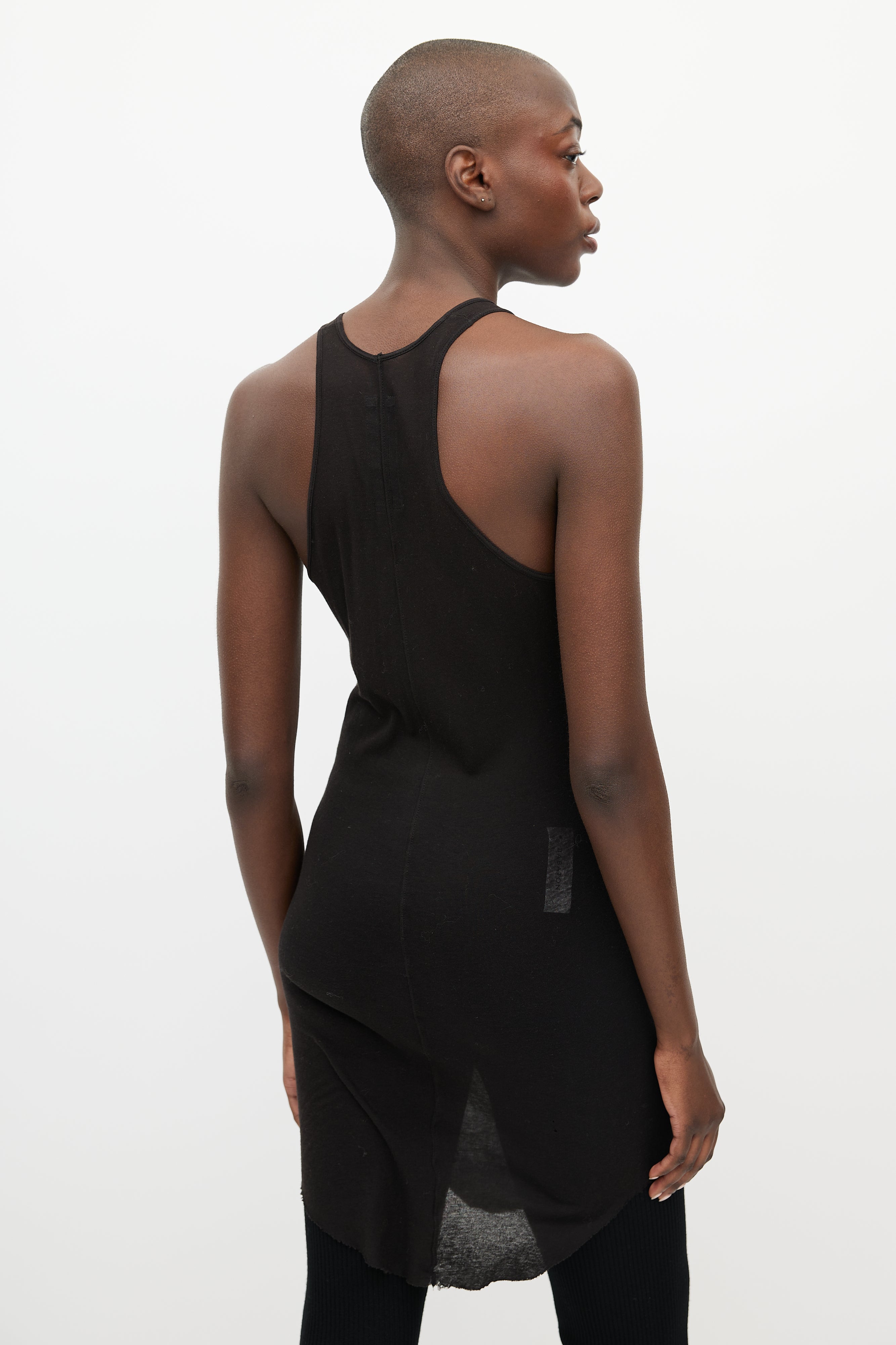 Pre-owned Rick Owens Fall/Winter 2010 black tank dress featuring crew neckline, racerback, and distressed hem. From the Gleam collection.