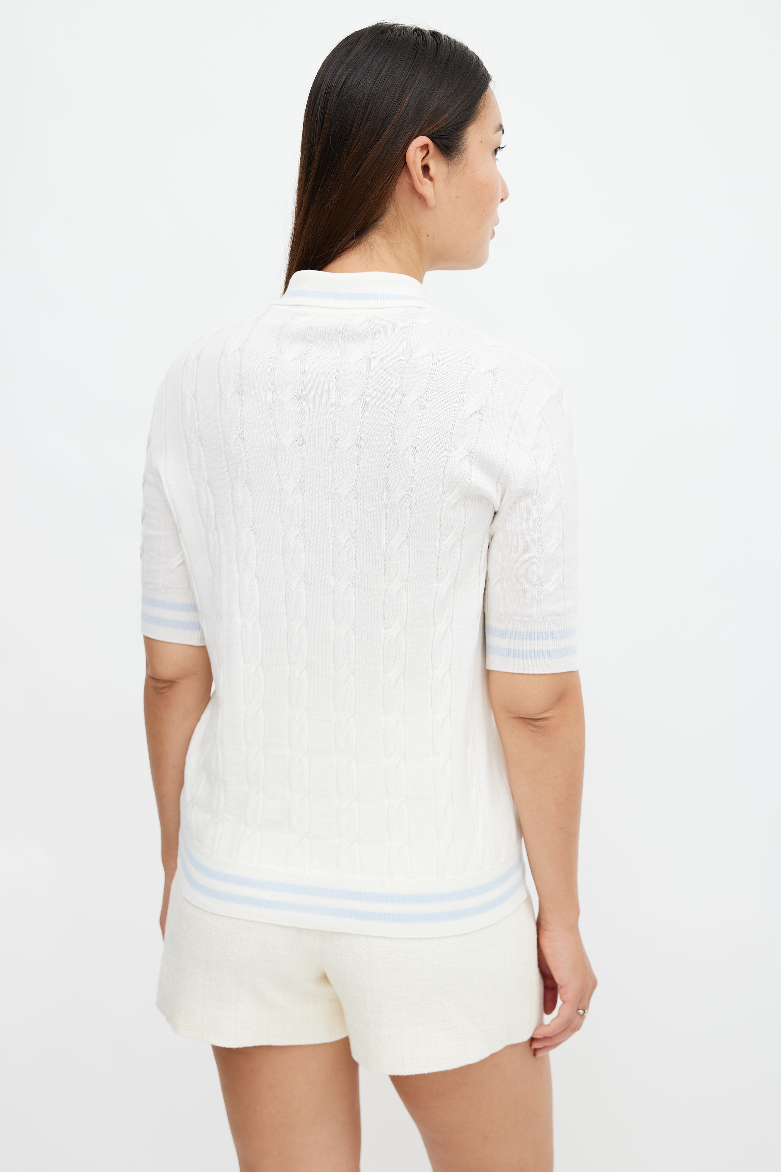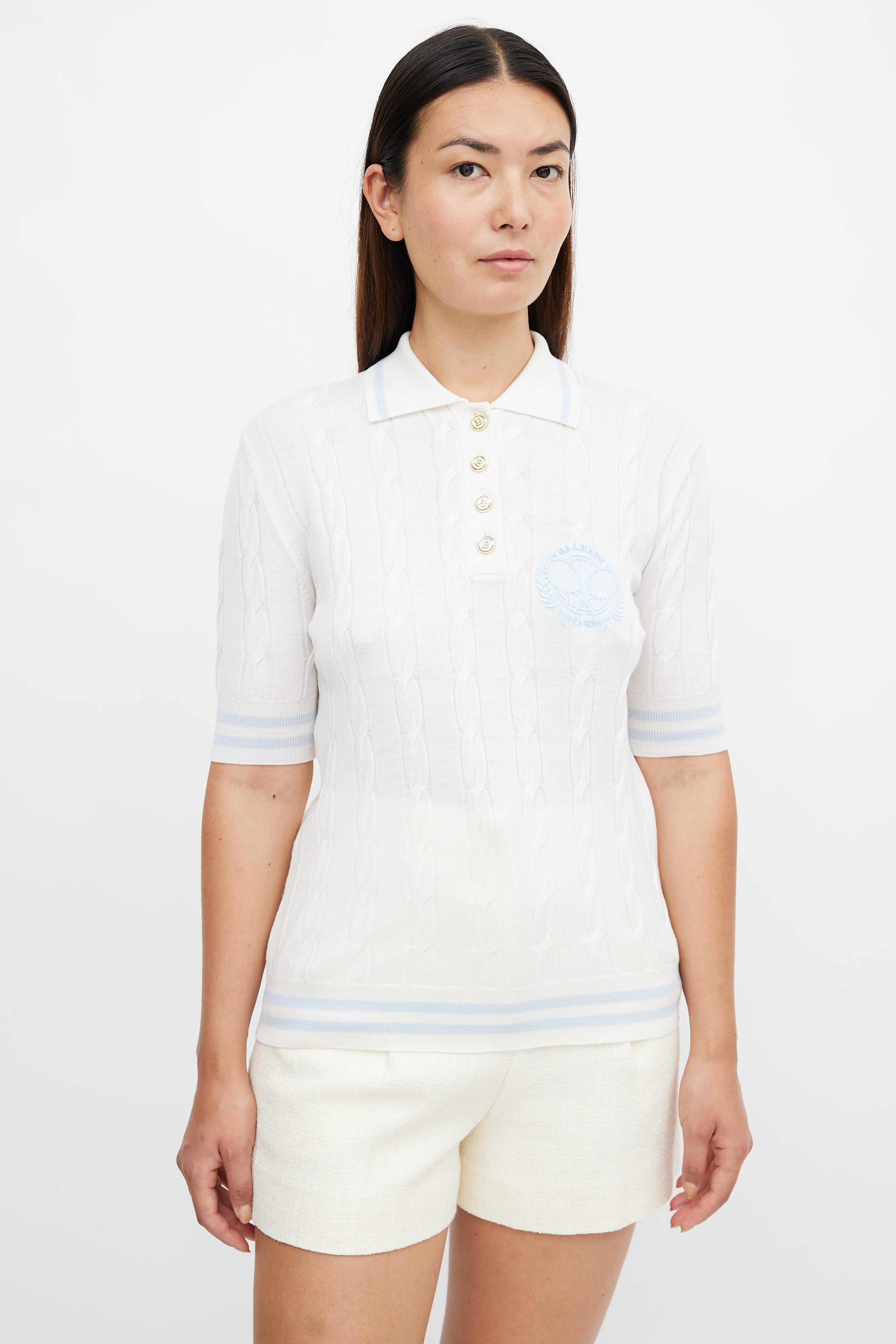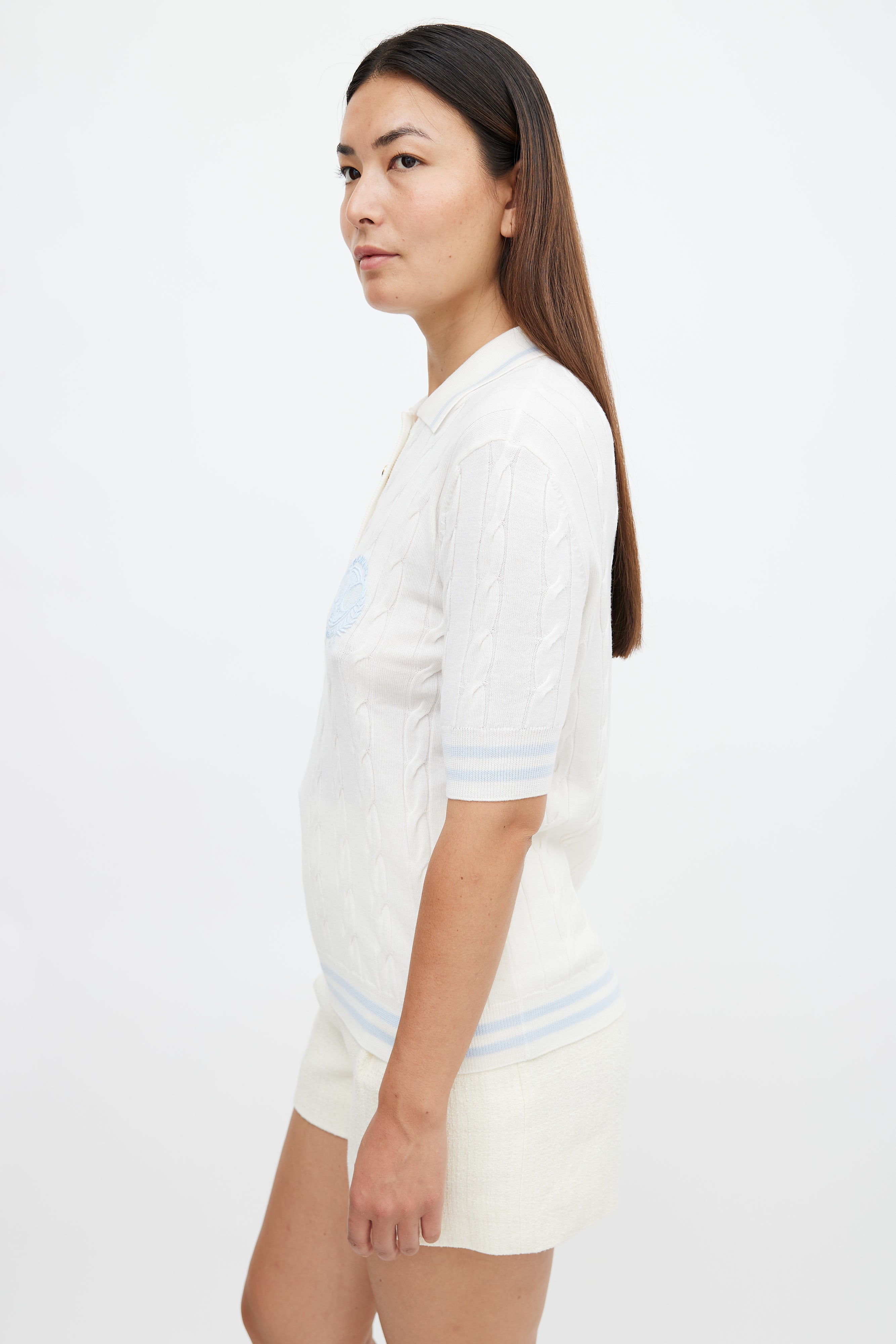 White Logo Oversized Cable Knit Polo FR 38 Size Guide