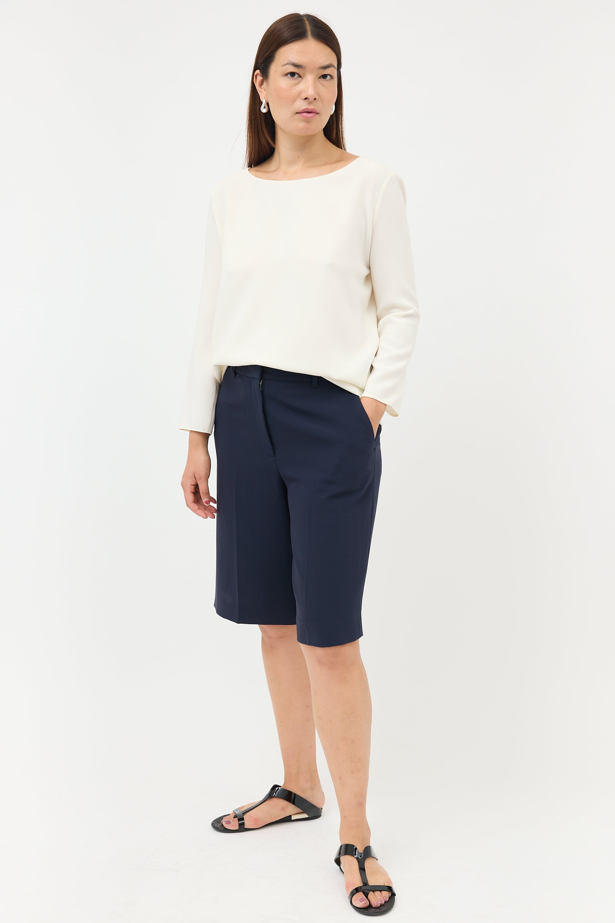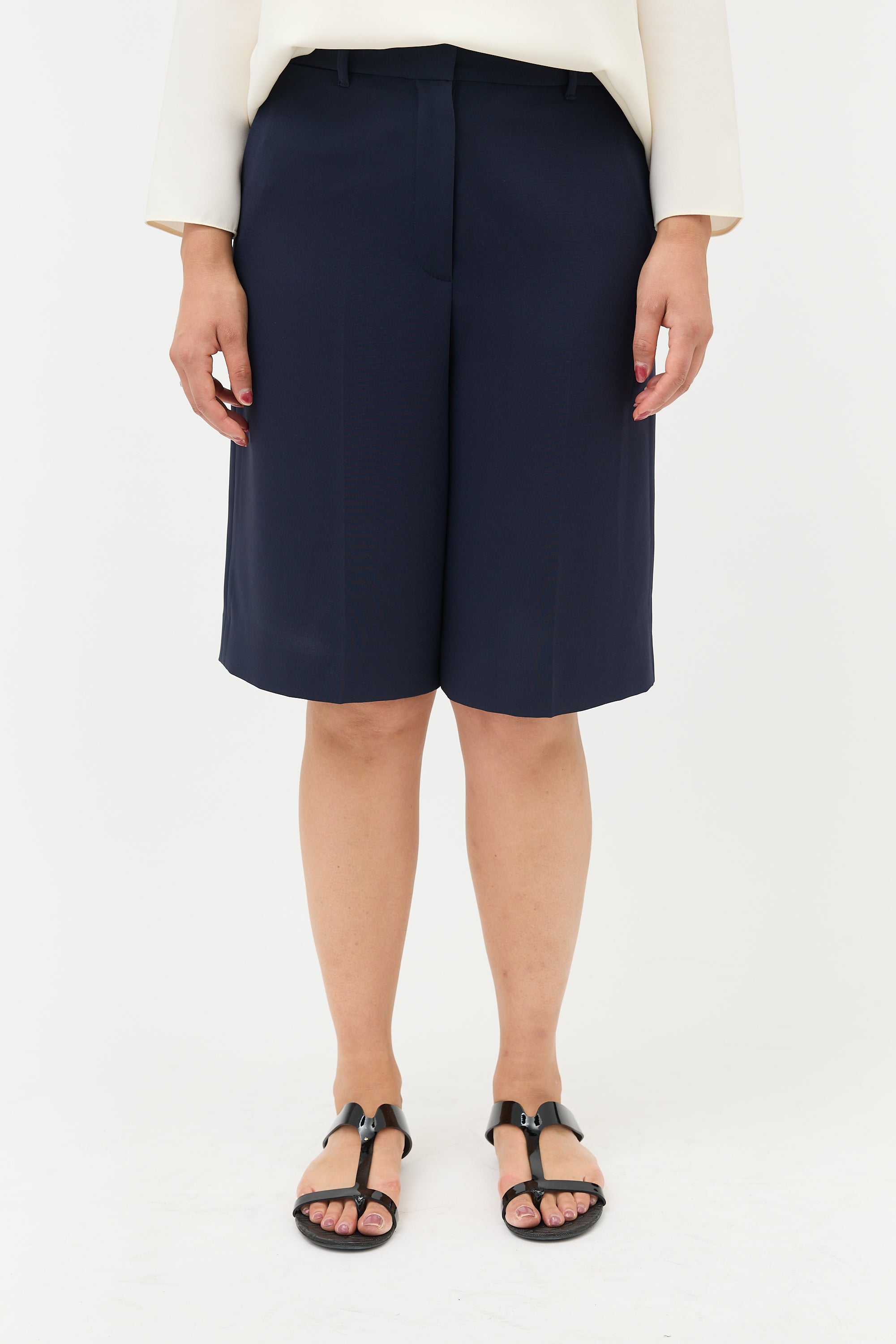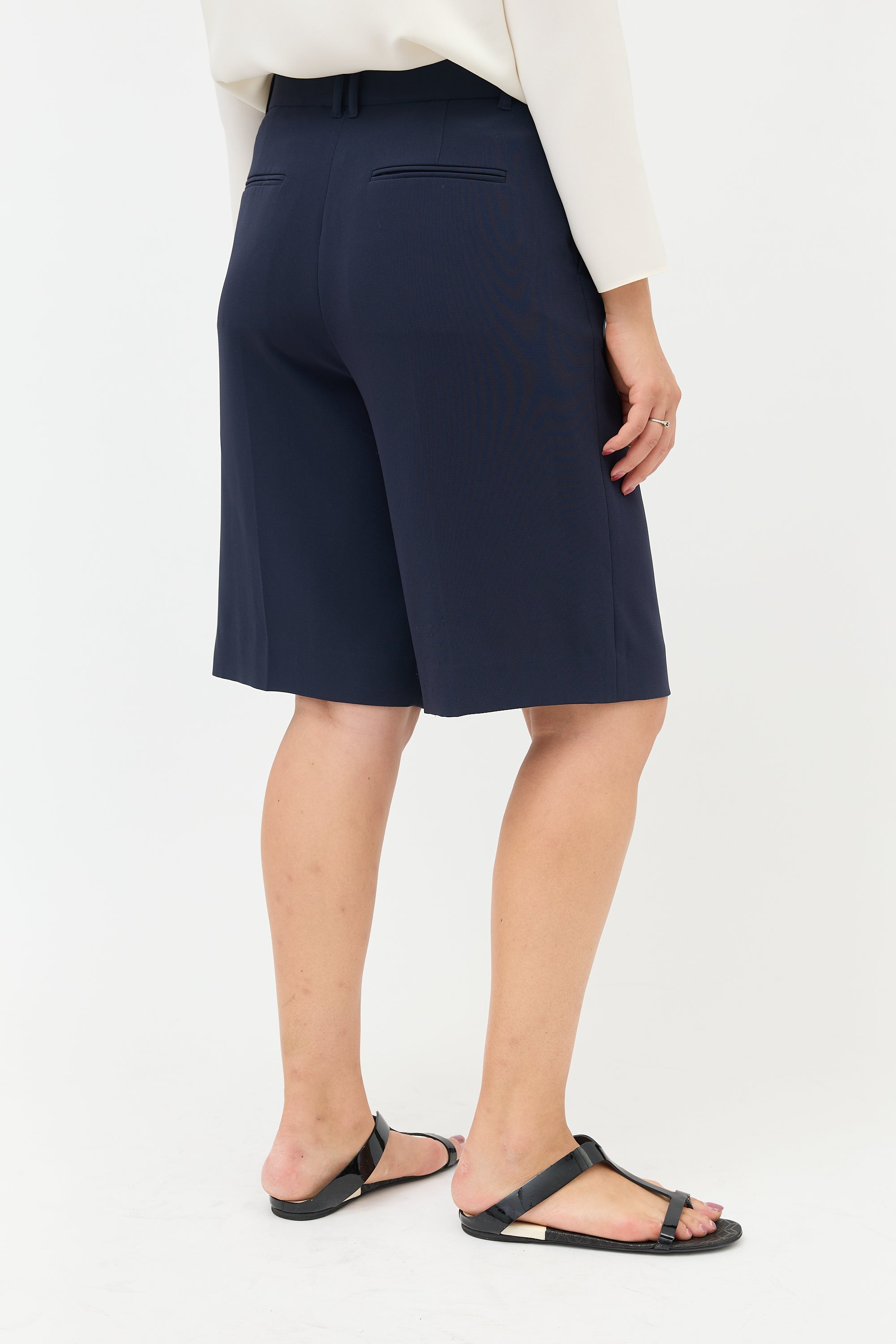 Pre-owned The Row navy Trin bermuda shorts featuring a zip fly, belt loops, four pocket styling, and pressed seams.