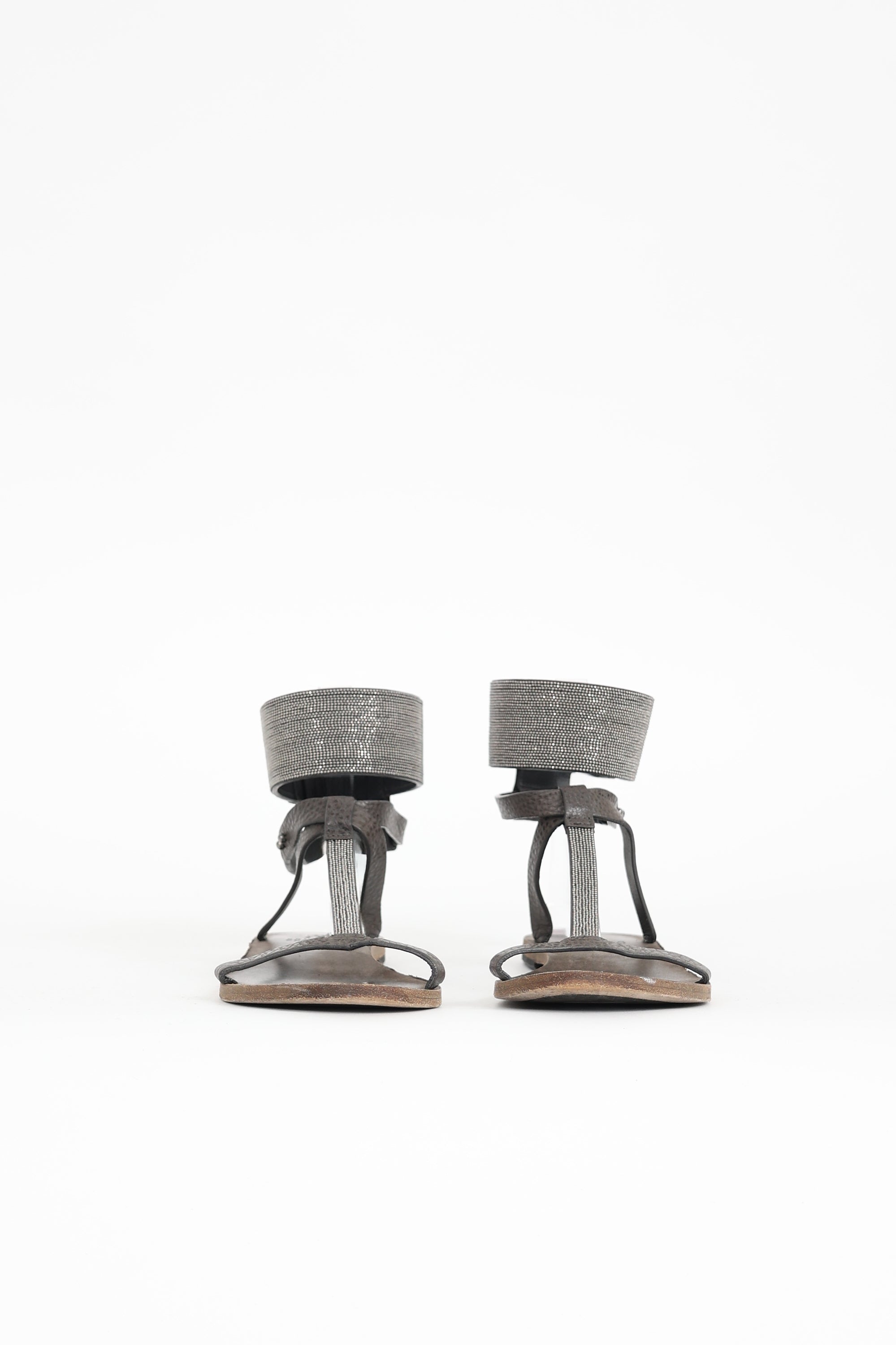 Brunello Cucinelli Leather Monili T-Strap Sandal IT 38