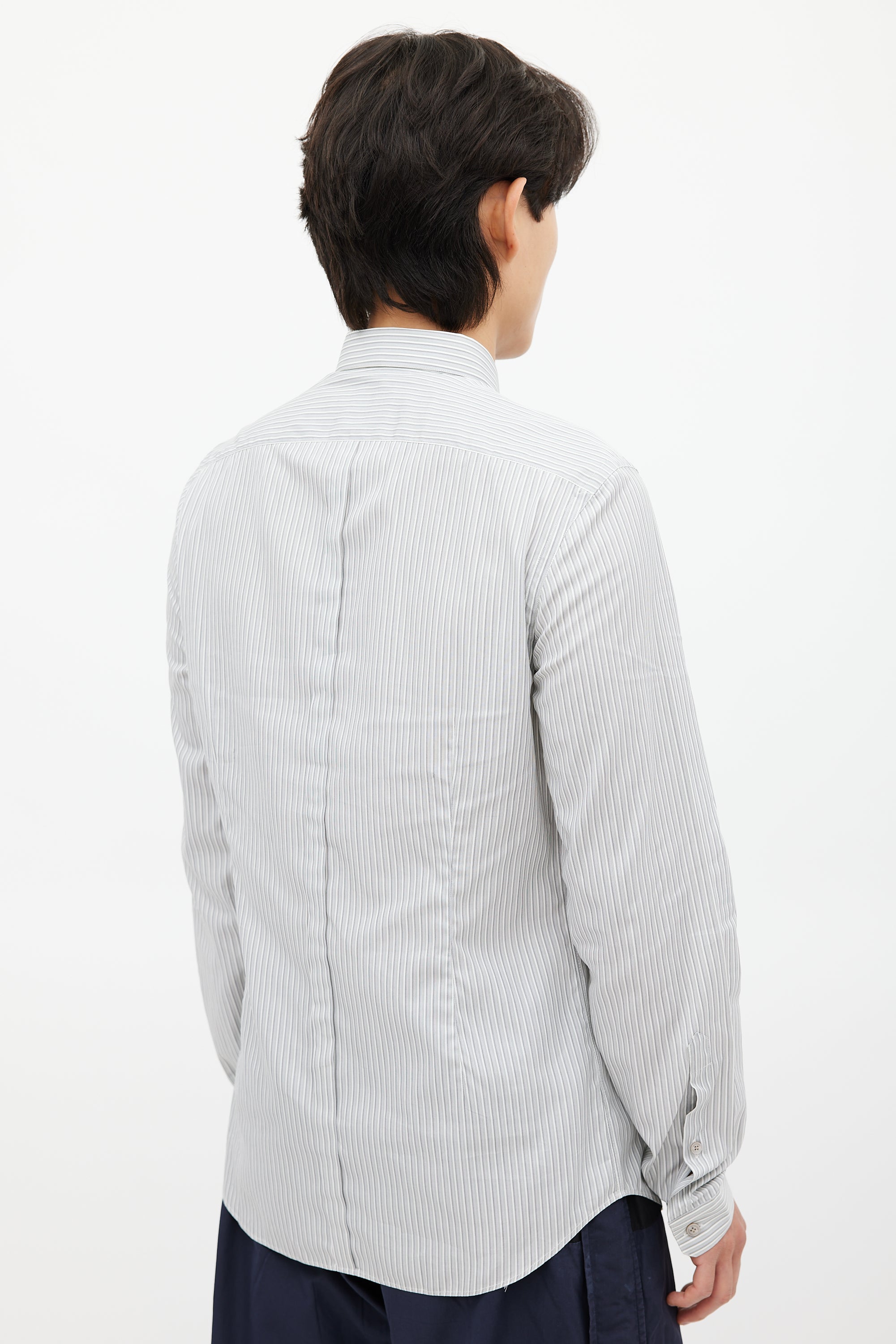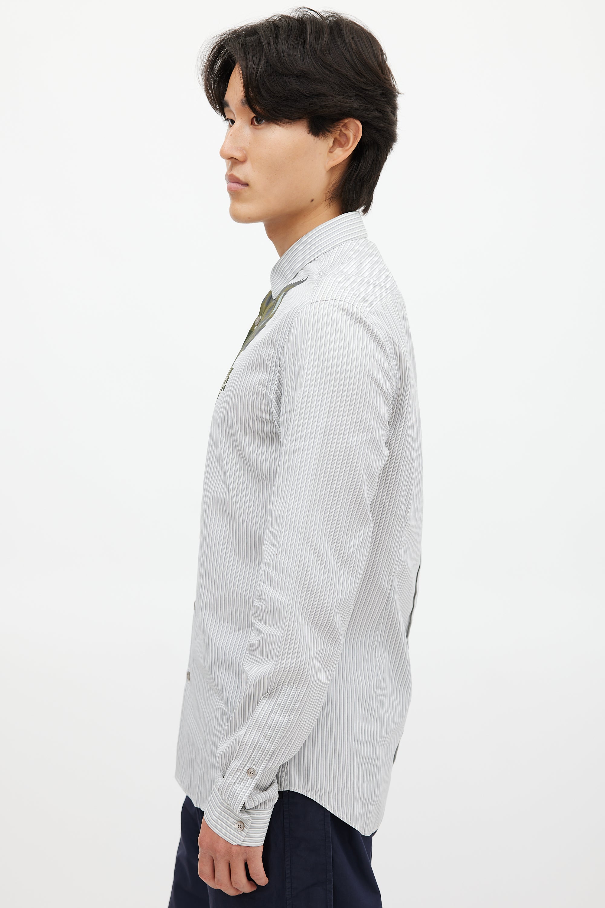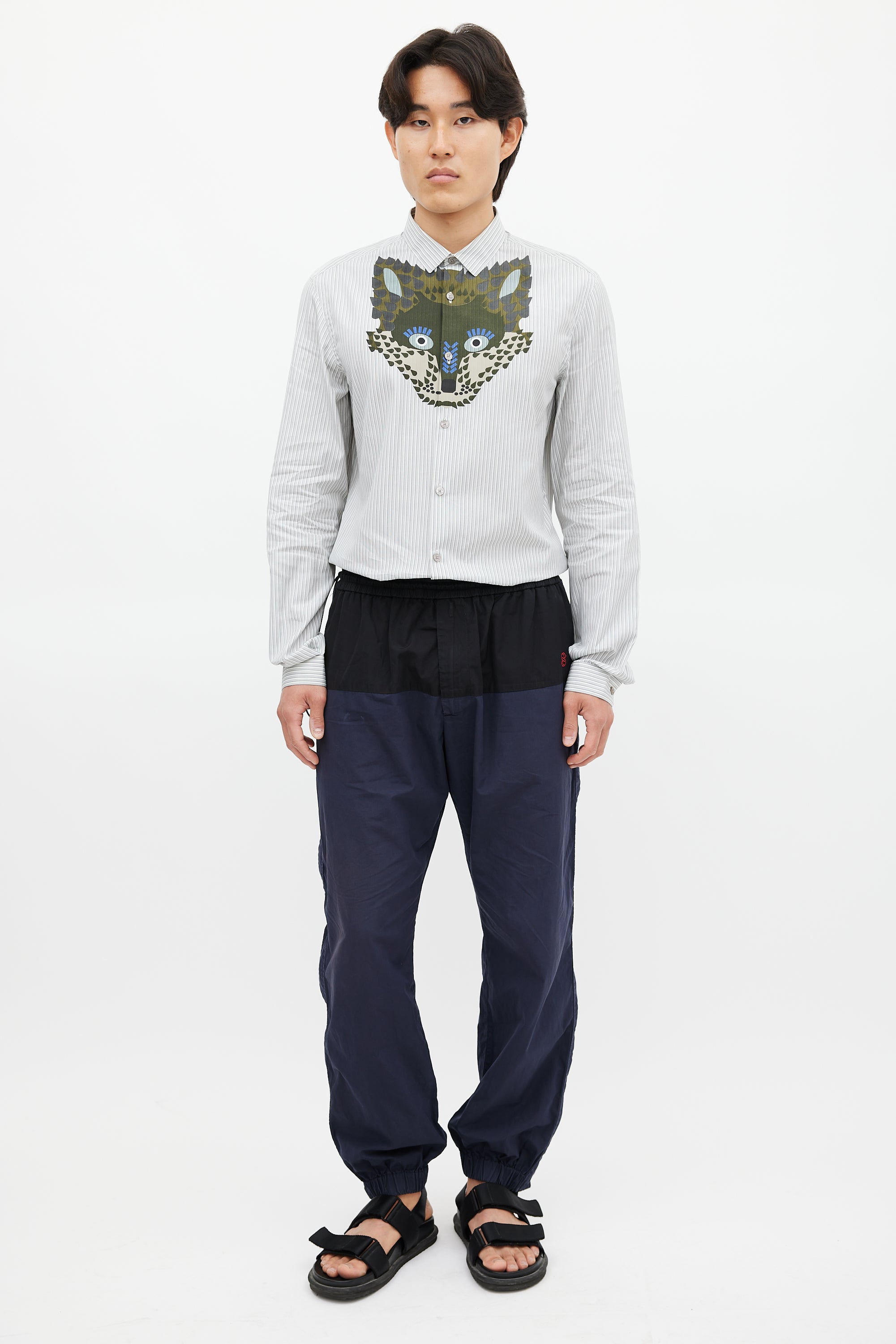 Pre-owned Burberry Prorsum grey shirt featuring a multicolour fox graphic at chest, tonal striped pattern throughout, long sleeves with buttoned cuffs, and button up closure.