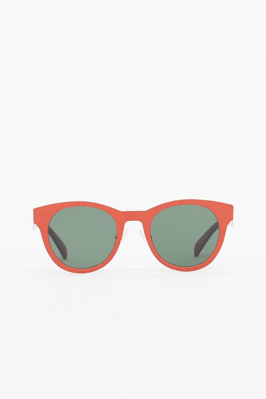 Pre-owned Celine orange and red CL41452/S sunglasses featuring round titanium frames, nose pads, and logo at interior.