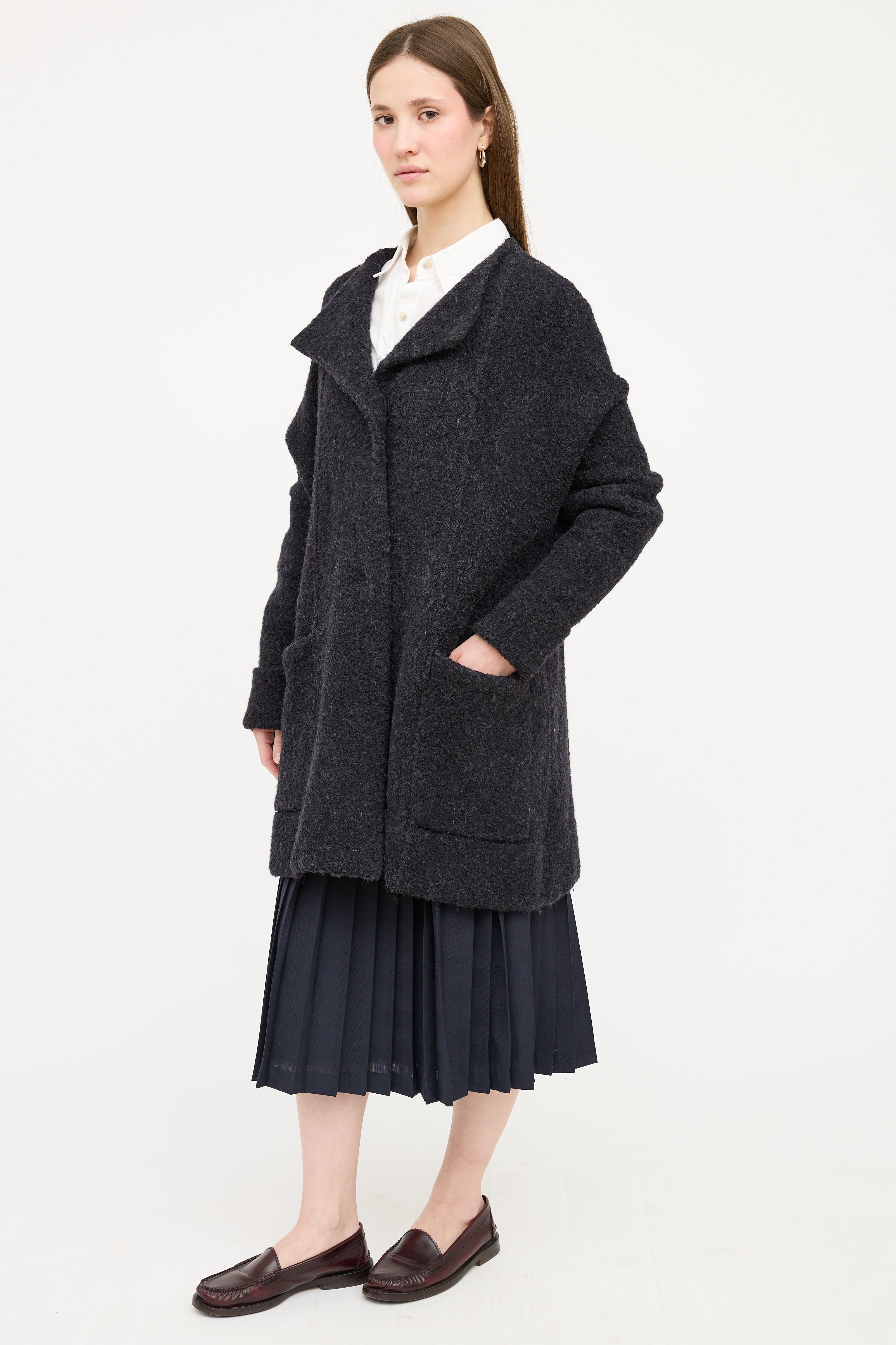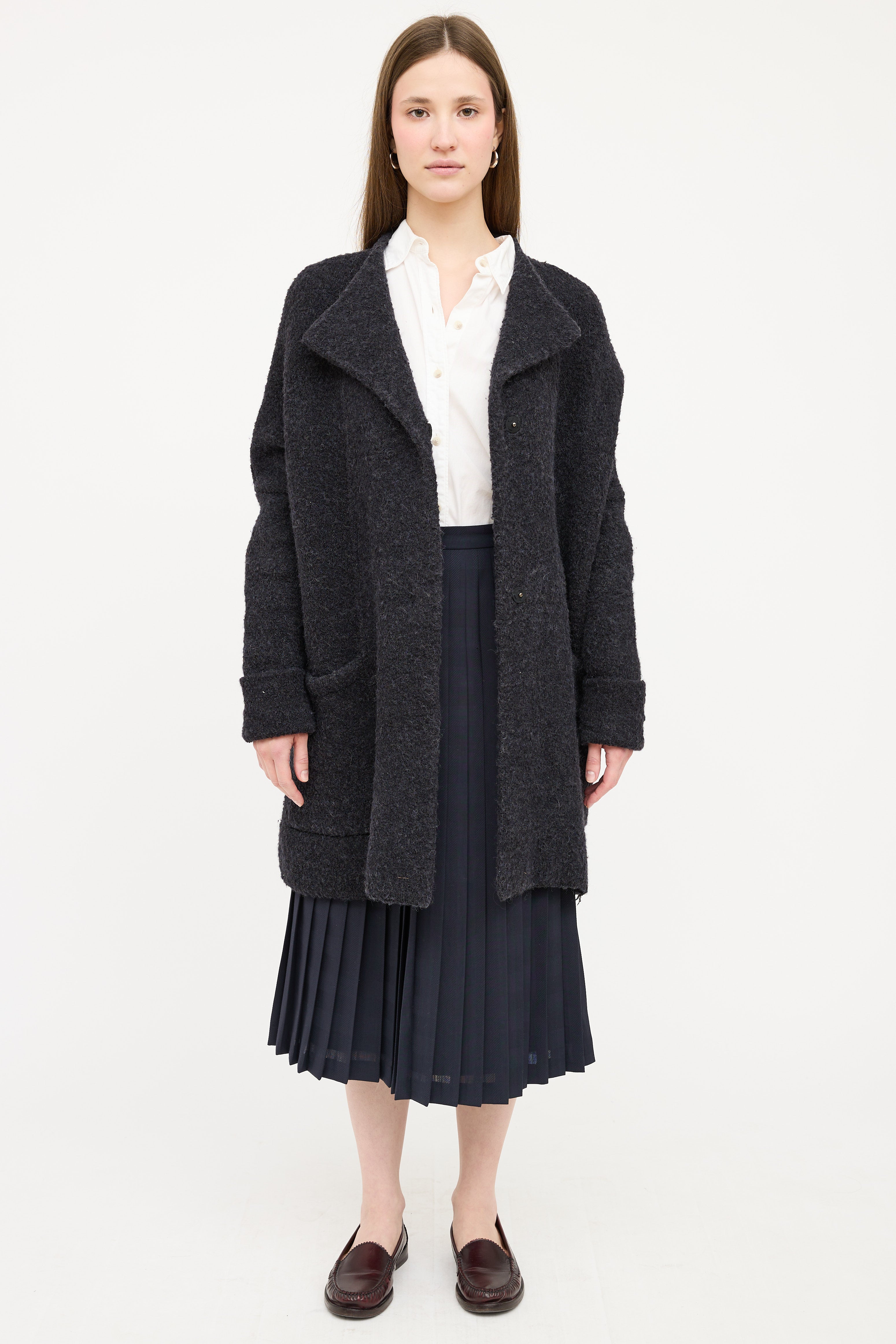 Dark Wool Boucle Coat Small Size Guide