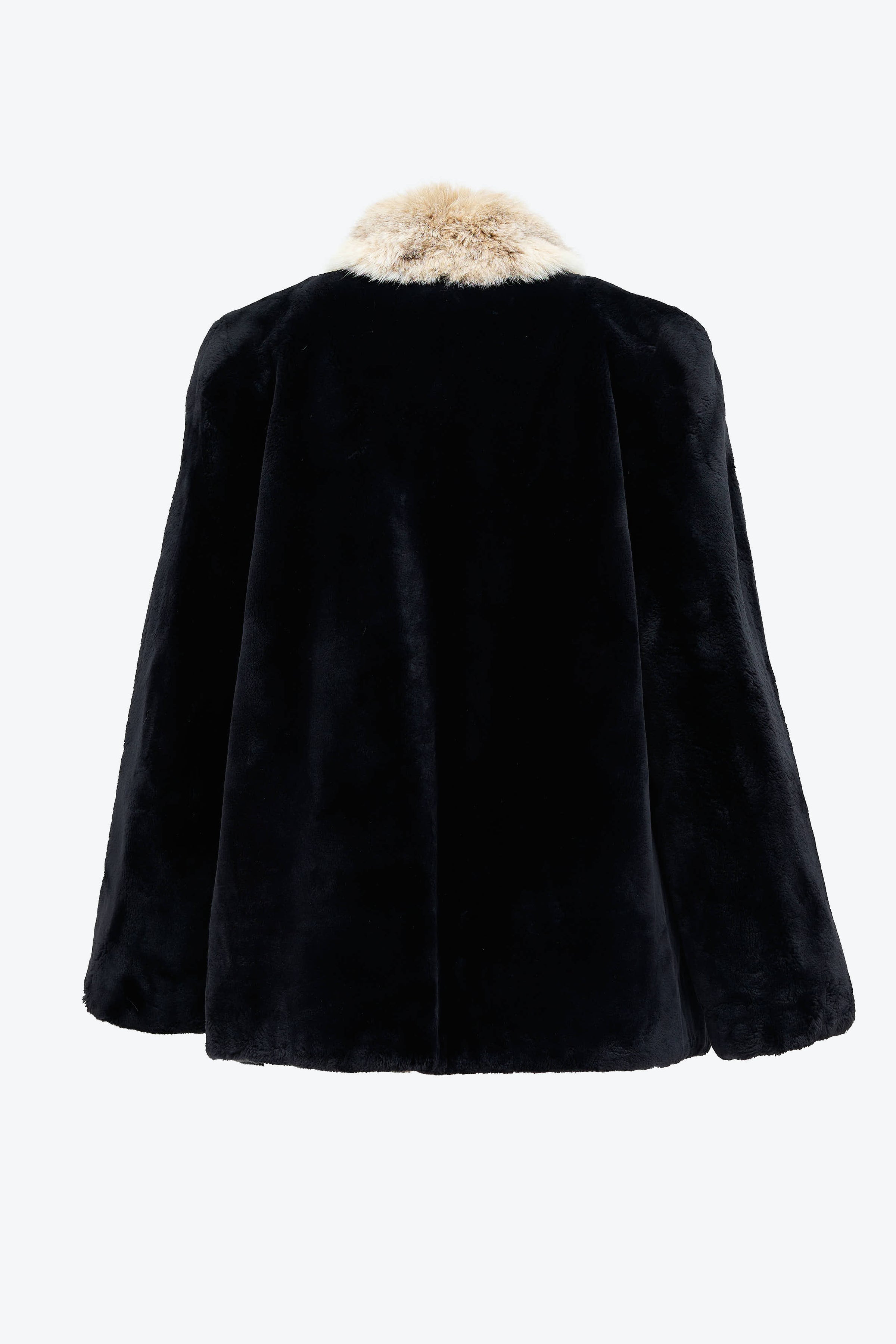 Pre-owned VSP Archive black beaver and lynx fur coat featuring reversible styling, shawl collar, slit pockets at side, and interior pockets.